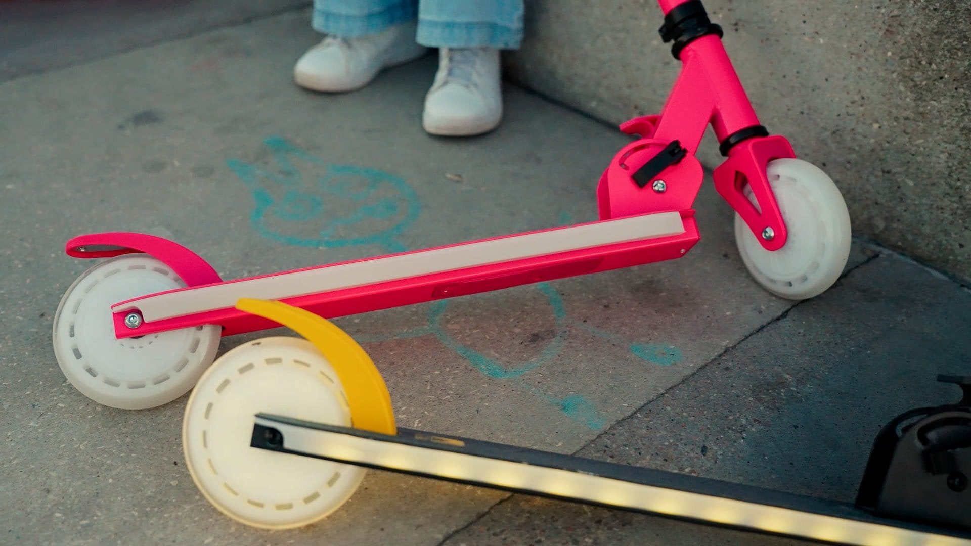 Sun Baby Zweirad-Scooter für Kinder, faltbar, verstellbar, Lumiride LED, 7 Farben, 20 Programme, rosa