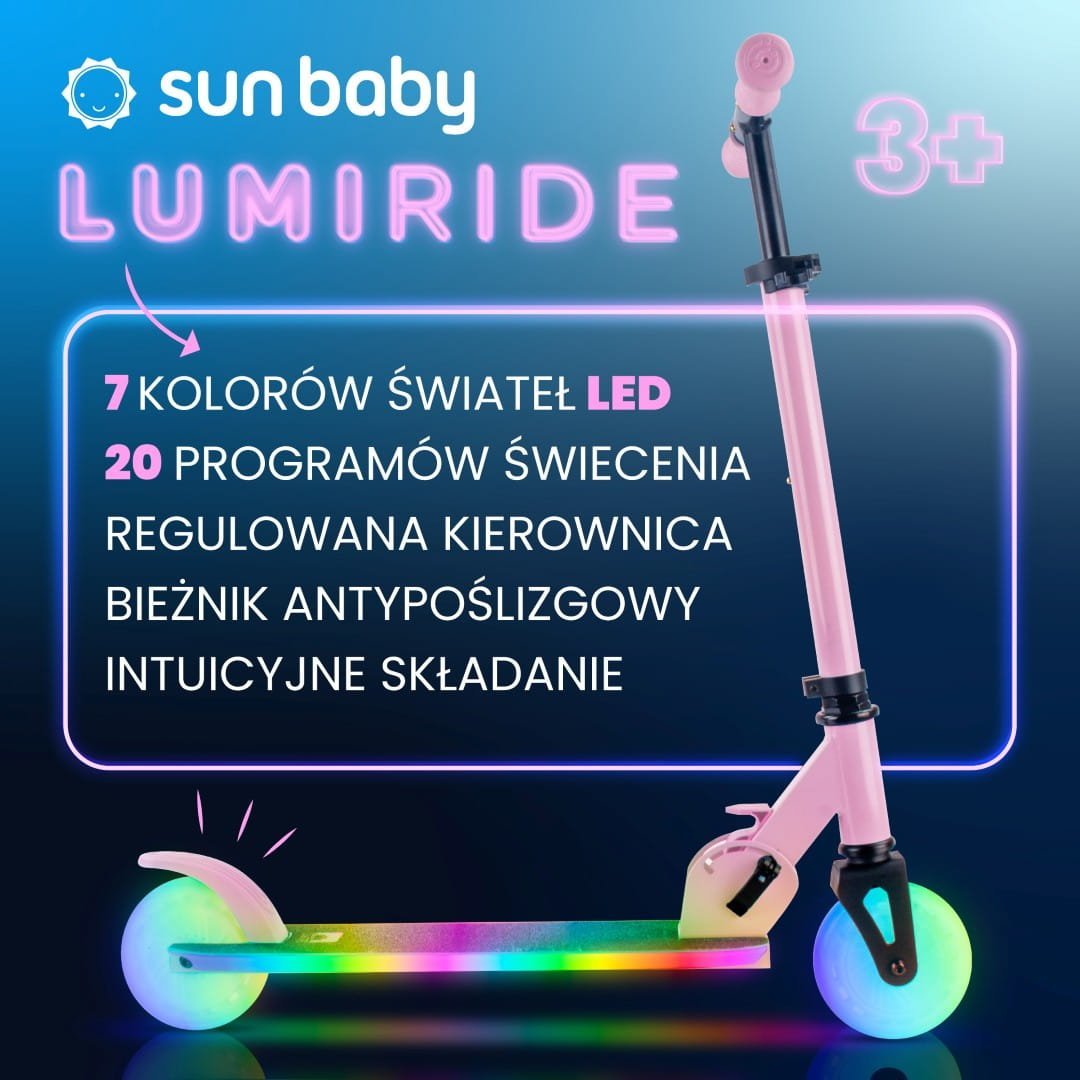 Sun Baby präsentiert den Lumiride LED -Zweiradroller für Kinder – die perfekte Kombination aus modernem Design und Funktionalität. Er ist eine hervorragende Wahl für Kinder und bietet sowohl Unterhaltung als auch Sicherheit.