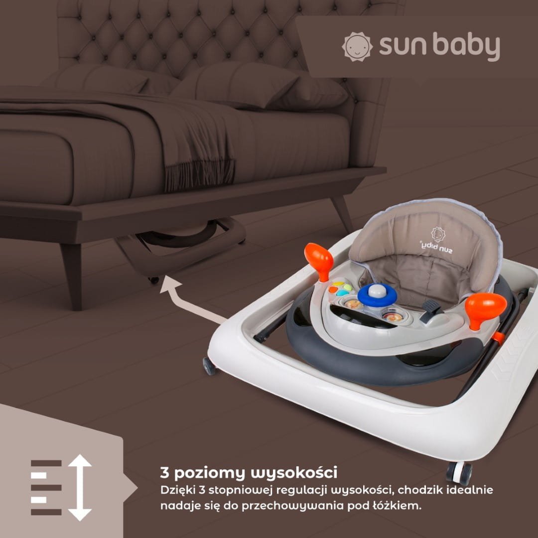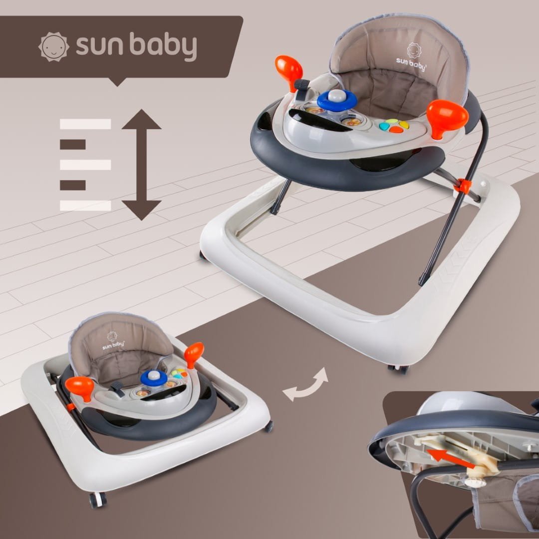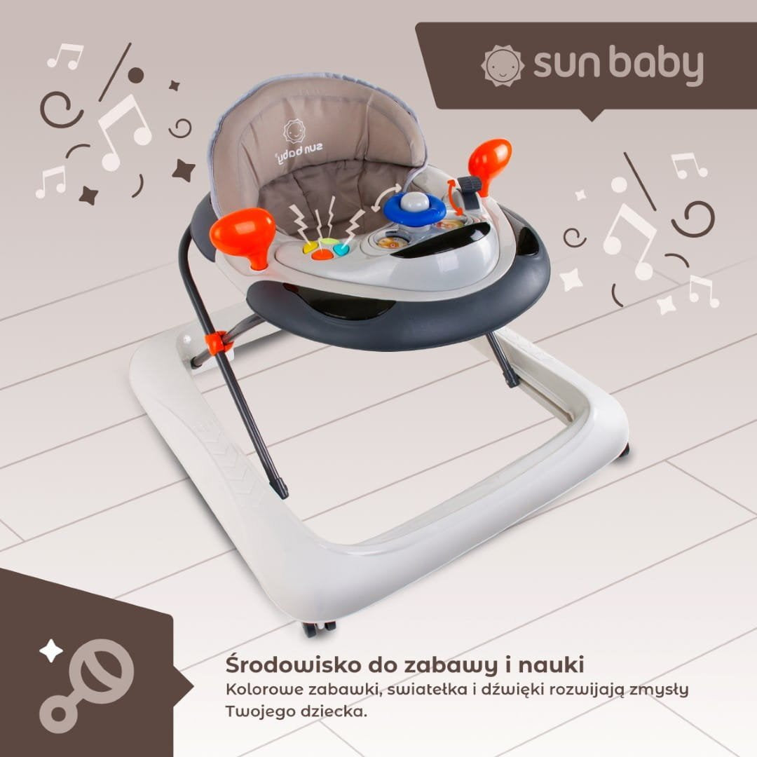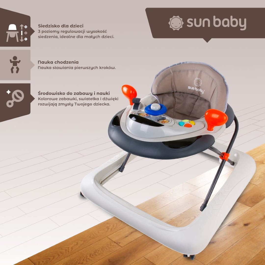 Interaktiver Lauflernwagen mit Lenkrad, grau, Sun Baby, 2. Klasse
