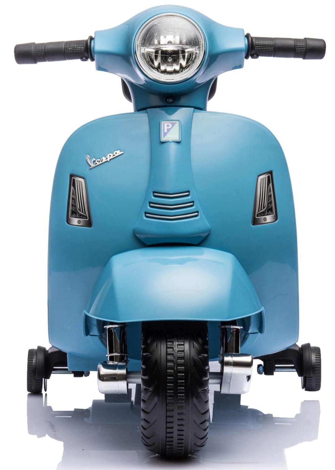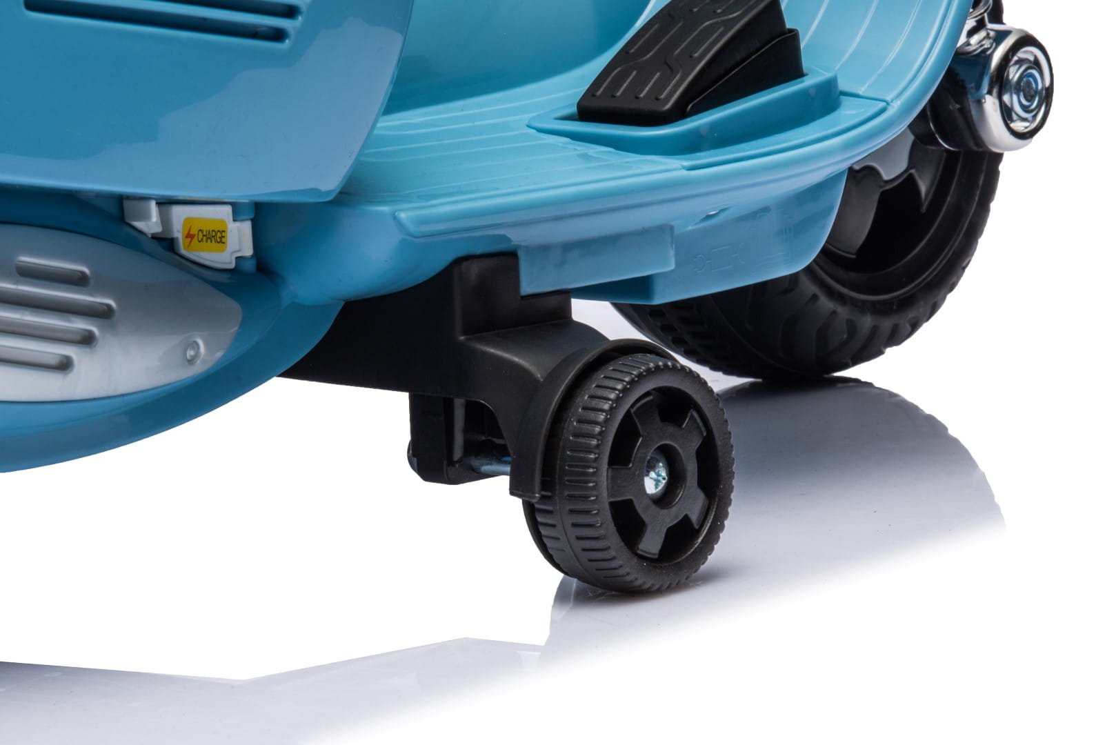 Der elektrische Vespa-Roller für Kinder ist mit seitlichen Stützrädern ausgestattet, die ein Umkippen verhindern, sodass Sie sich keine Sorgen um das Gleichgewicht Ihres Kindes machen müssen.