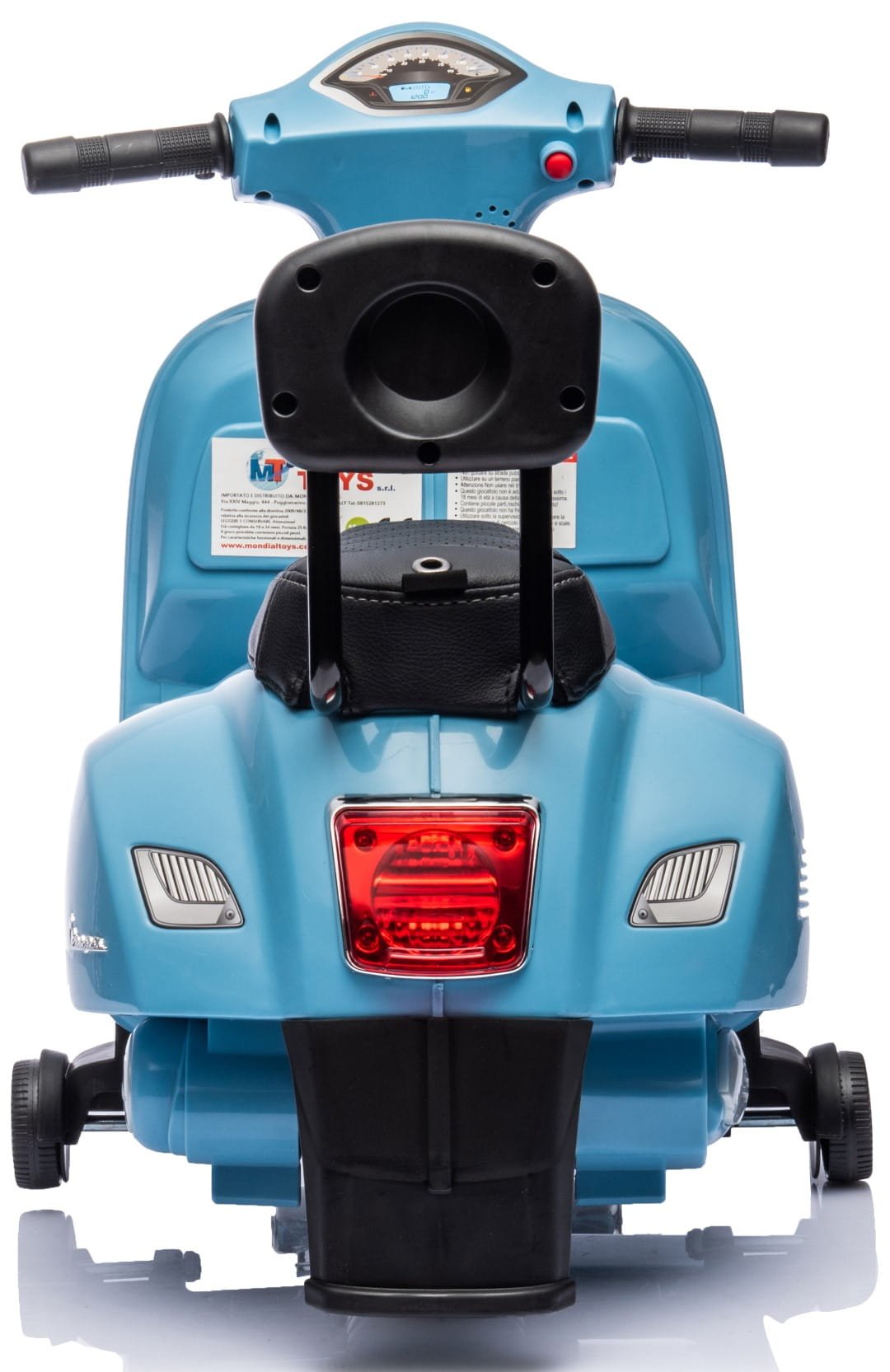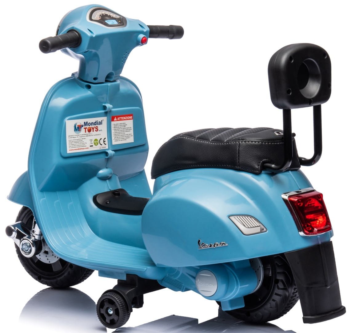 Elektroroller für Kinder, Vespa, batteriebetrieben, mit Rückenlehne, blau, Qualität II