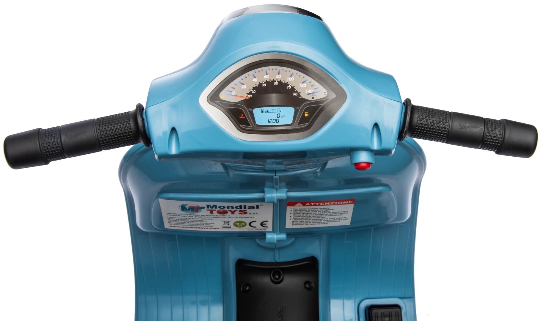 Die elektrische Vespa erreicht eine Höchstgeschwindigkeit von 2 km/h – etwa so schnell wie ein gemütlicher Spaziergang. Sie müssen sich also keine Sorgen machen, dass Ihr Kind wegläuft :-)