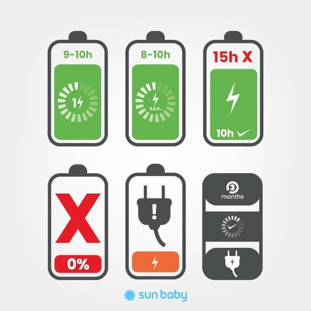 - Erste Ladung: 9–10 Stunden.