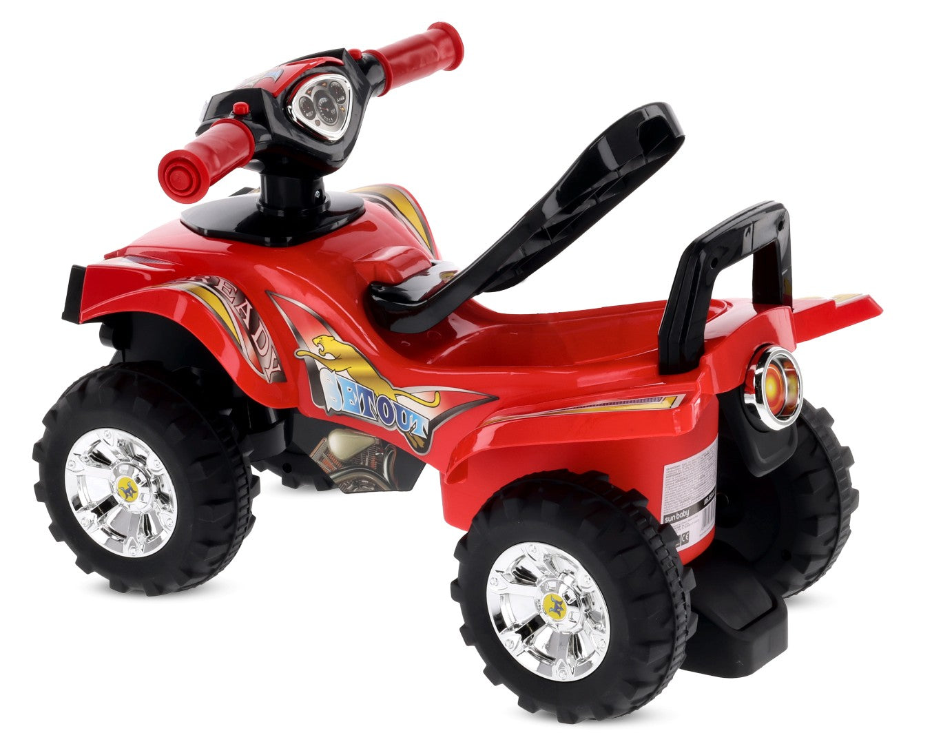 Das rote Sun Baby Quad ist ein dynamisches und robustes Fahrzeug, das von echten Offroad-Quads inspiriert wurde. Ausgestattet mit Geräuschen, Lichtern und stabilen Rädern bietet es Kindern sicheren und spannenden Spielspaß drinnen wie draußen. Es ist das perfekte Fahrzeug für einen einjährigen Jungen – robust, komfortabel und voller Fahrspaß.