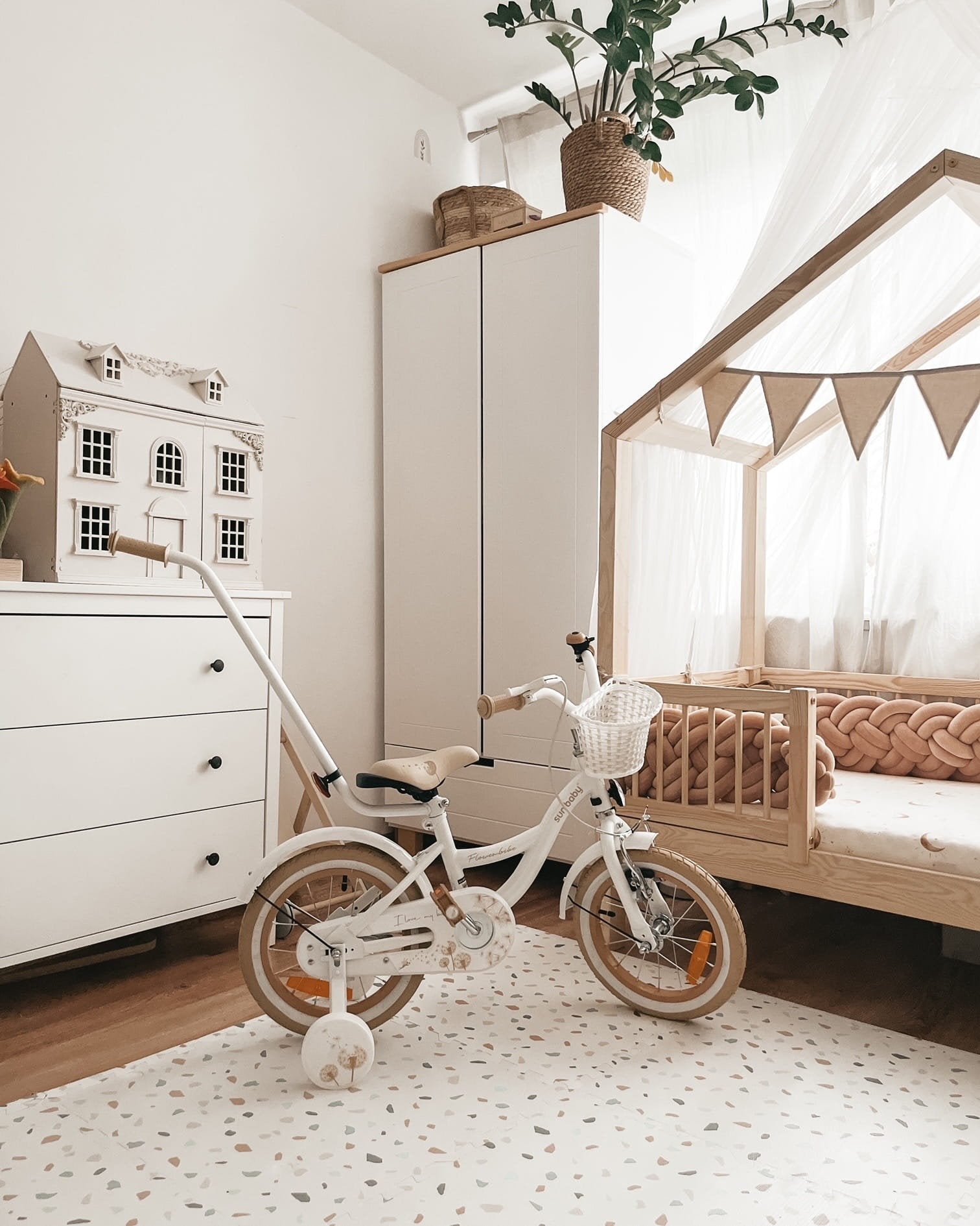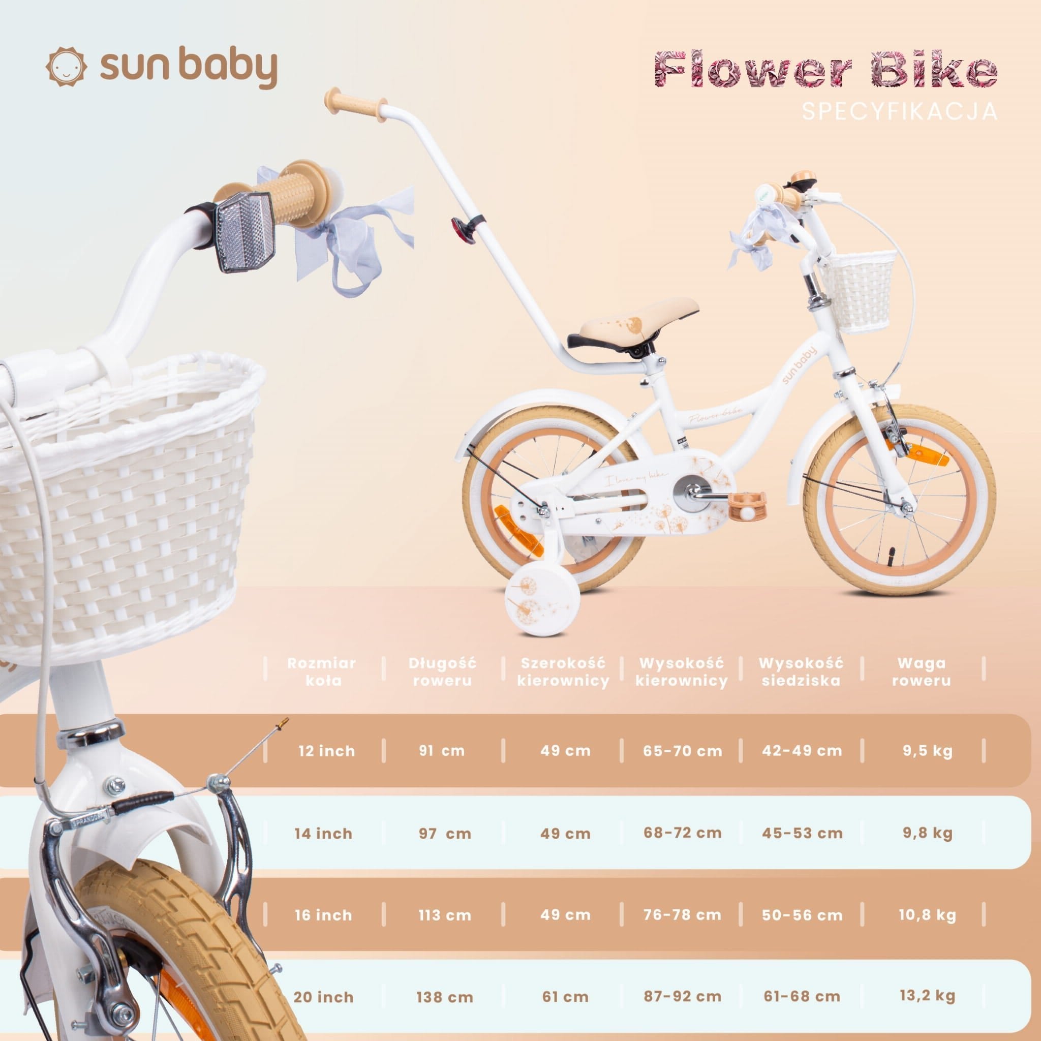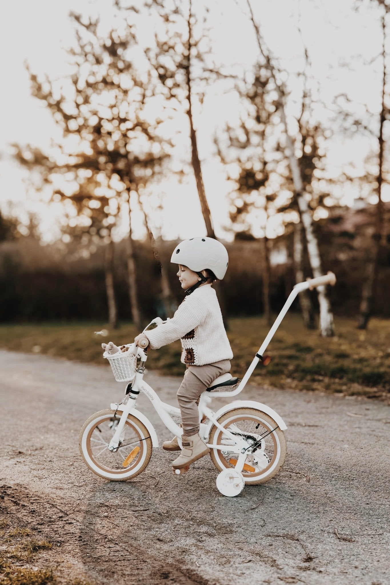 Das Flower Bike ist ein bezauberndes Fahrrad für Mädchen, das klassisches Design mit Funktionalität vereint. Dezente Details machen jede Fahrt zu einem fröhlichen Abenteuer. Perfekt für kleine Radfahrerinnen, die sicher und stilvoll Radfahren lernen möchten. Die leichte und robuste Konstruktion sorgt für Stabilität, während der verstellbare Sitz und Lenker eine Anpassung an die Körpergröße des Kindes ermöglichen. Seitliche Räder unterstützen erste Fahrversuche, und der Korb bietet Platz für Lieblingsspielzeug oder kleine Gegenstände. Zusätzlich erleichtert der Lenker der Begleitperson die Kontrolle und sorgt so für Sicherheit bei Spaziergängen. Produktmerkmale: