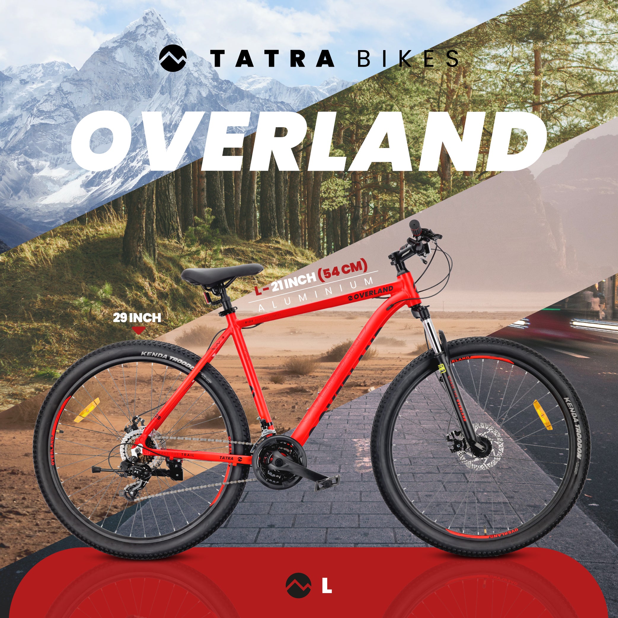 Mountainbike MTB 29 Zoll, KENDA Shimano Aluminium, leicht, 21 Gänge, Stoßdämpfer, Scheibenbremsen, Rahmengröße L, 21 Zoll, Tatra Bikes Overland, rot matt