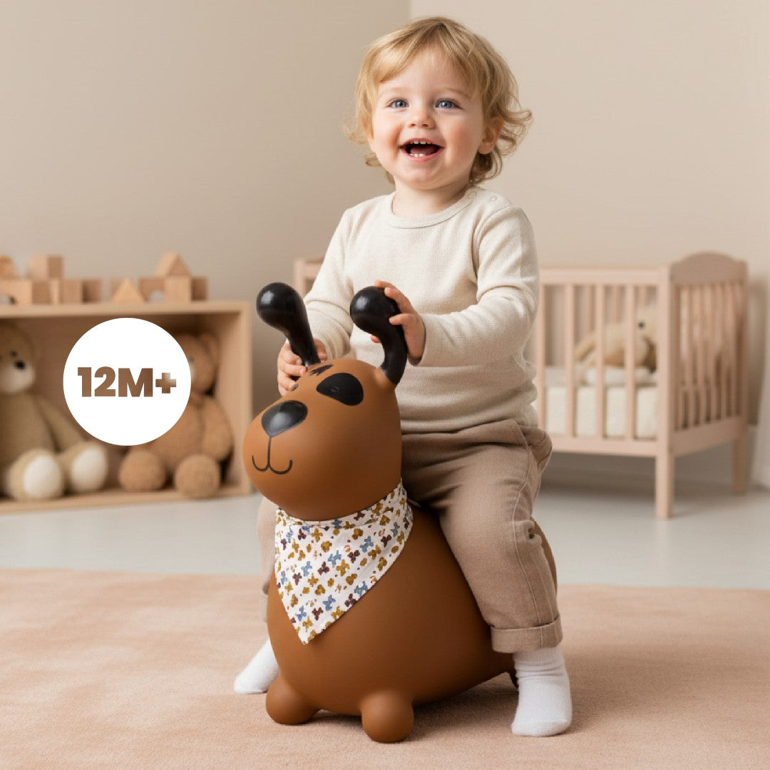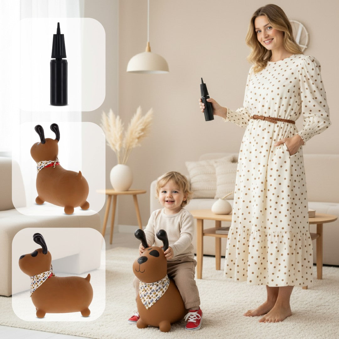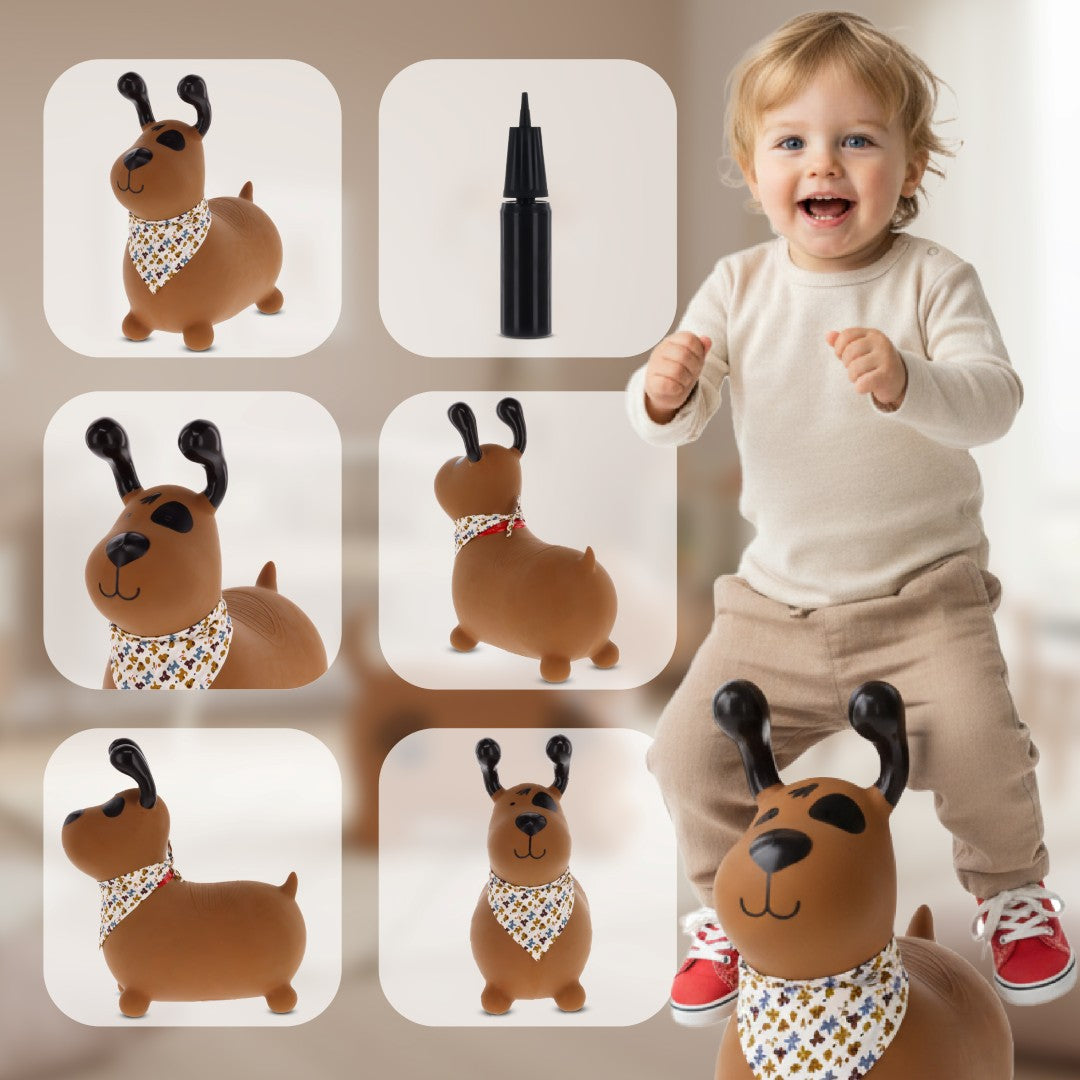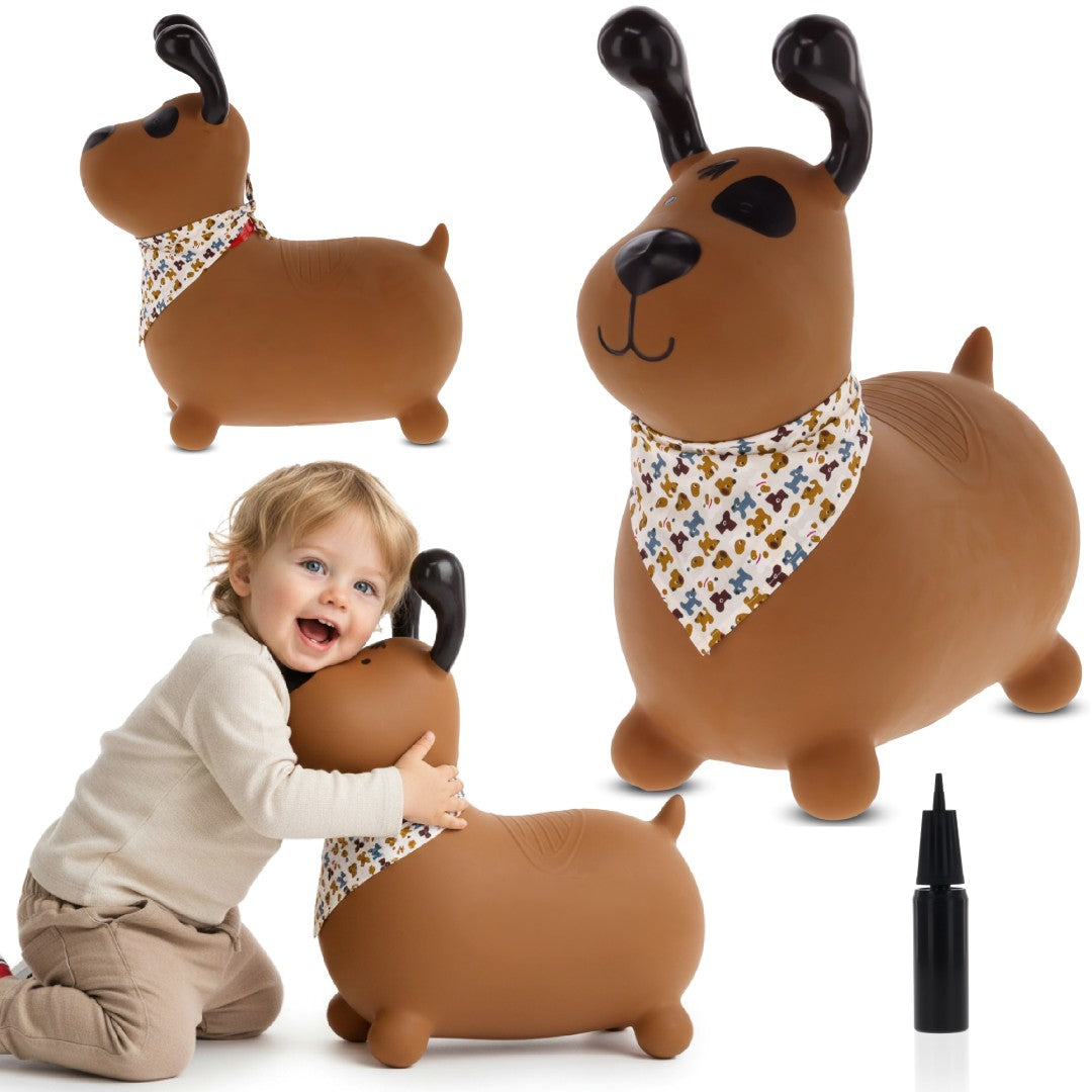 Sun Baby Reksio Jumper für Kinder, braun, mit Halstuch und Pumpe - Hüpfspielzeug