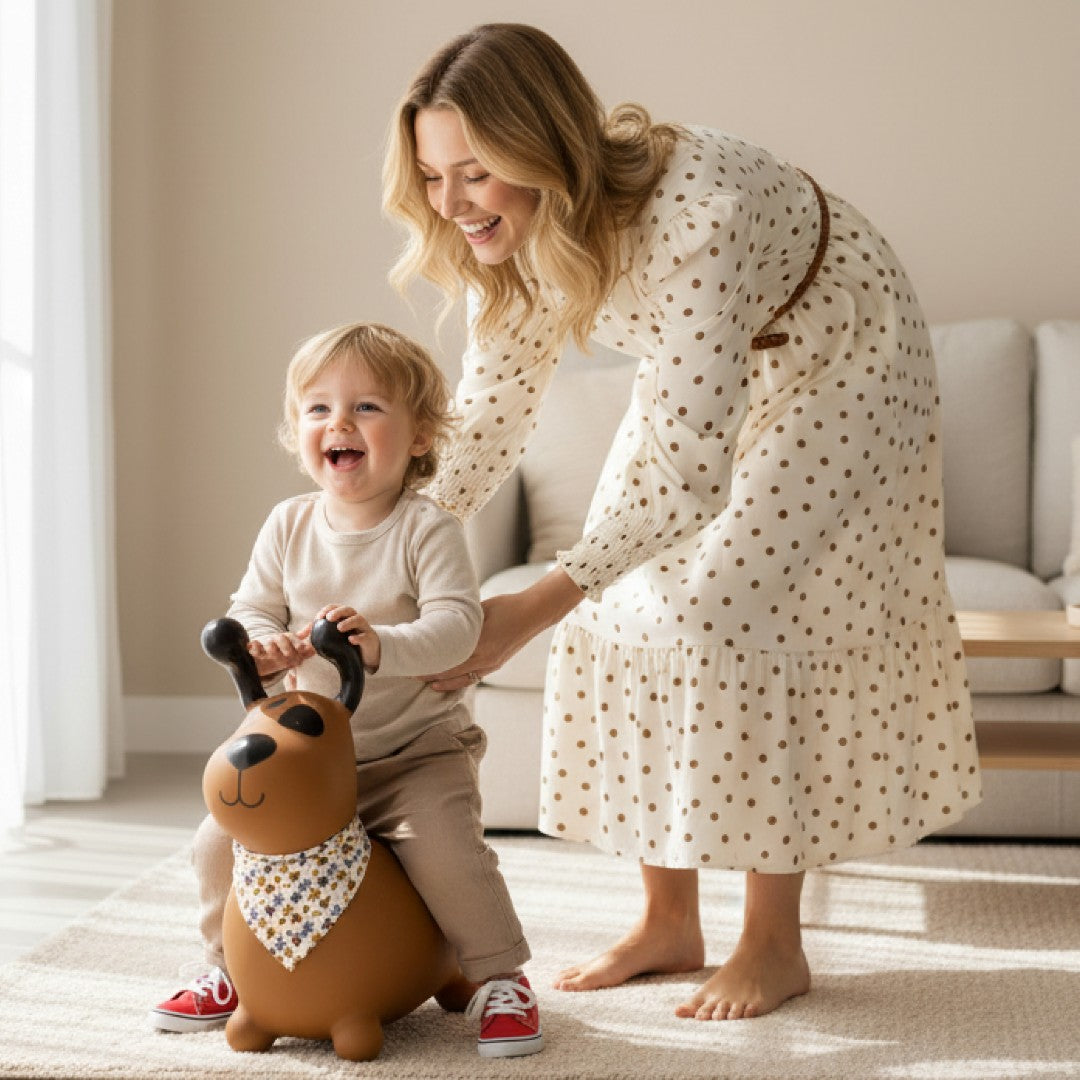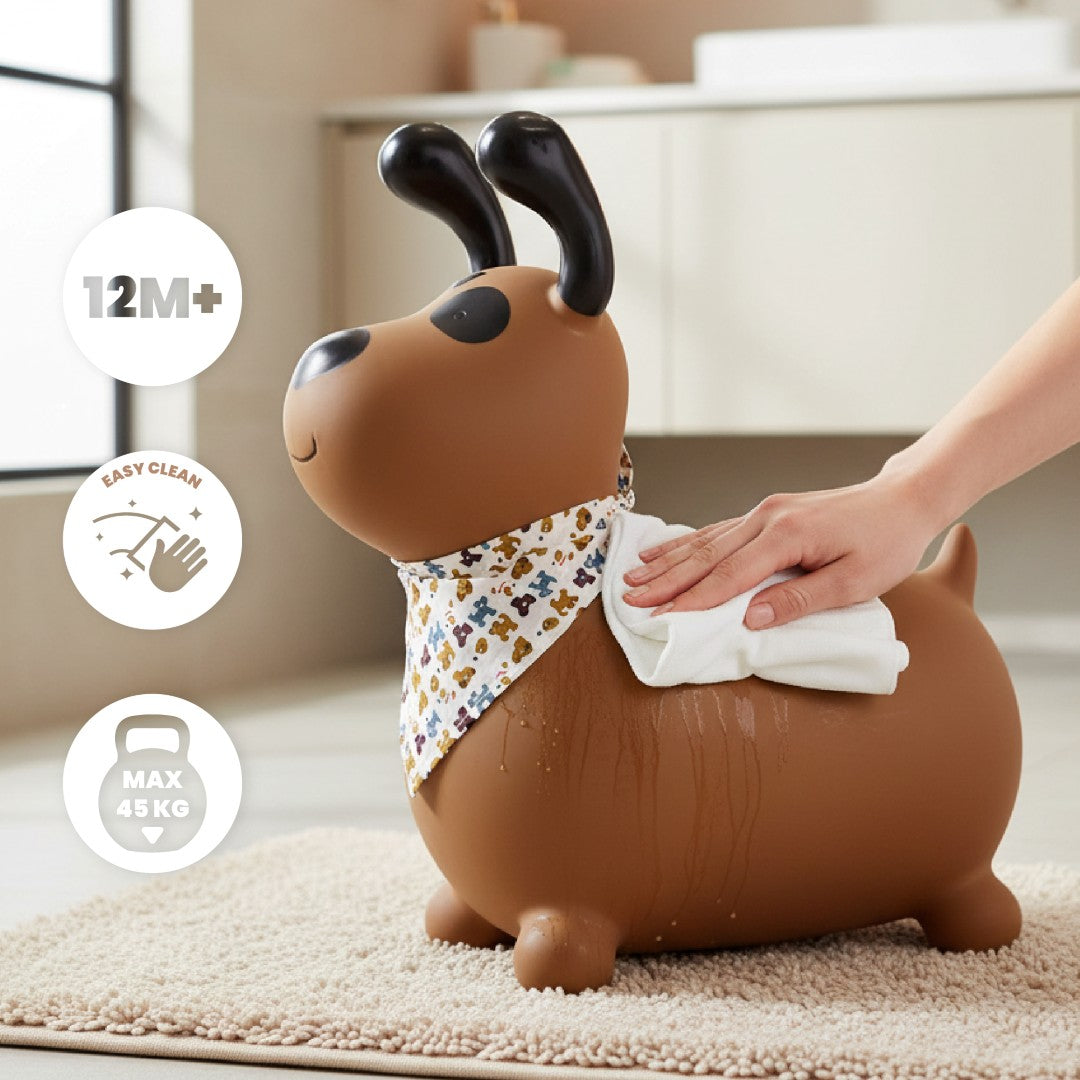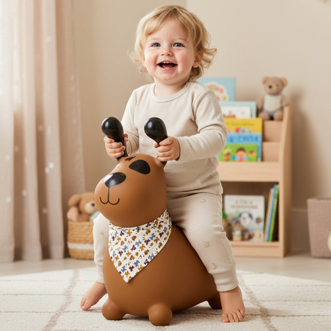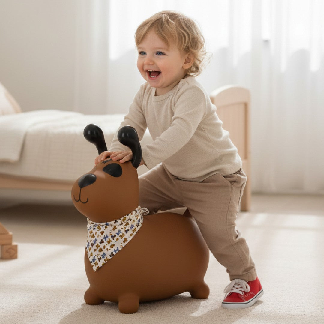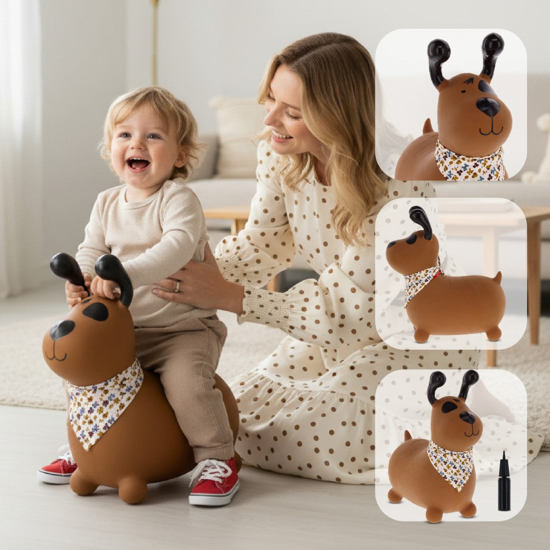 Sun Baby Reksio Jumper für Kinder, braun, mit Halstuch und Pumpe - Hüpfspielzeug