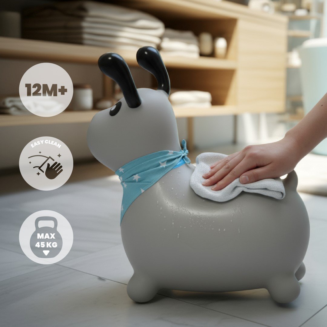Die Hüpfburg besteht aus ungiftigem, äußerst strapazierfähigem Gummi und entspricht den europäischen Sicherheitsstandards. Ihre konturierte Form sorgt für einen stabilen und sicheren Sitz für das Kind und bietet gleichzeitig Komfort und Freude beim Hüpfen.