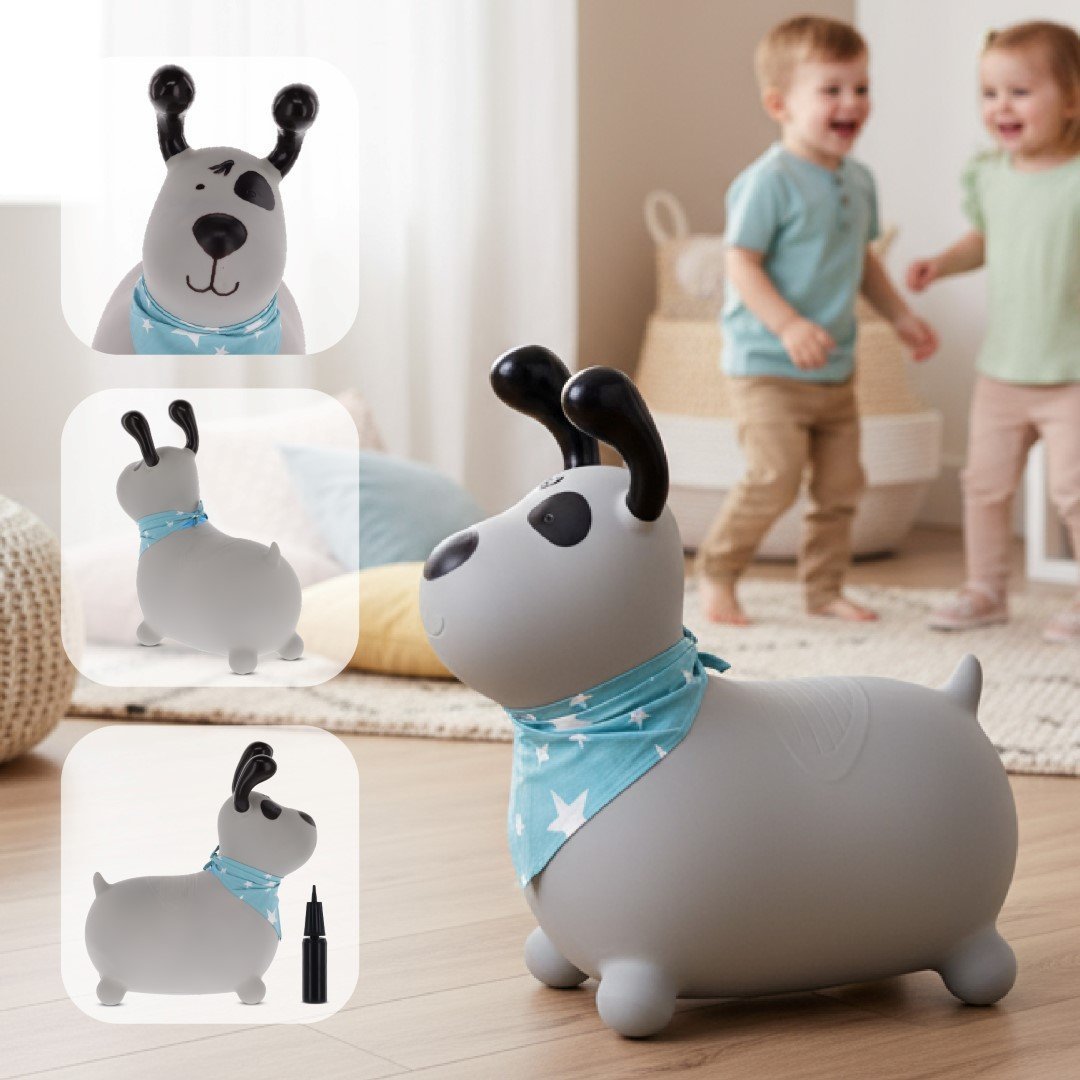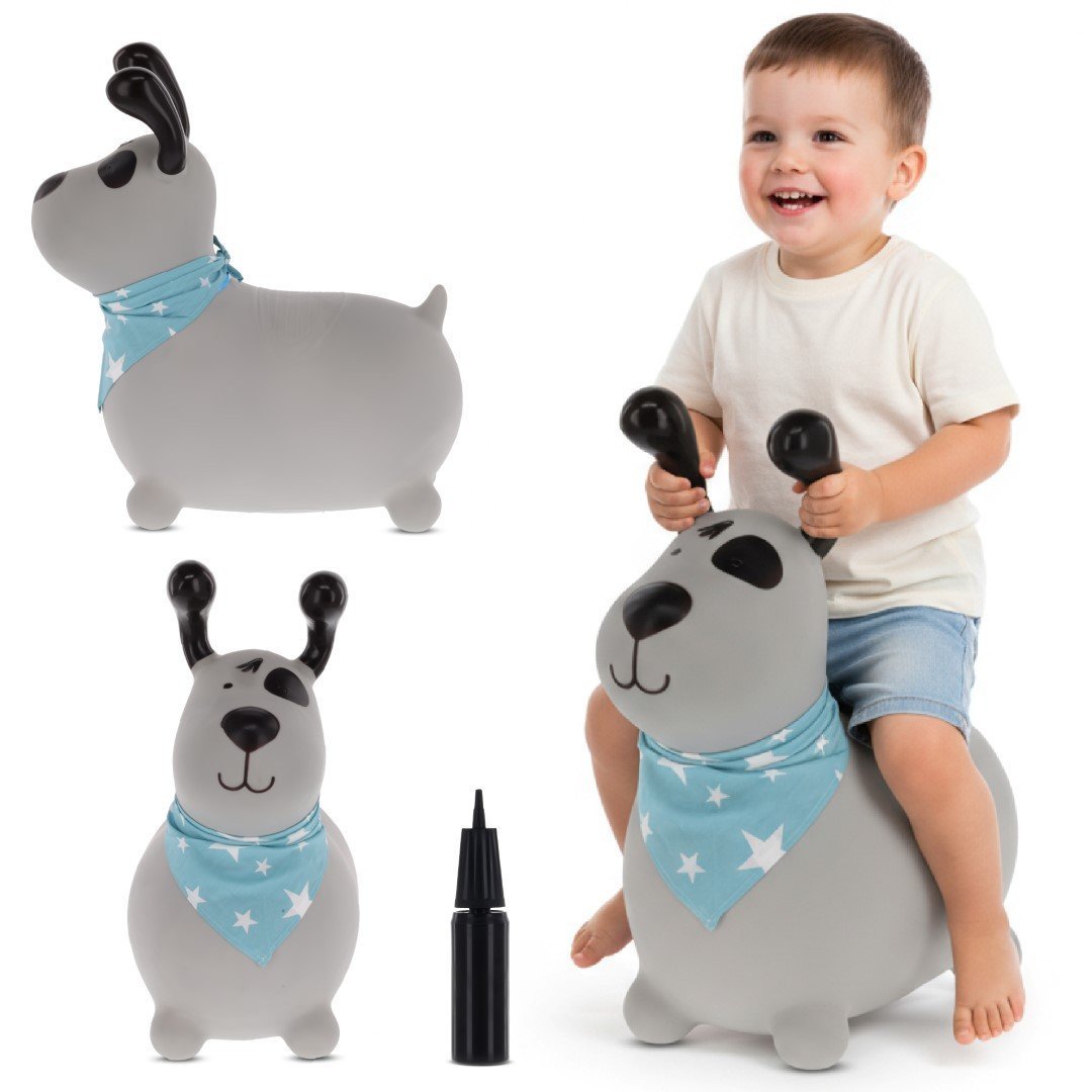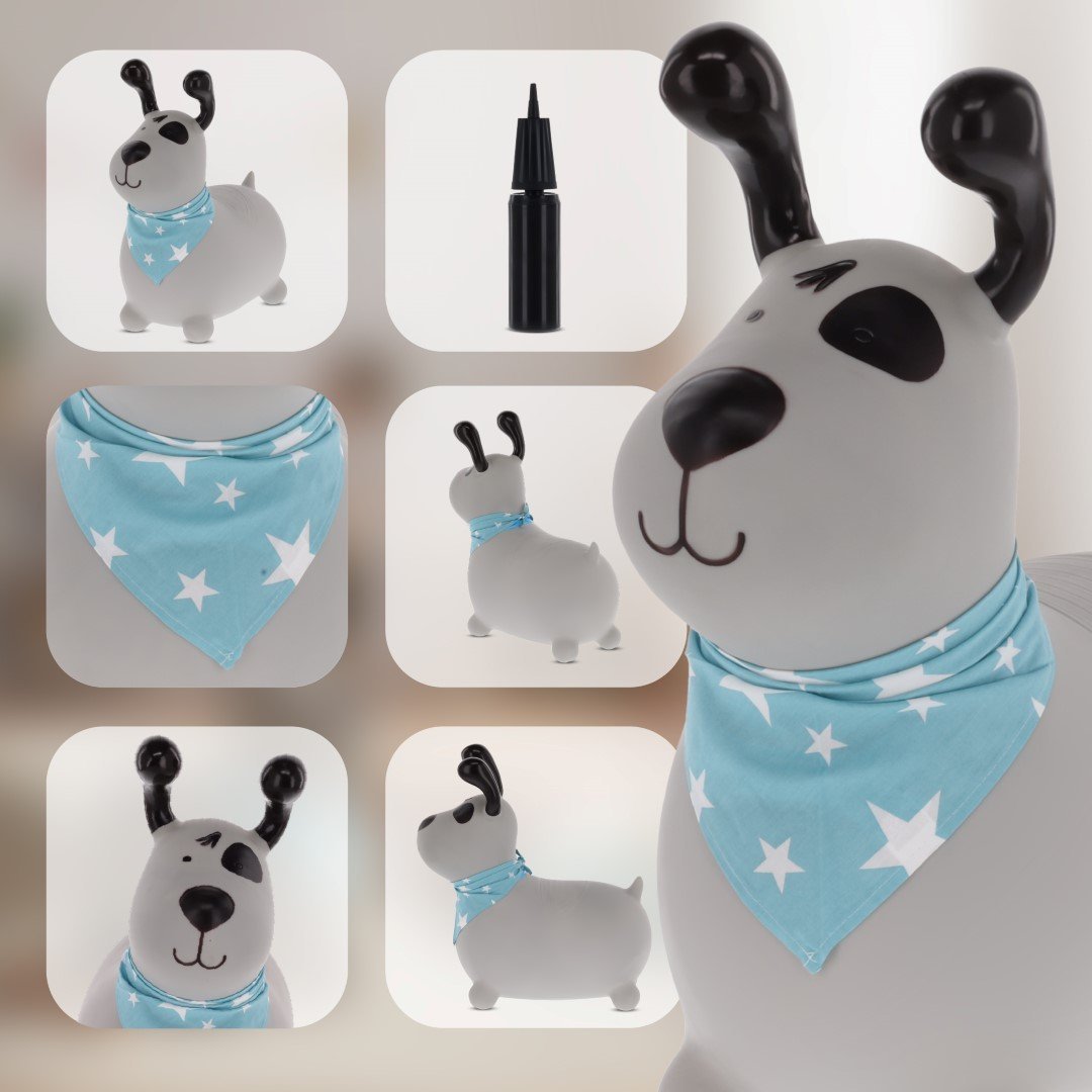 Sun Baby Reksio Hüpfburg für Kinder, Grau mit Halstuch und Pumpe – Hüpfspielzeug