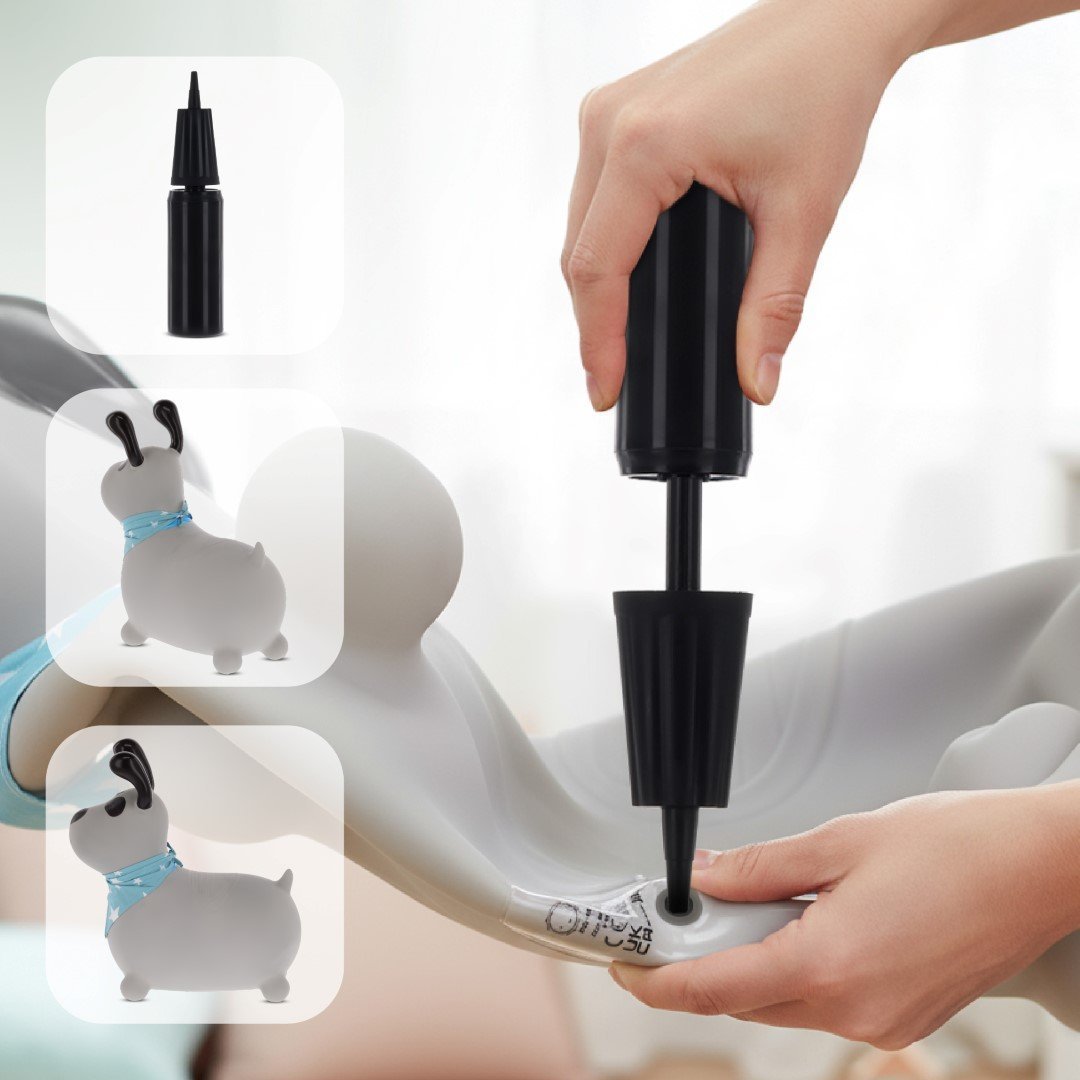Mit der mitgelieferten Pumpe lässt sich der Jumper schnell und einfach aufpumpen. Ein Kunststoffventil schützt die Öffnung an der Unterseite des Spielzeugs.