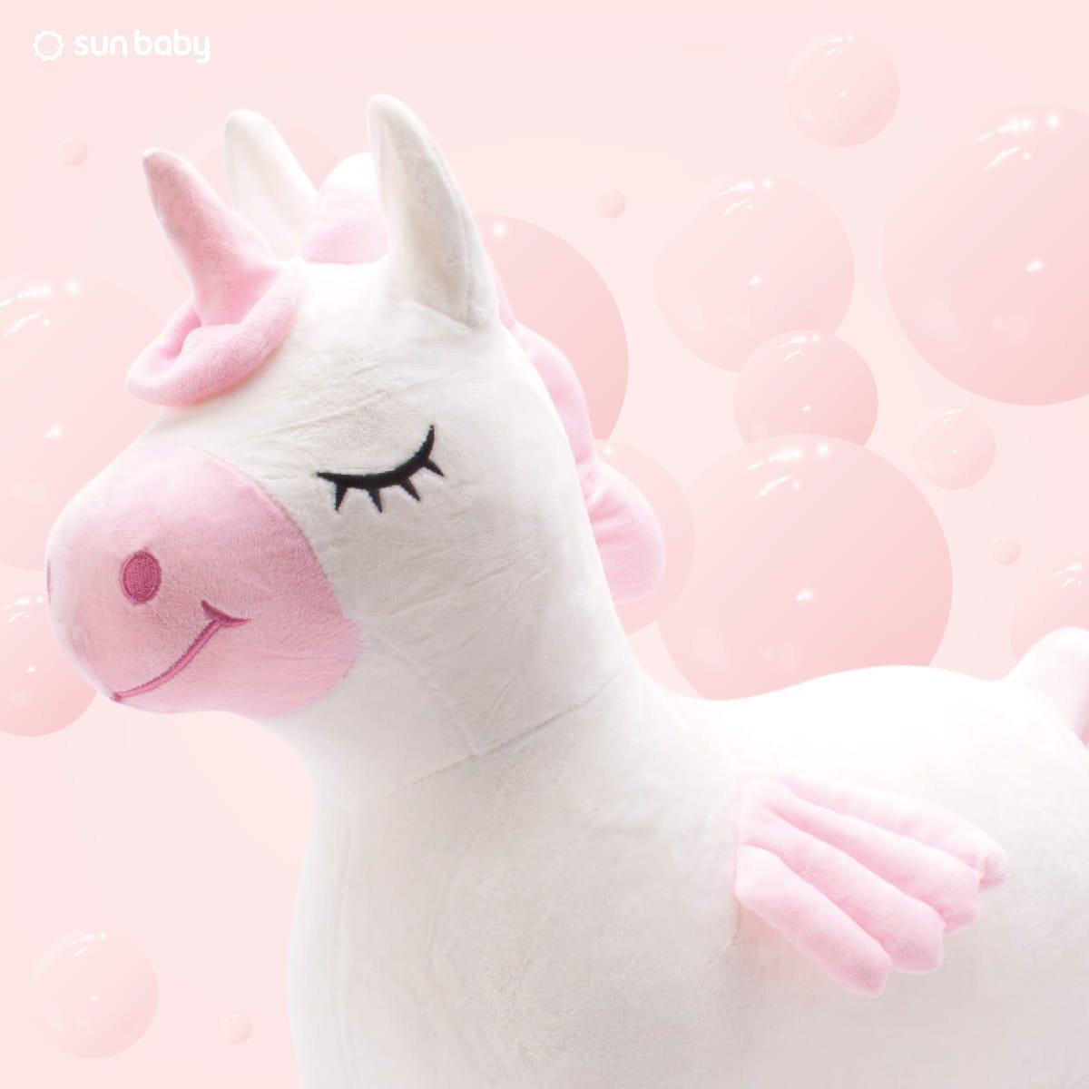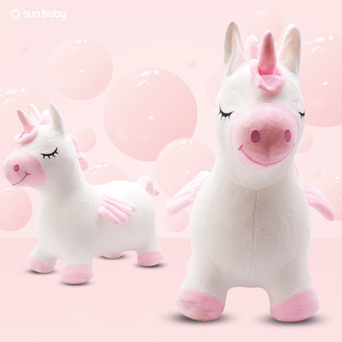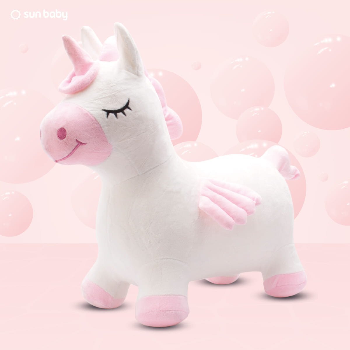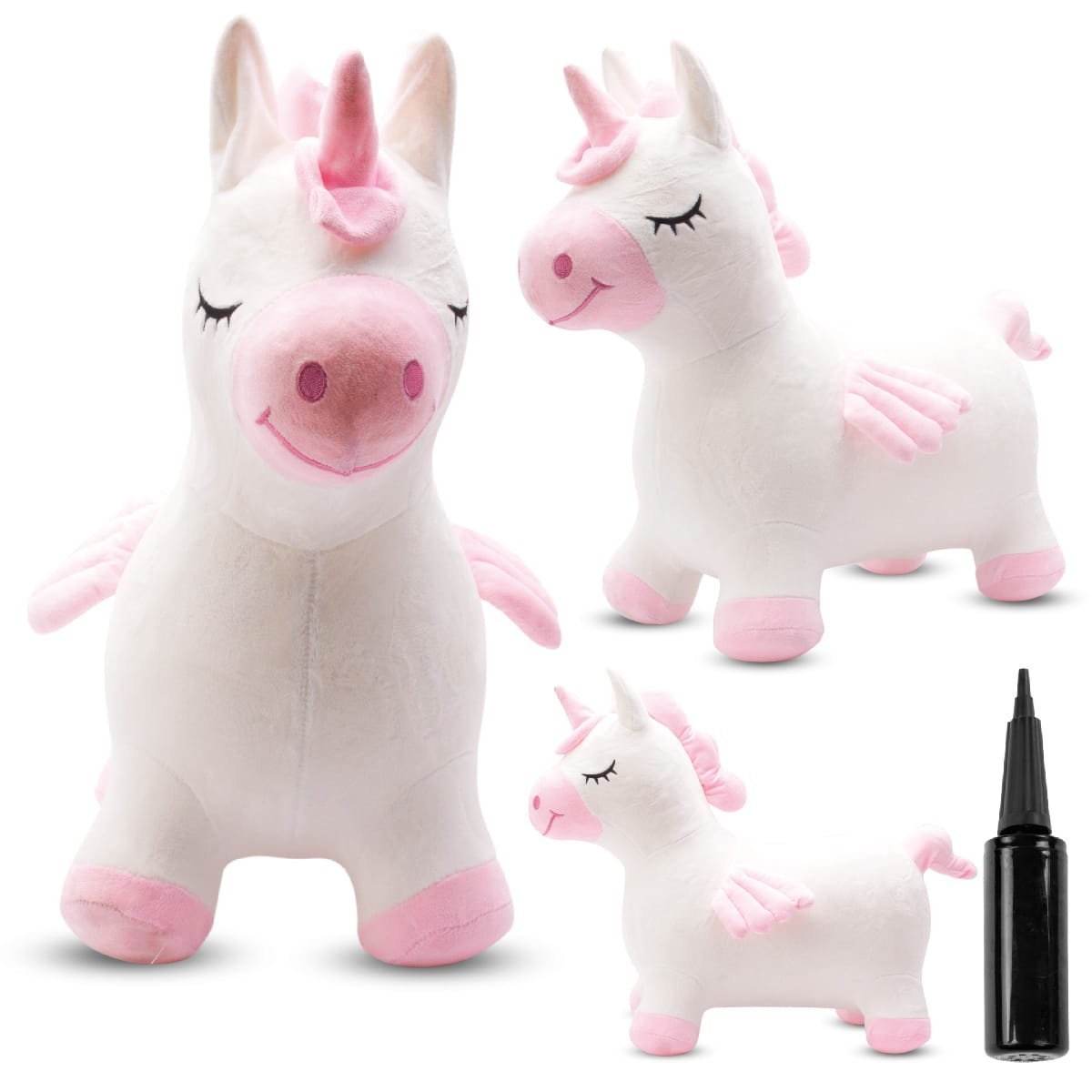 Plüschpullover für Kinder, Einhorn mit Flügeln, weiß und rosa - zum Hüpfen mit einer Luftpumpe