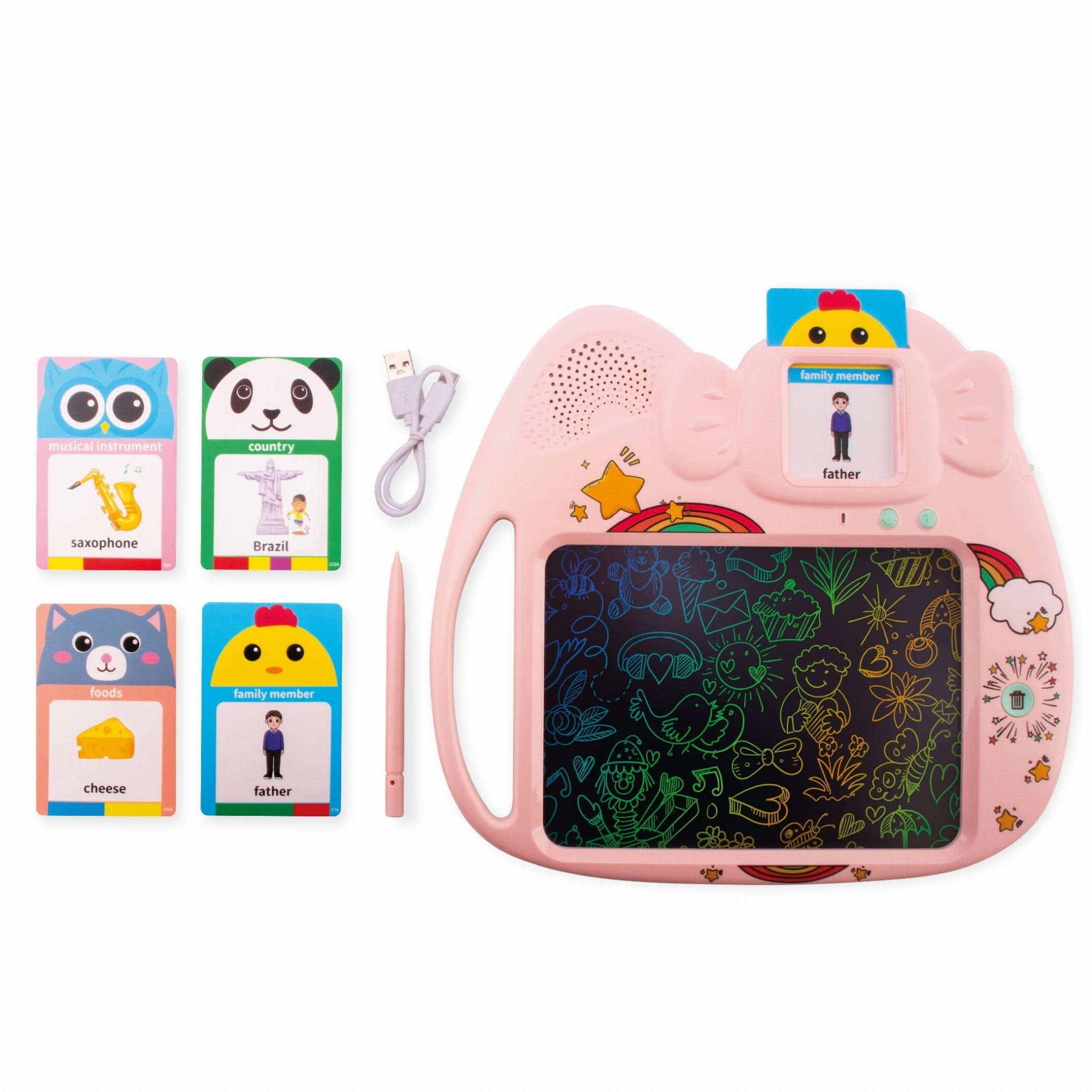 Sun Baby Zeichentablett, 2-in-1 Kartenleser zum Englischlernen, 112 doppelseitige Karten, Rosa