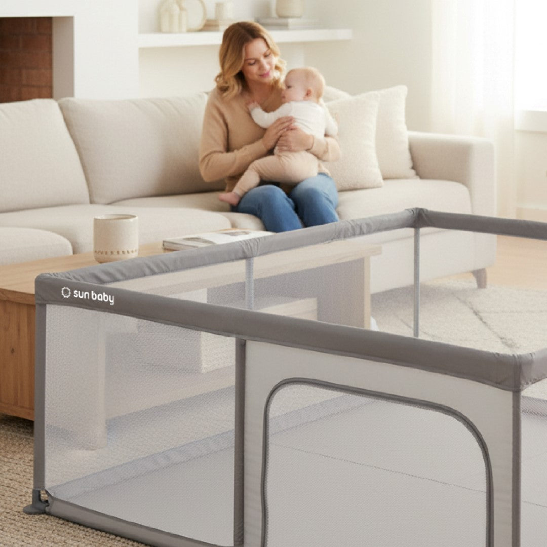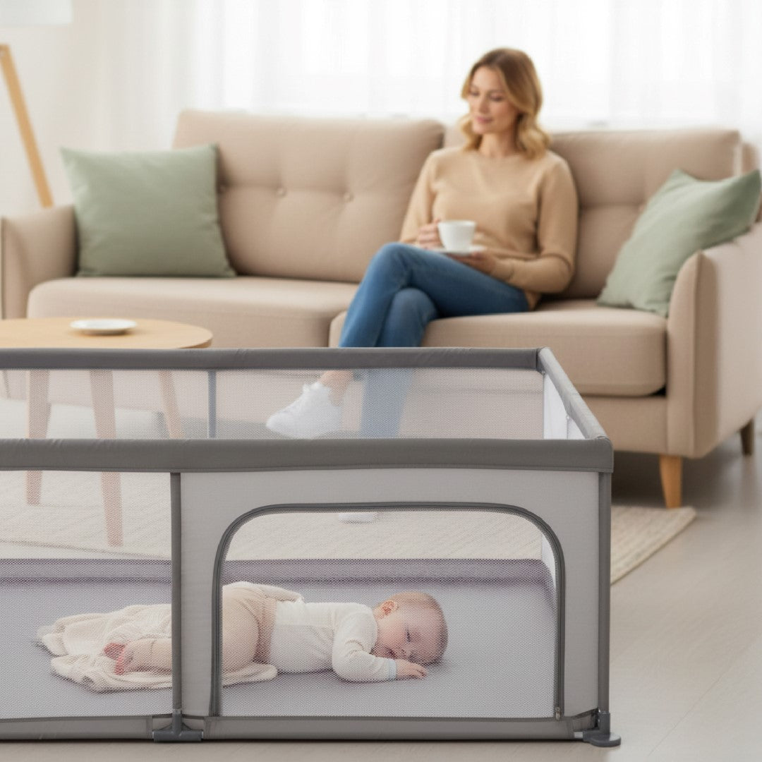 Airy mesh walls allow parents to have a full view of their baby while ensuring excellent ventilation inside the playpen. This means parents can be sure their little one is safe and content .