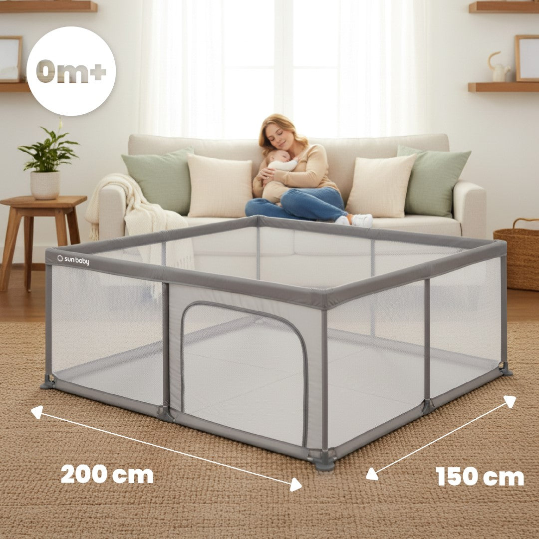 Sun Baby Large Playpen Baby Crib Playground with Floor Dry Pool 150x200 Gray