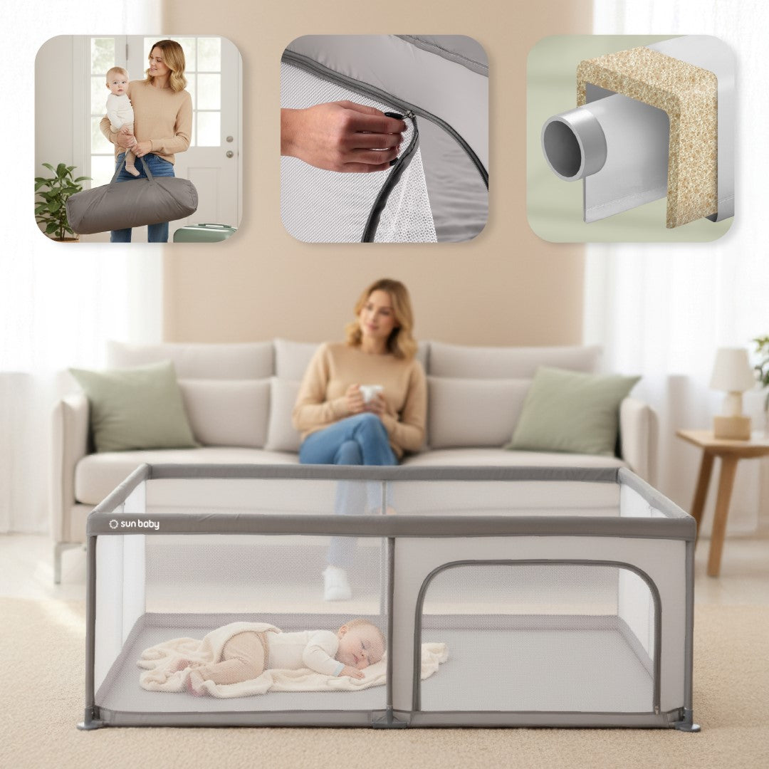 The playpen is designed to provide children with a safe environment to play in. The top edge is covered with a thin layer of foam , further protecting your little one from injury.