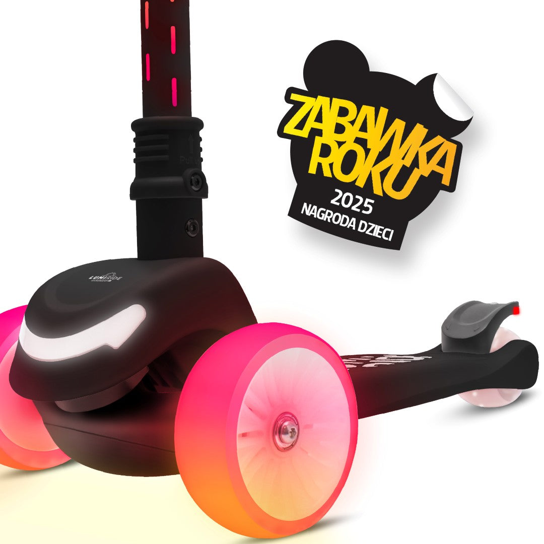 LUMI RIDE Tricycle Balance Scooter, Foldable, Adjustable, Rainbow LED Wheels, 7 Colors, 20 Programs, Black, Sun Baby