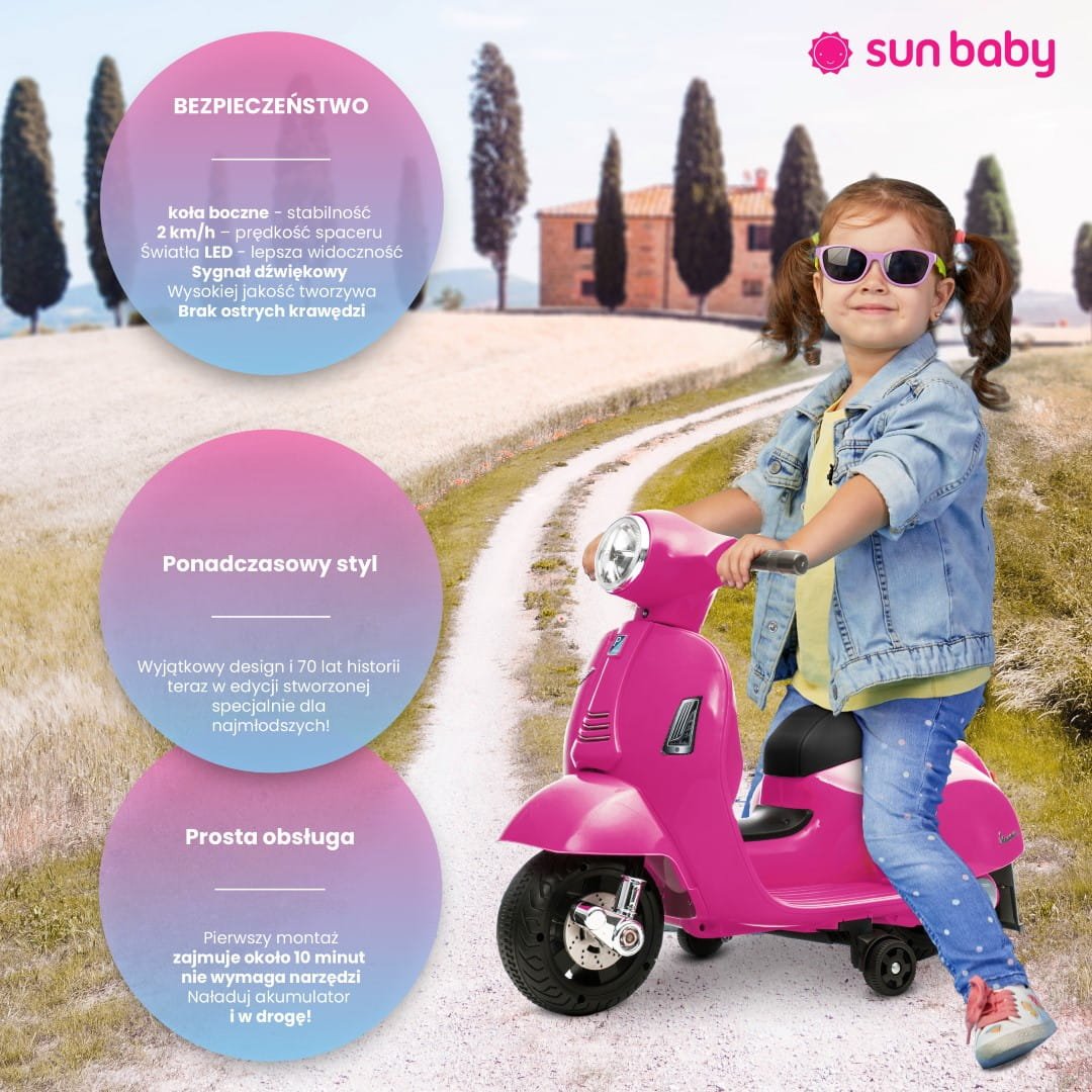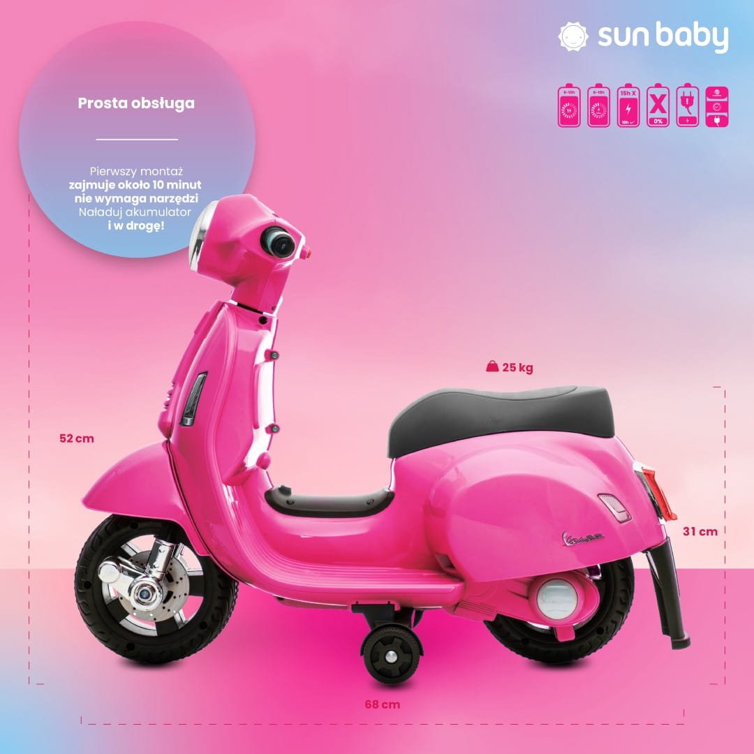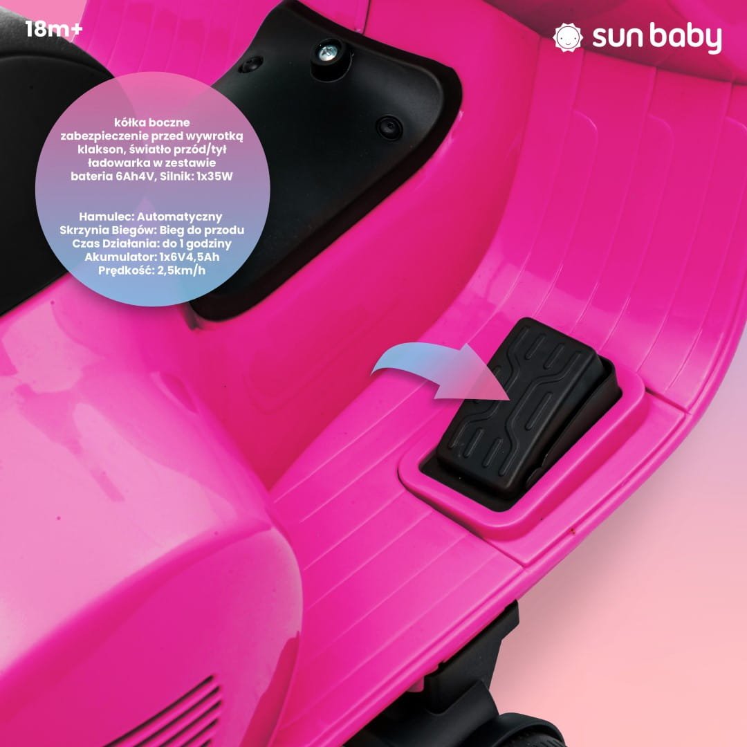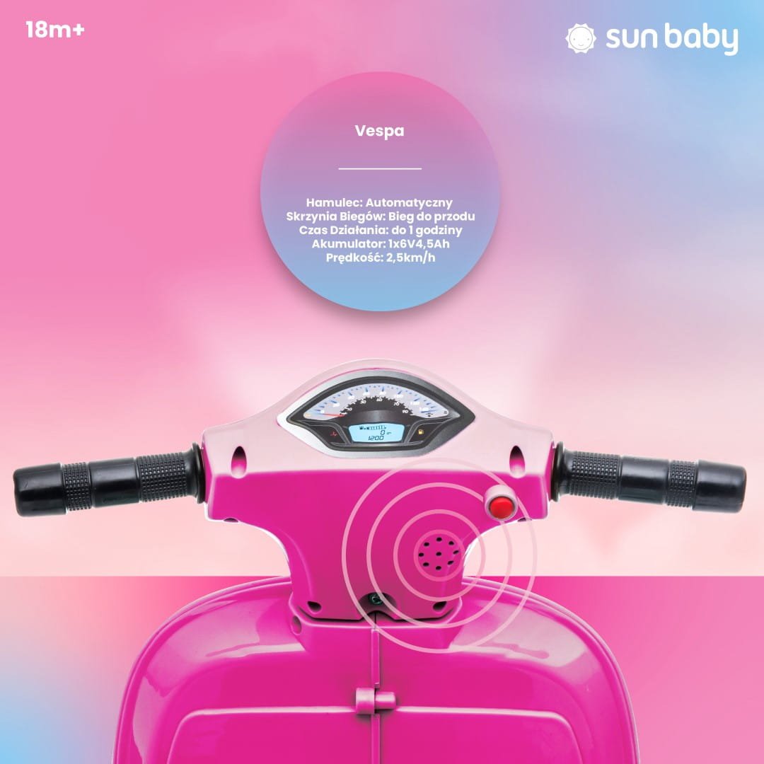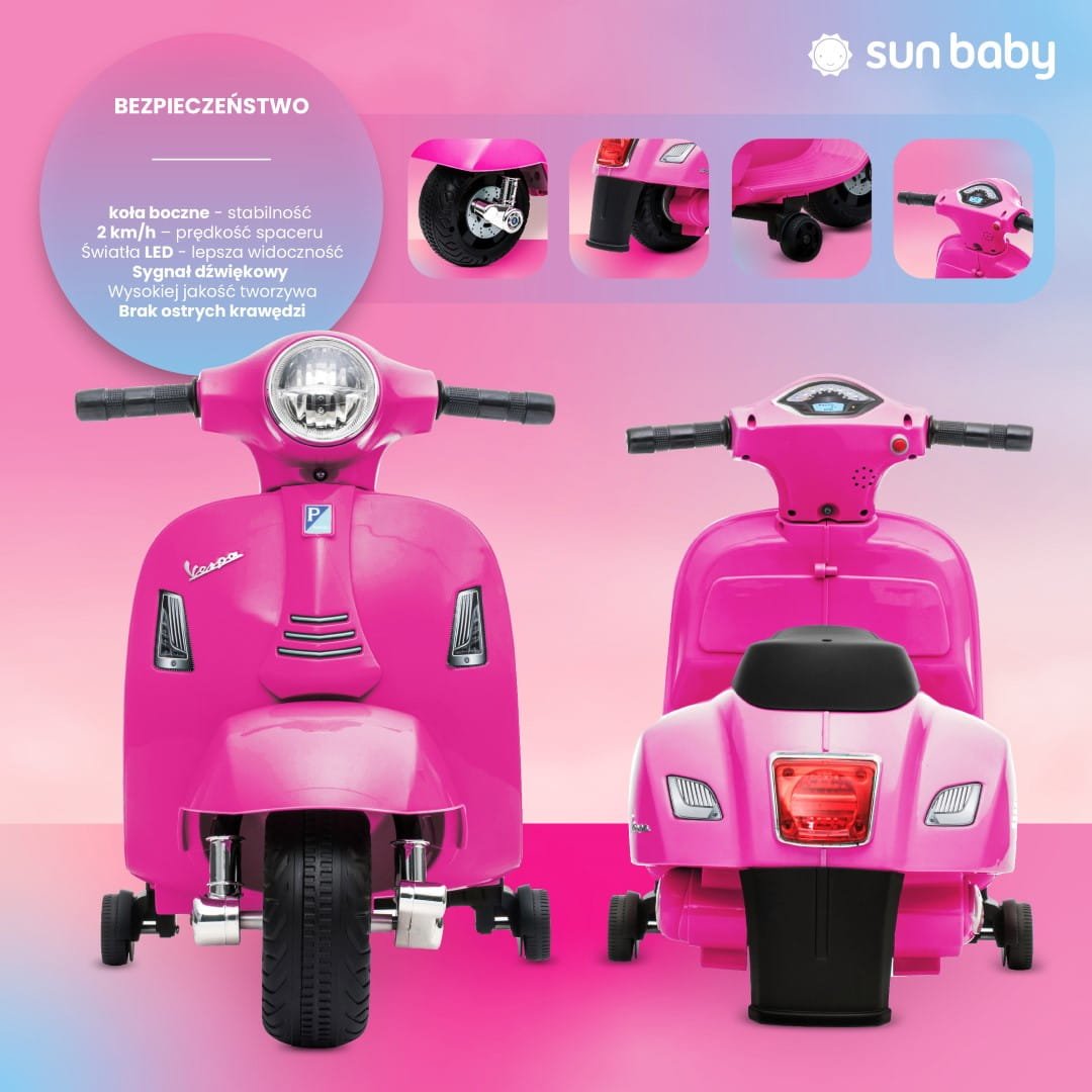 Battery-powered Vespa scooter ride-on for children, fuchsia, 2nd grade
