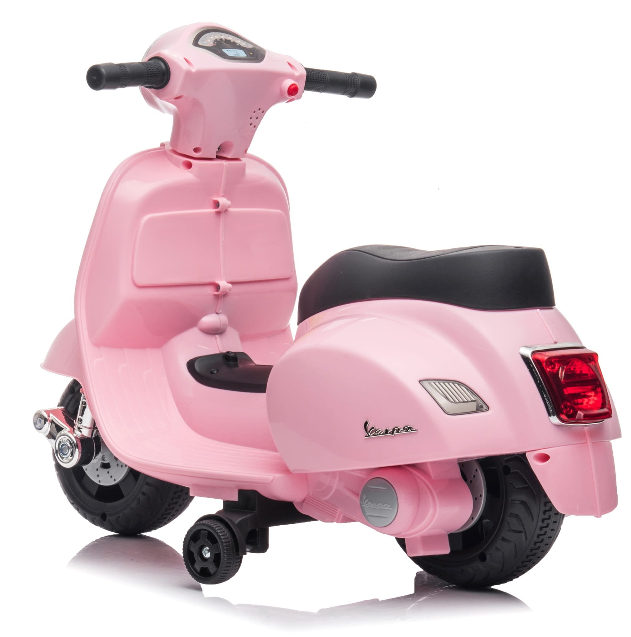 The Vespa electric scooter for children is equipped with side wheels that protect against tipping over, so you don't have to worry about your child's balance.