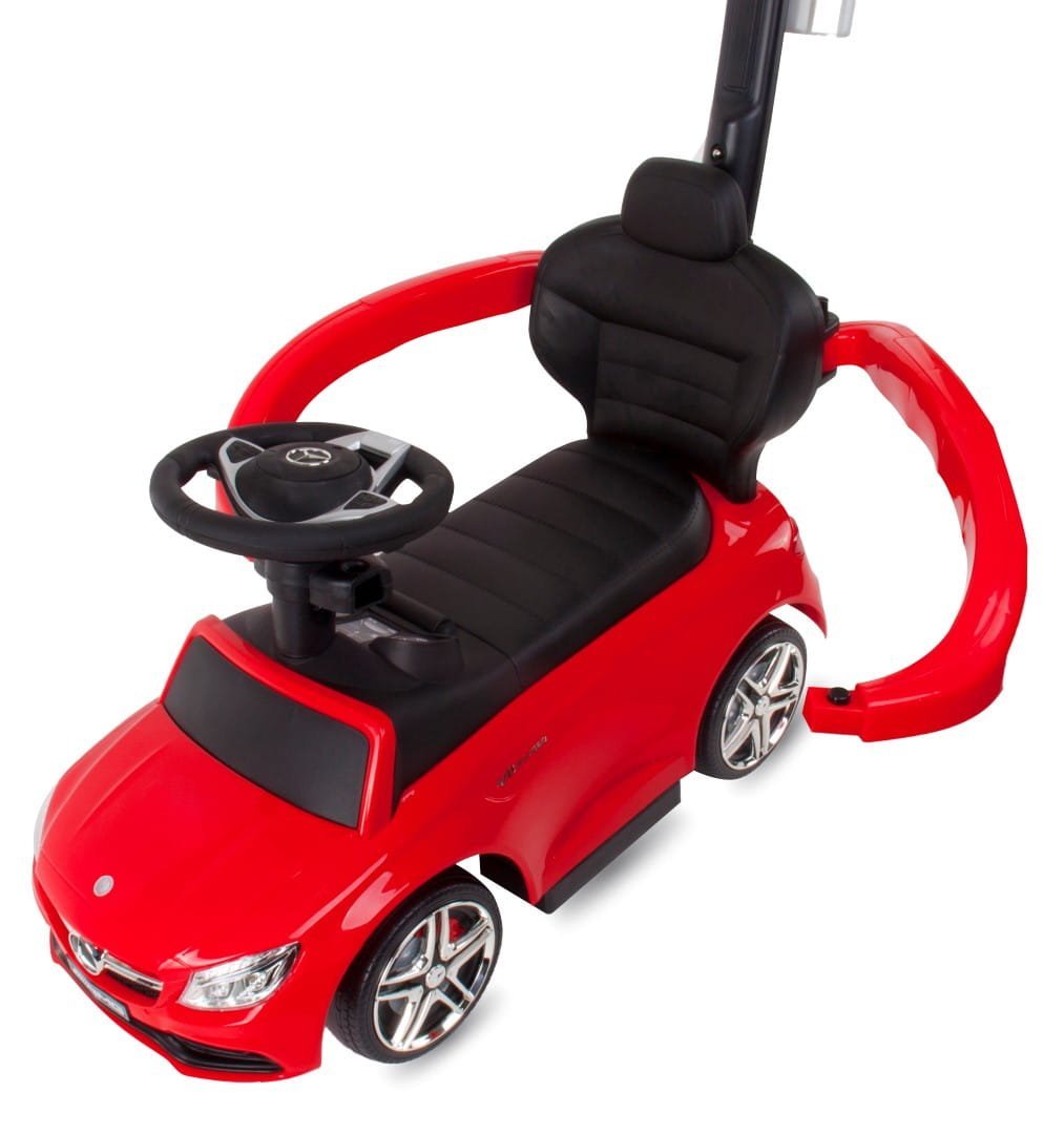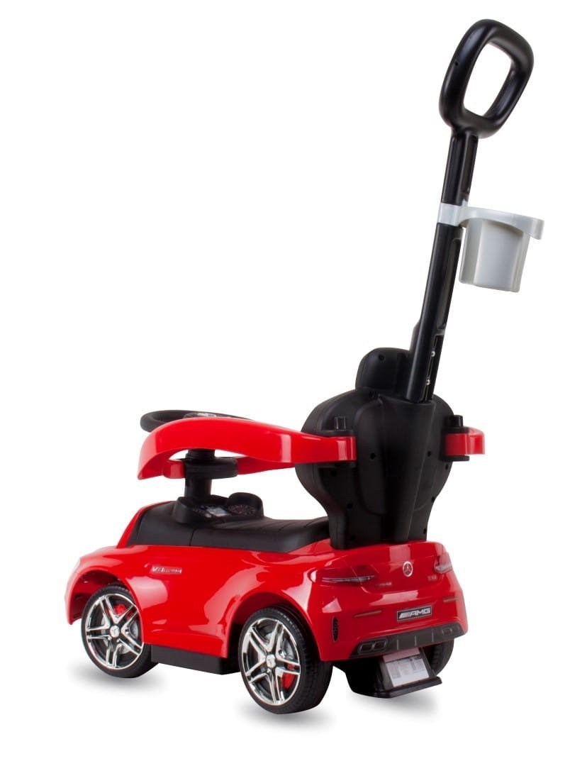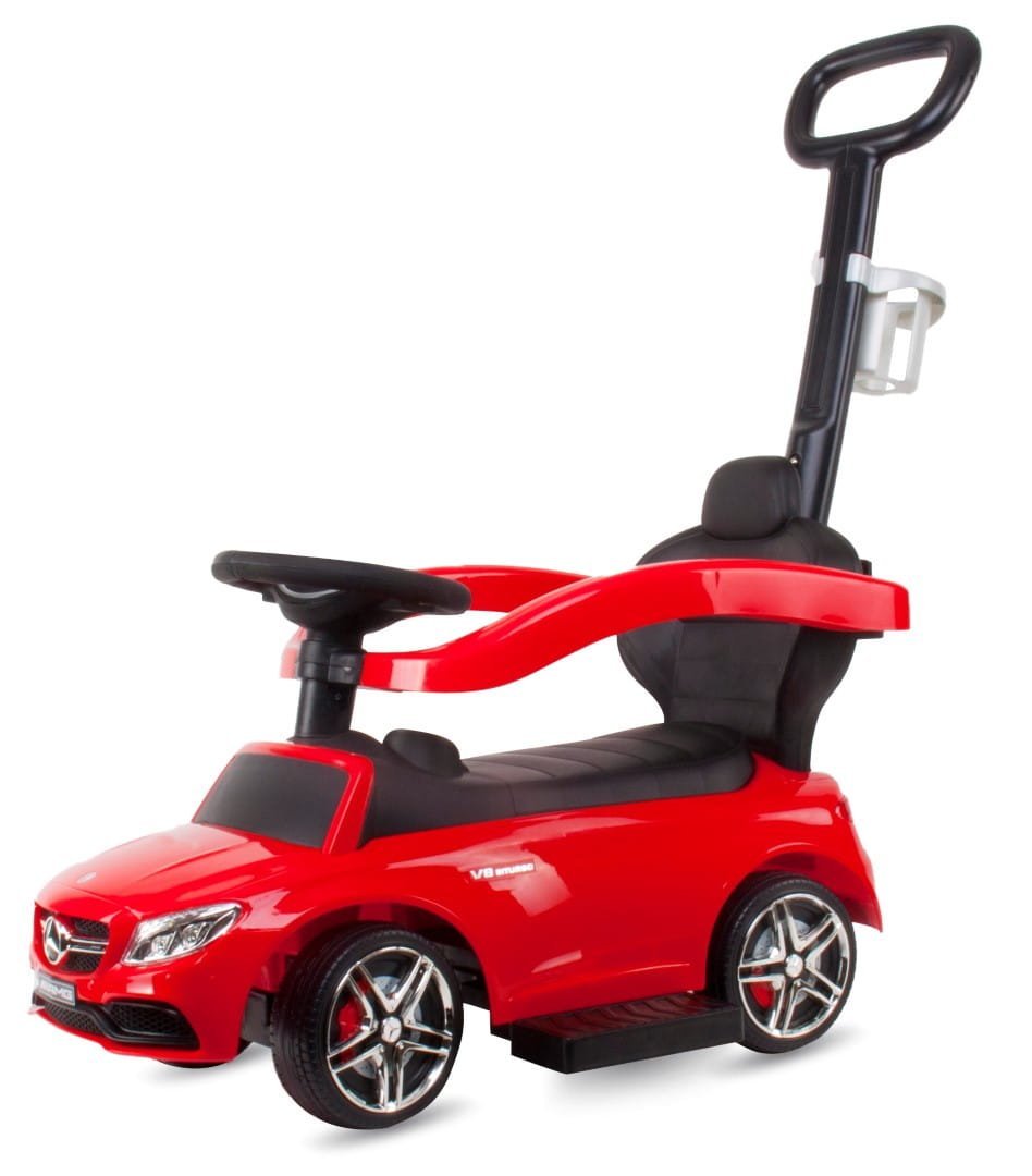 Jeździk dla dziecka z rączką i chowanymi podnóżkami Mercedes AMG C63 COUPE czerwony