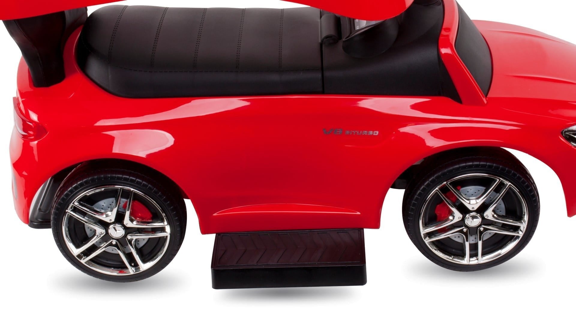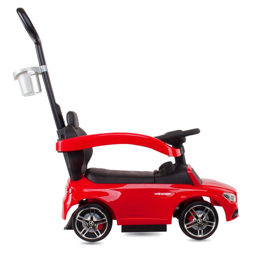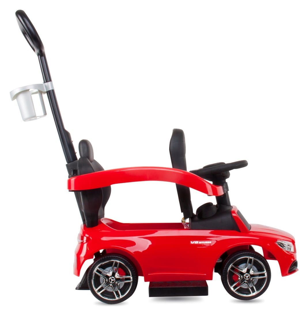 Jeździk dla dziecka z rączką i chowanymi podnóżkami Mercedes AMG C63 COUPE czerwony