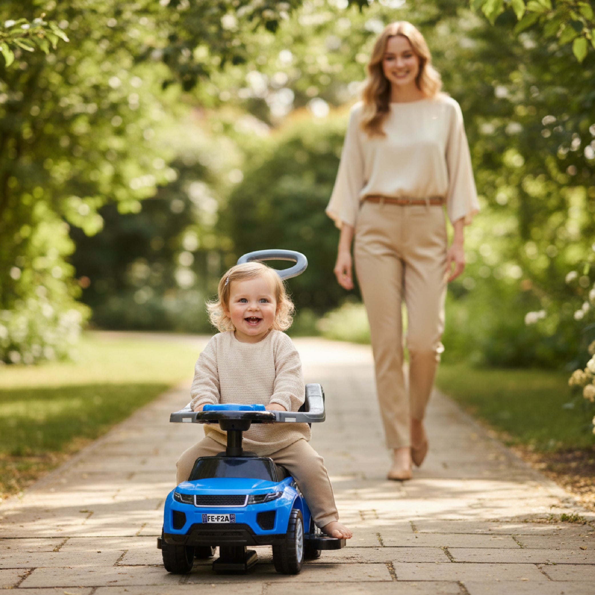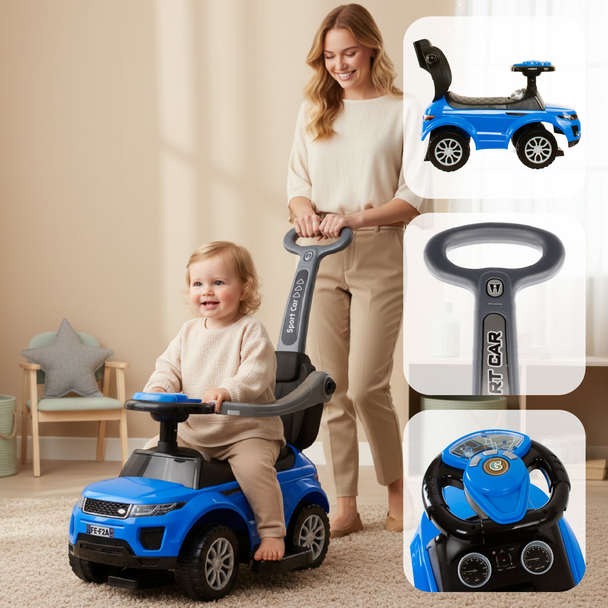 Ride-on pusher baby walker with handle and clamp Sport car blue