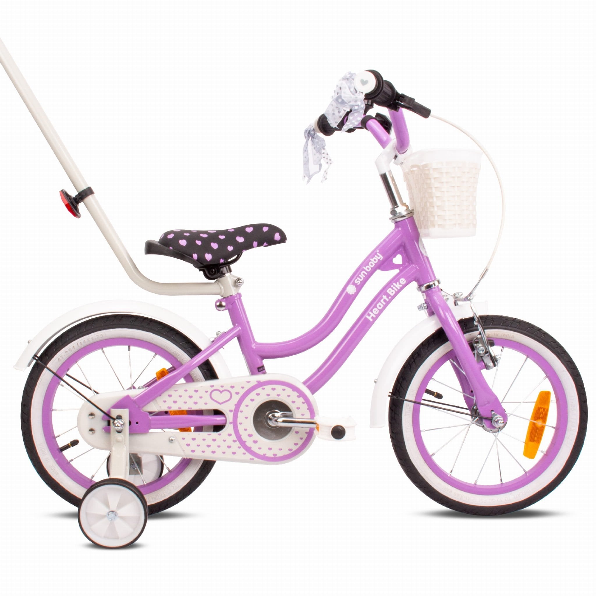 Sun Baby 14 inch Heart Bike purple girl's bike with pusher and training wheels