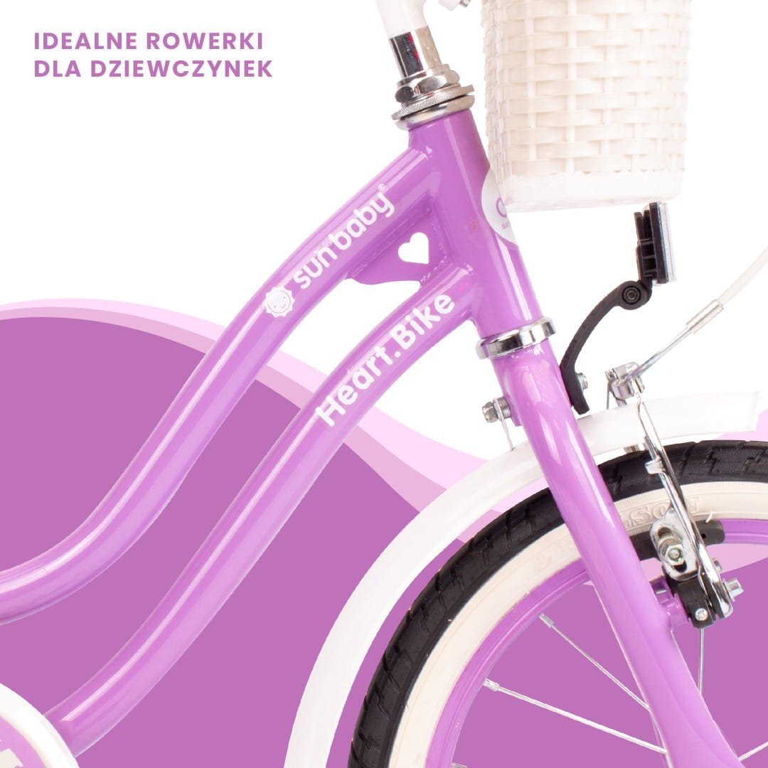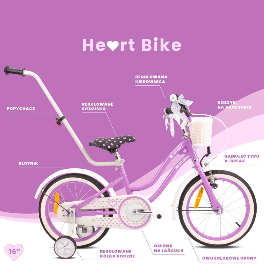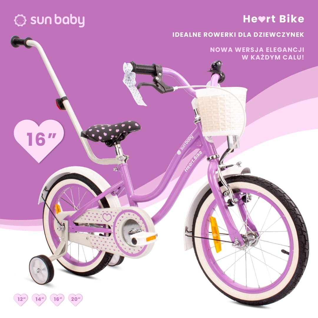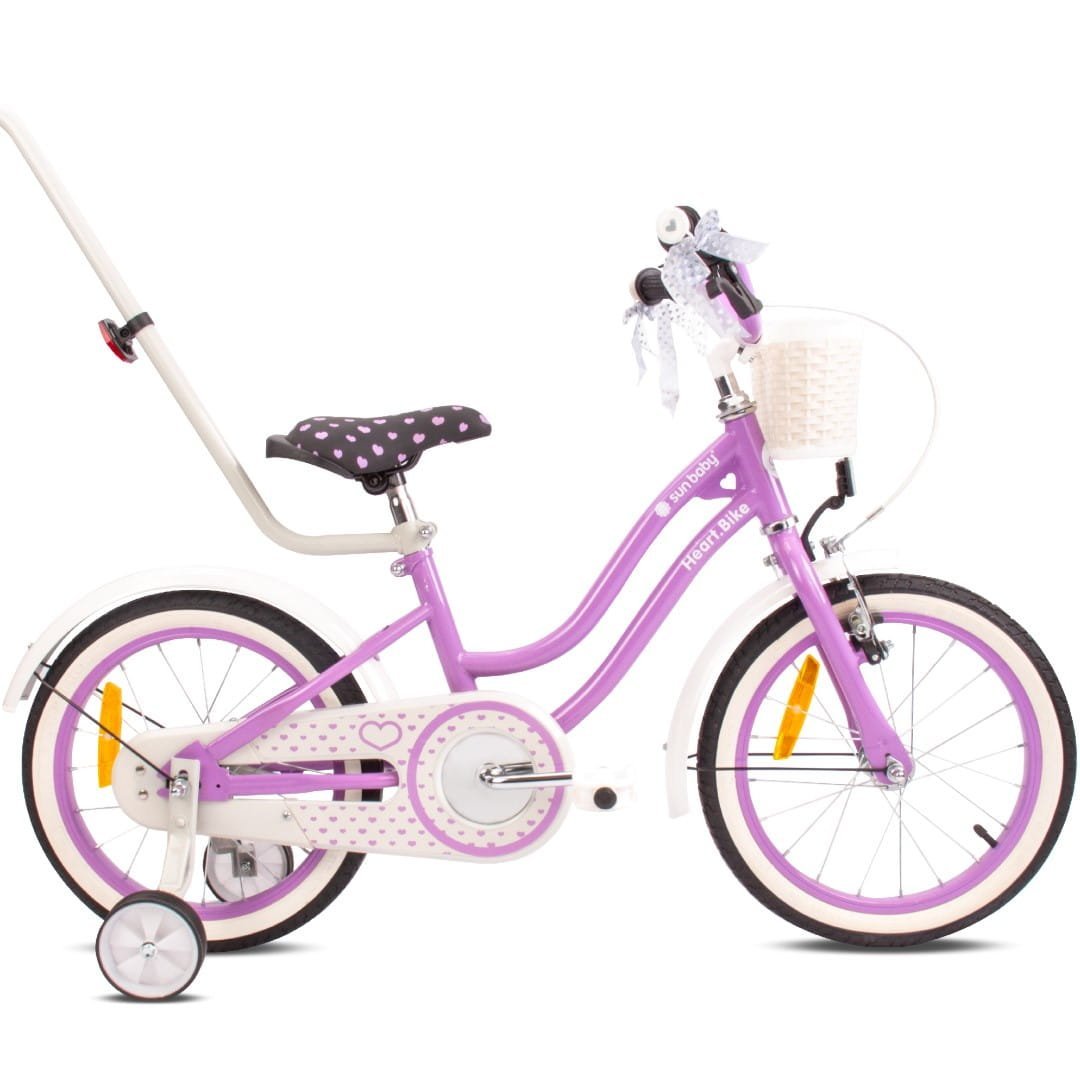 Sun Baby 16-inch Heart Bike purple bike for girls – a children's bike with a pusher, training wheels and a basket