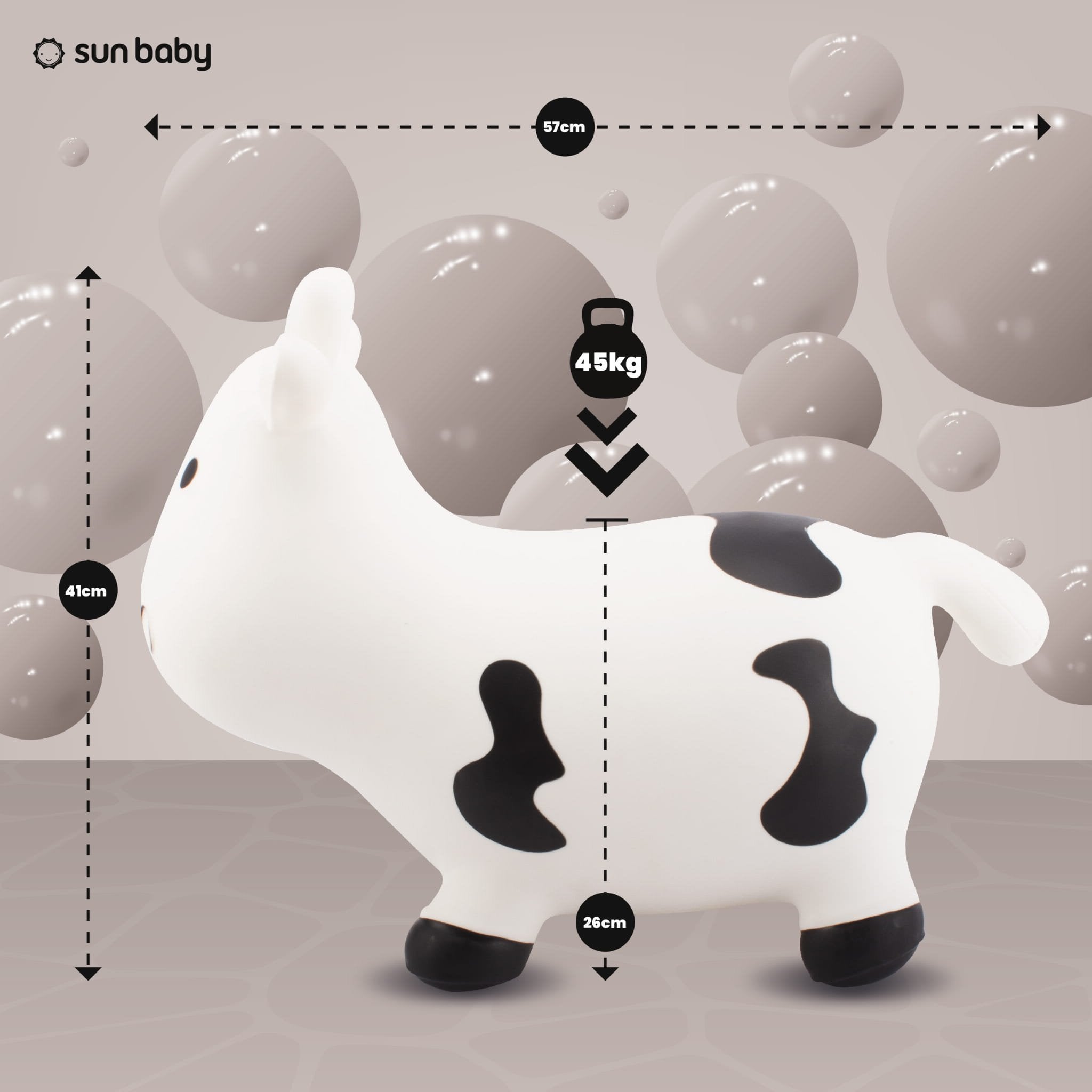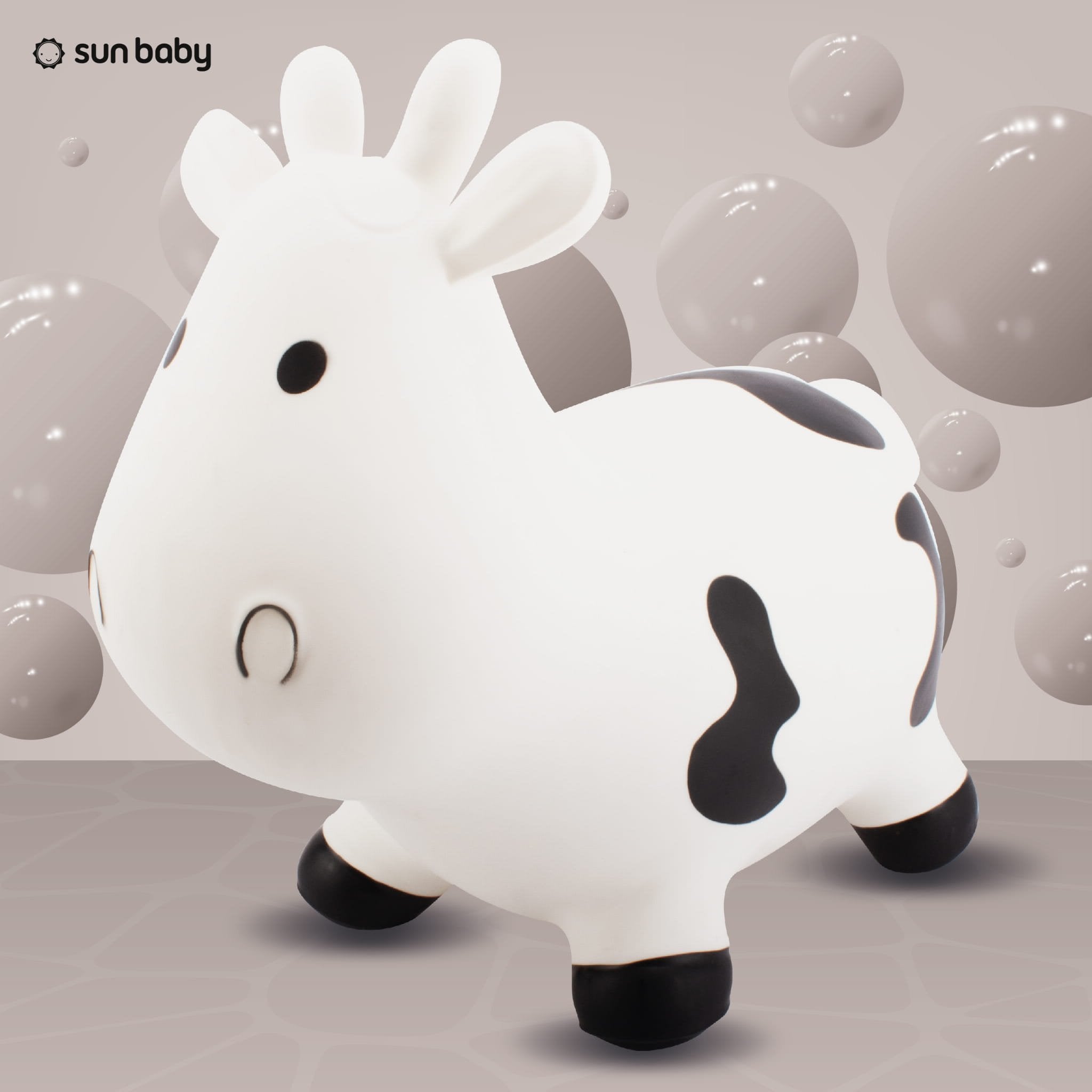 The Cow Jumper is made of non-toxic rubber that meets European safety standards. Its shape ensures a stable and safe seating position for children, ensuring comfortable and enjoyable play.