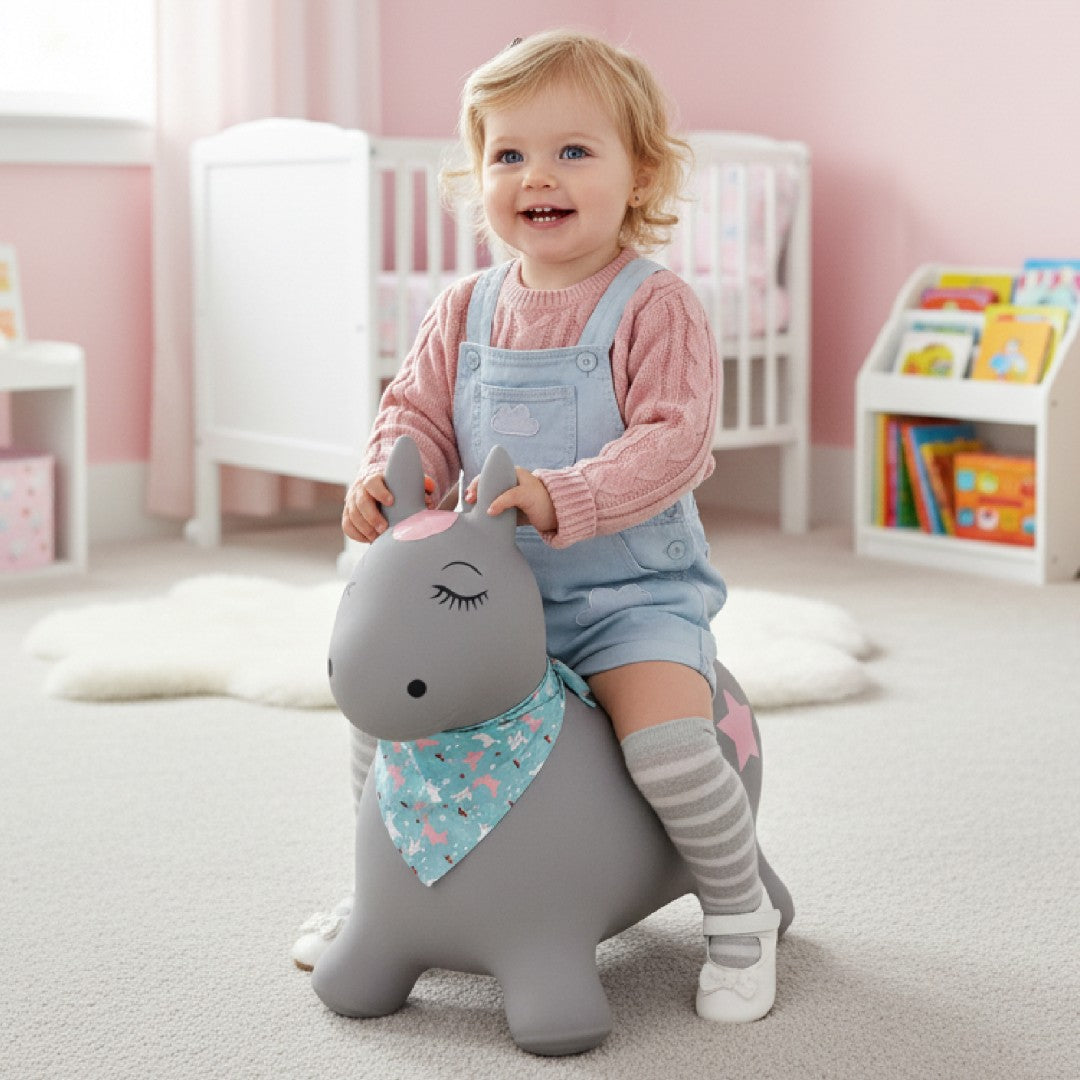 Sun Baby Pony Jumper for Kids, Gray with Bandana and Pump – Jumping Toy