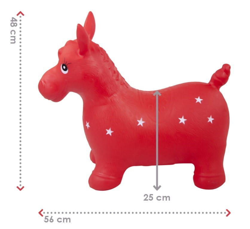 Gumowy skoczek dla dziecka w kształcie konika to mnóstwo skocznej zabawy, którą najmłodsi uwielbiają! Skoczek wykonany jest z wytrzymałej, atestowanej gumy, więc nie ma ryzyka, że podczas zabawy się przebije. Gumowy skoczek nie posiada żadnych ruchomych części, dzięki czemu jest odporny na najbardziej beztroskie traktowanie. Skoczek nadaje się do zabawy w pomieszczeniu jak i na dworze - wystarczy go nadmuchać dołączoną do zestawu pompką i gotowe! Skoczek gumowy świetnie nadaje się na prezent. Stanowi doskonałą rozrywkę w domu, ogrodzie i na plaży. Skoczek przeznaczony jest dla dziecka od 1 roku życia.