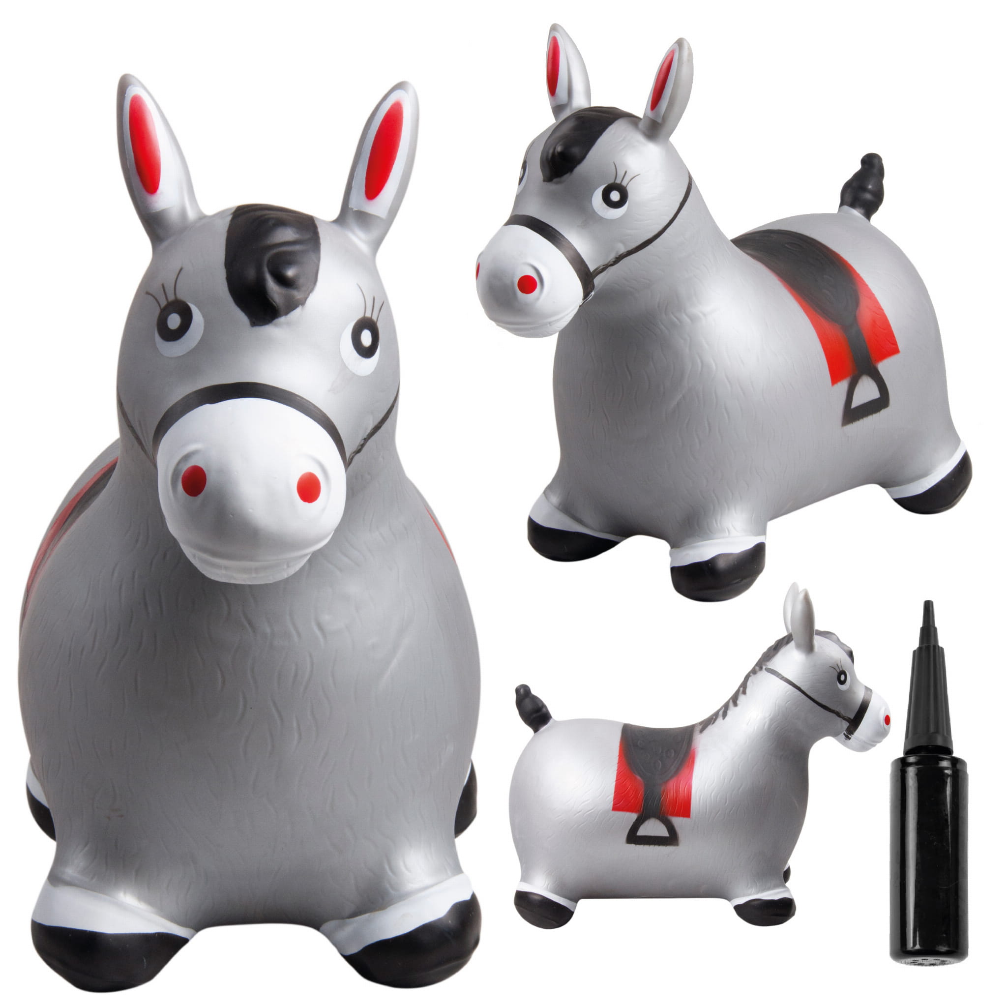 Duży gumowy skoczek dla dzieci srebrny konik do skakania z pompką, zabawka do skakania