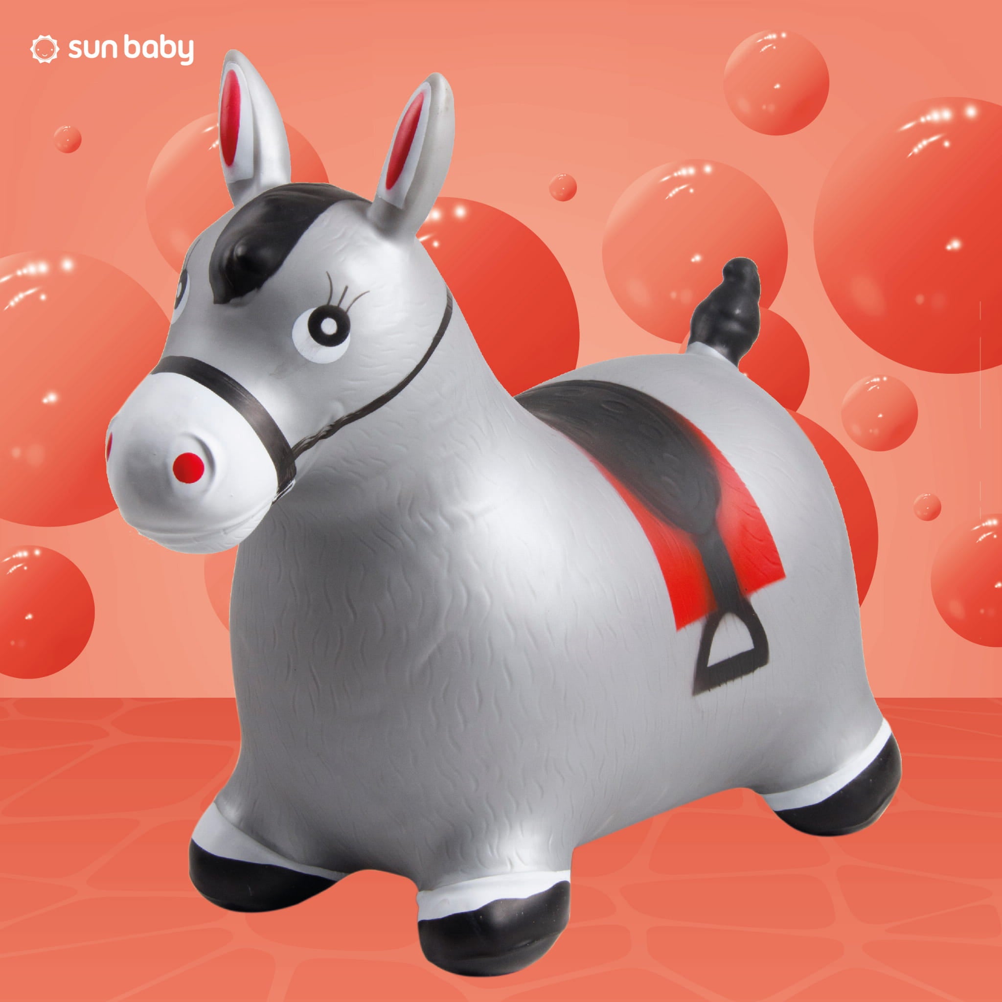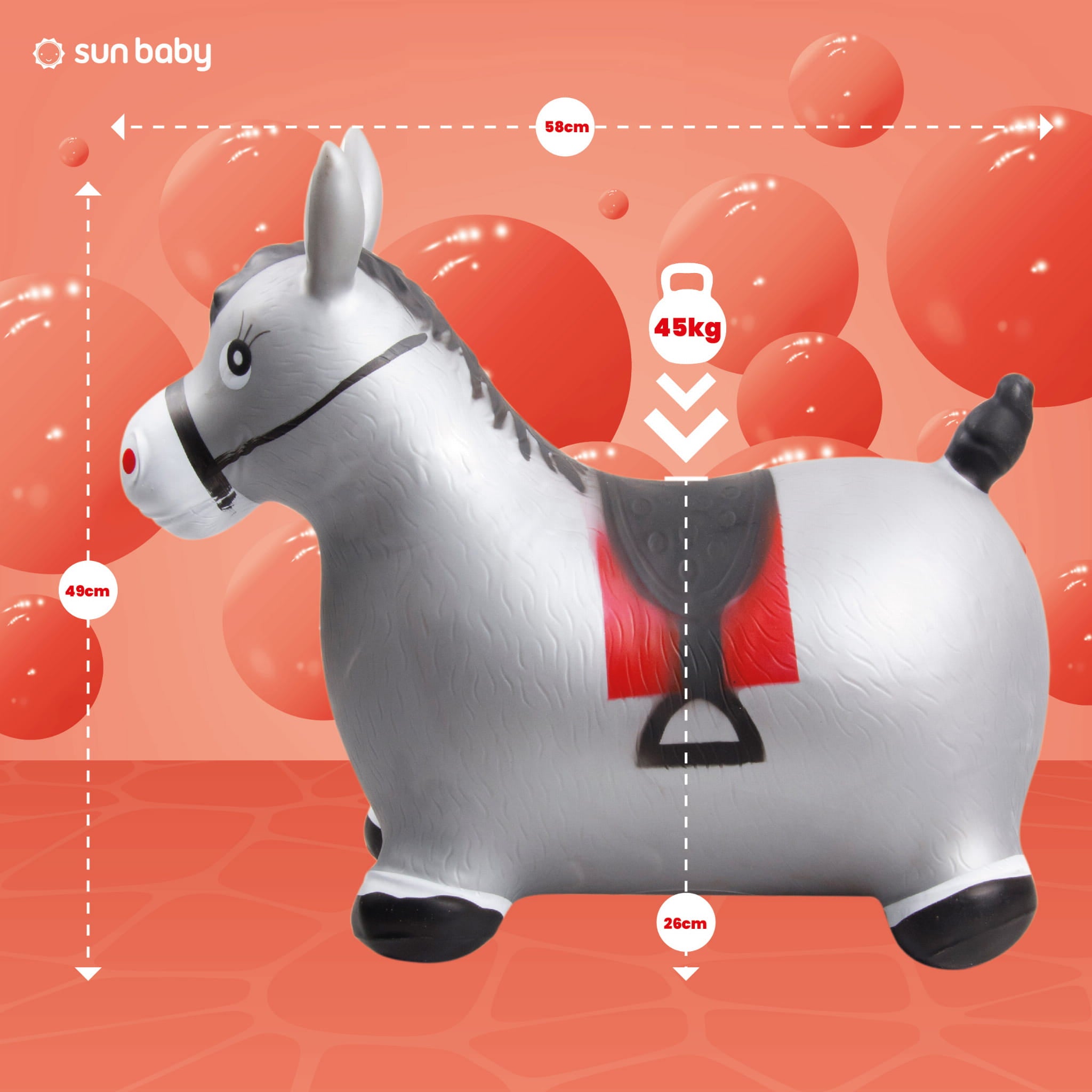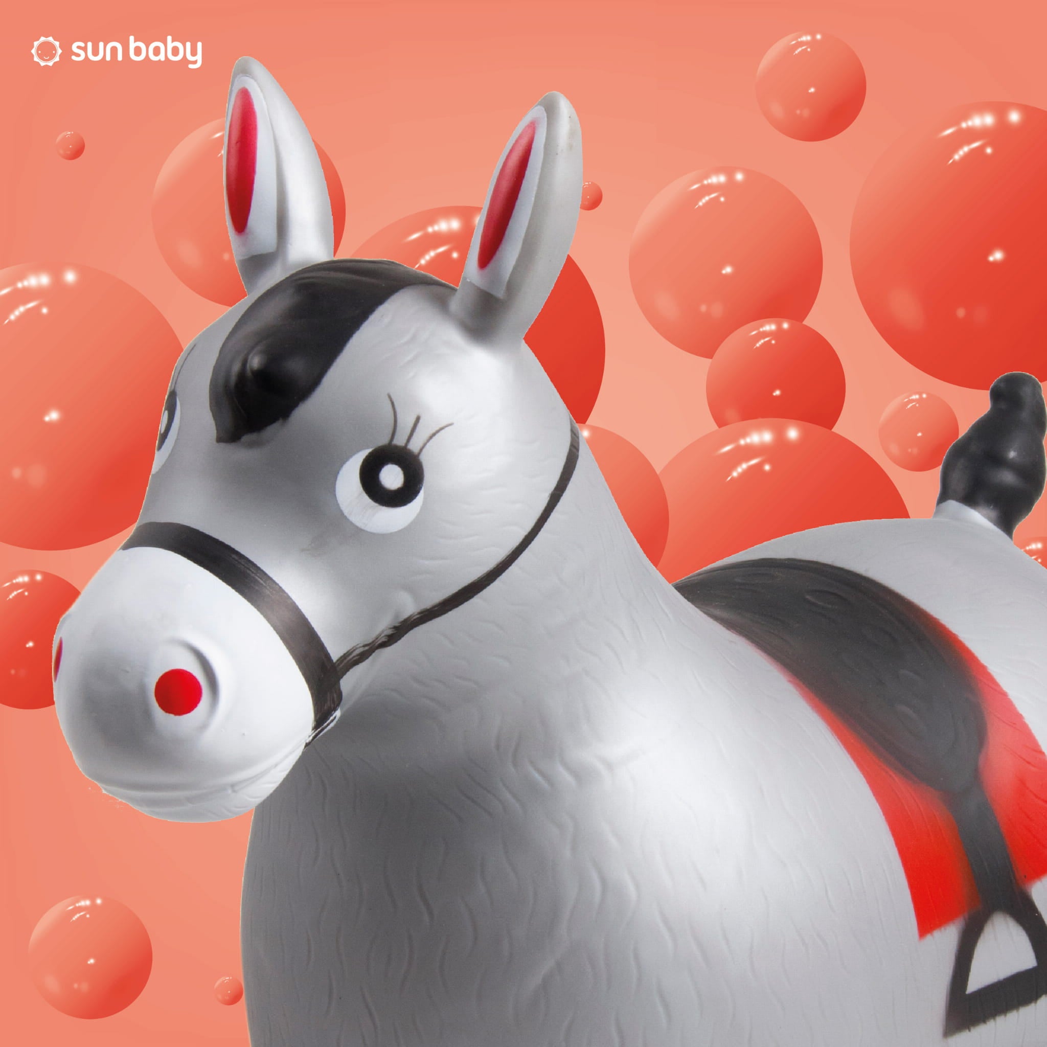 Sun Baby Skoczek dla dzieci srebrny konik z pompką – zabawka do skakania