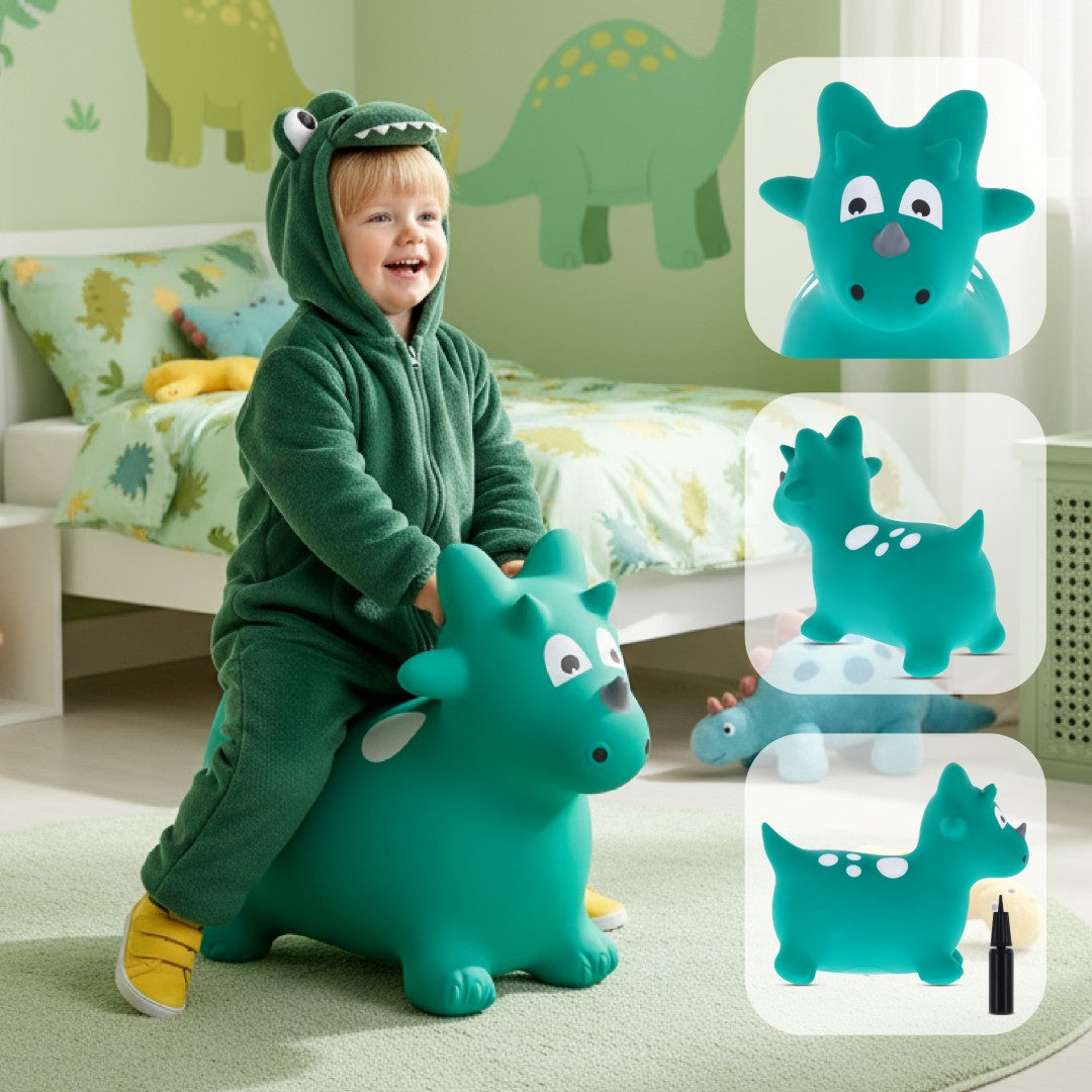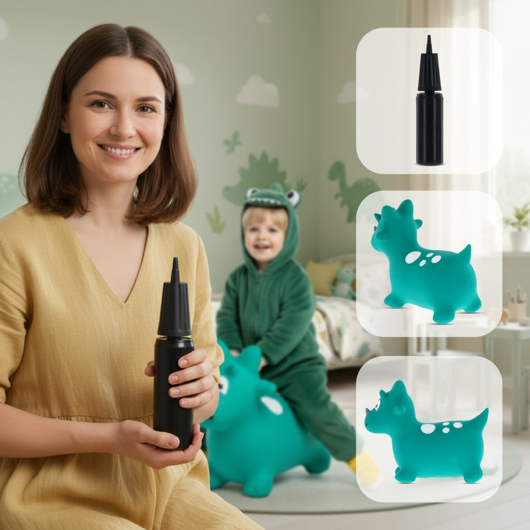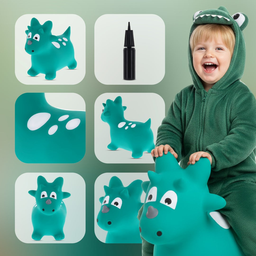 Skoczek dla dzieci Dino zielony z pompką – zabawka do skakania