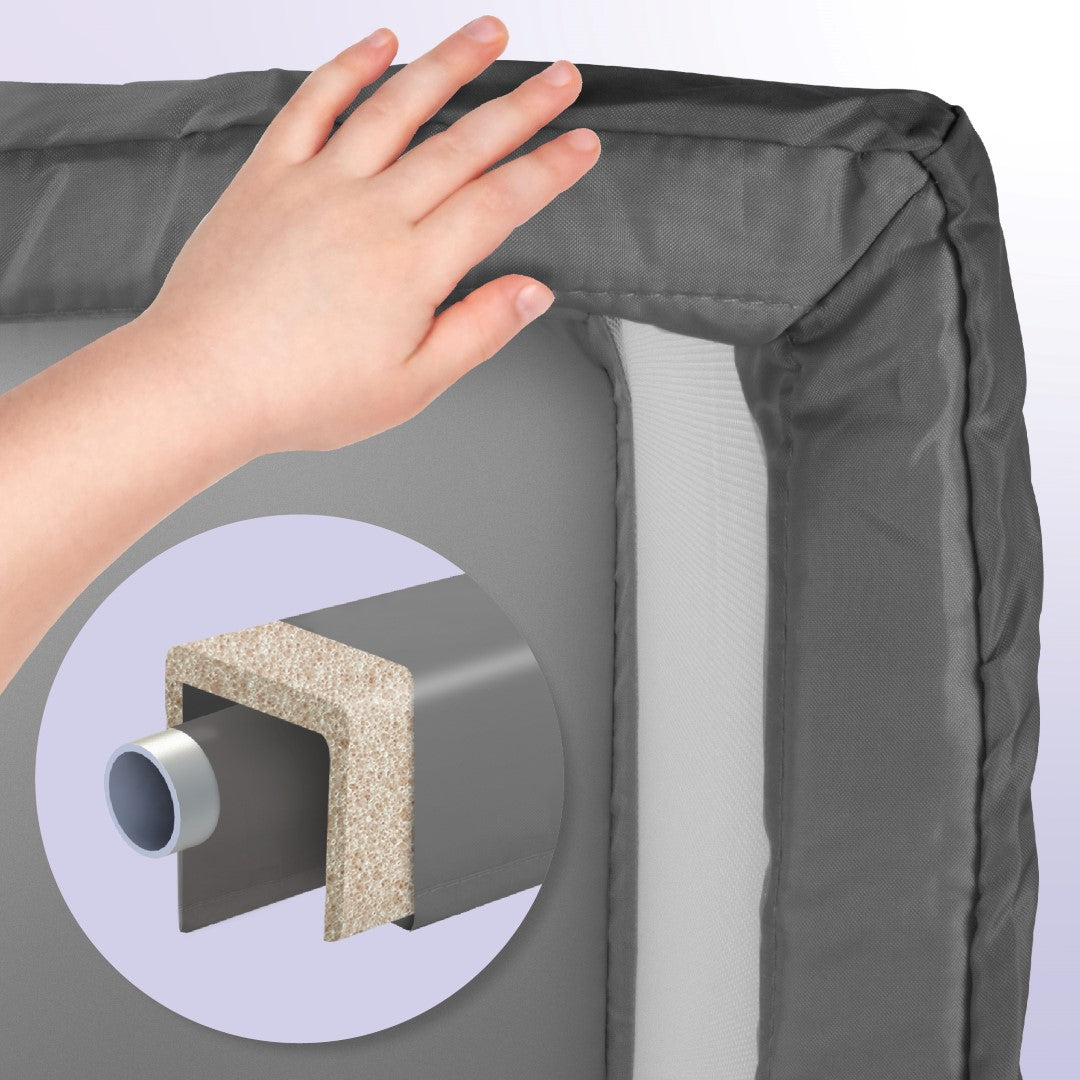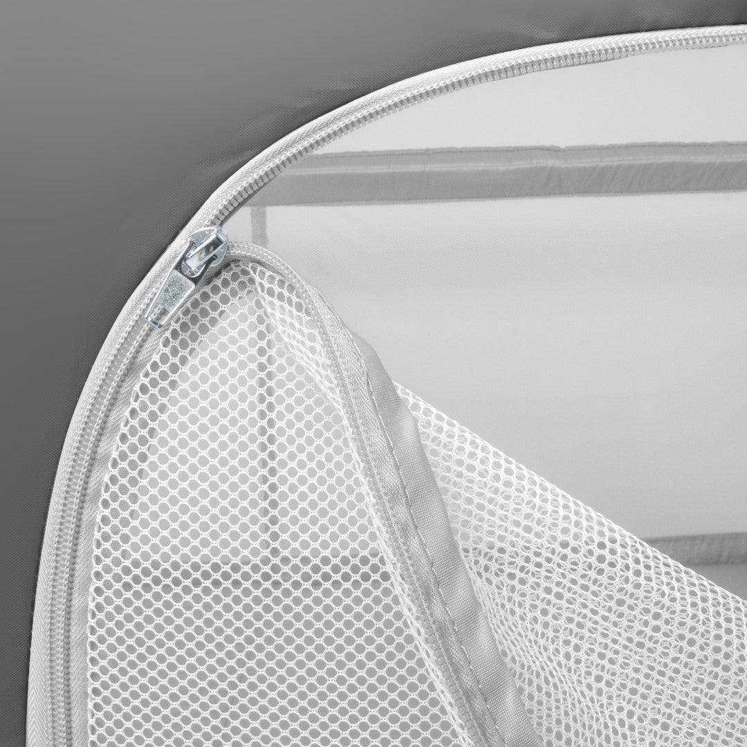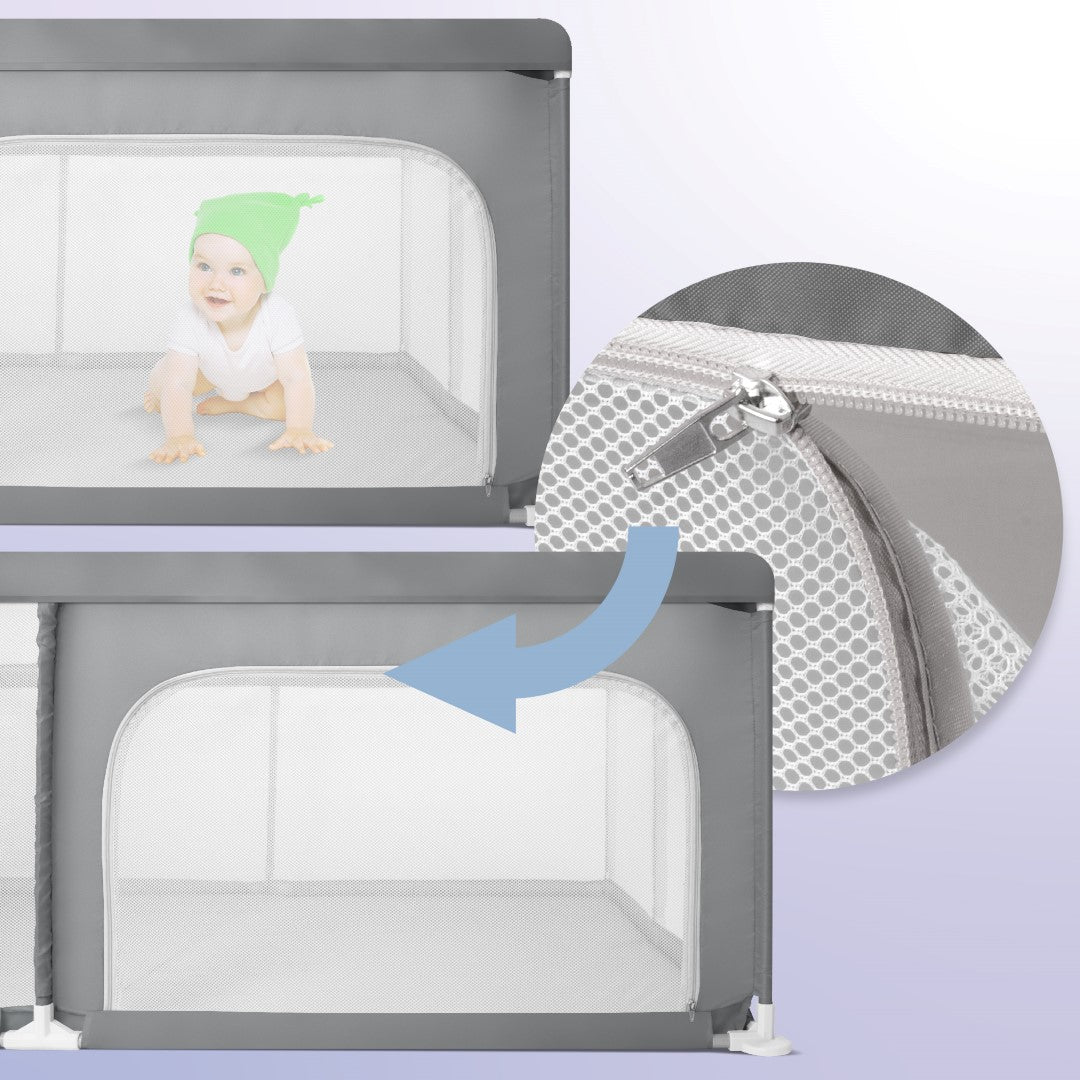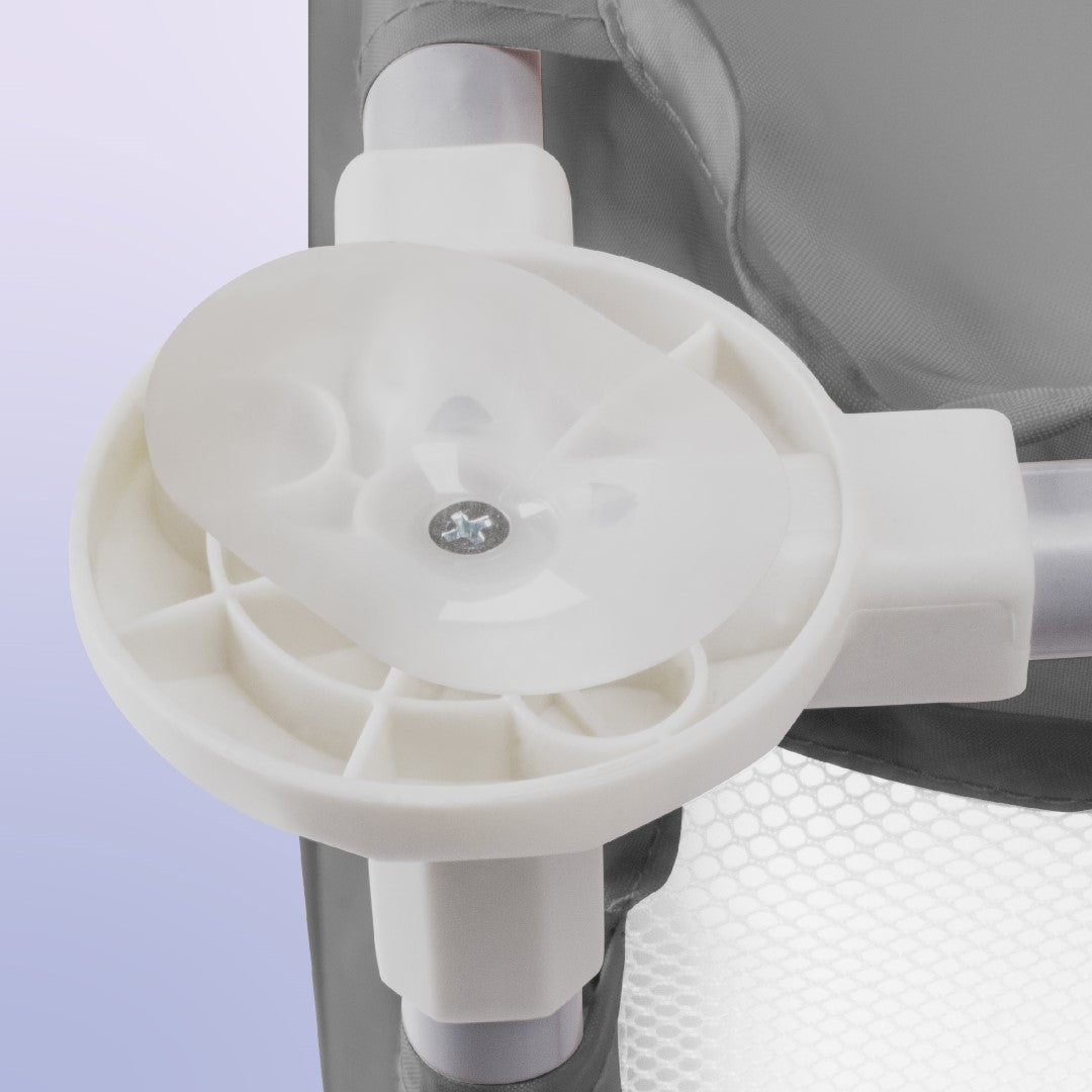 Przewiewne siatkowe ścianki umożliwiają rodzicom pełny podgląd na dziecko, jednocześnie zapewniając doskonałą wentylację wnętrza kojca. Dzięki temu rodzice mogą być pewni, że ich maluch jest bezpieczny i zadowolony.