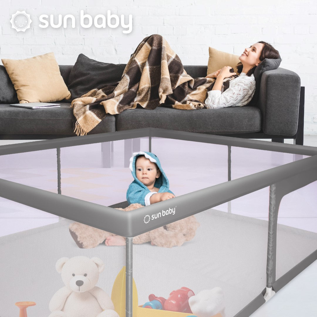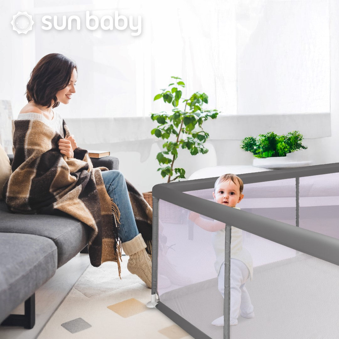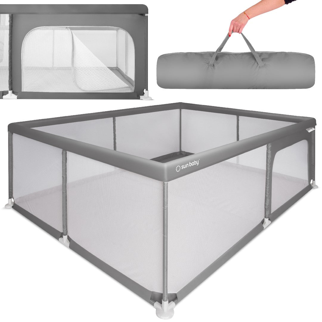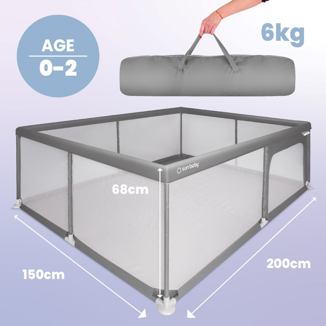 Sun Baby Duży Kojec dziecięcy łóżeczko Plac zabaw z podłogą Suchy basen 150x200 szary