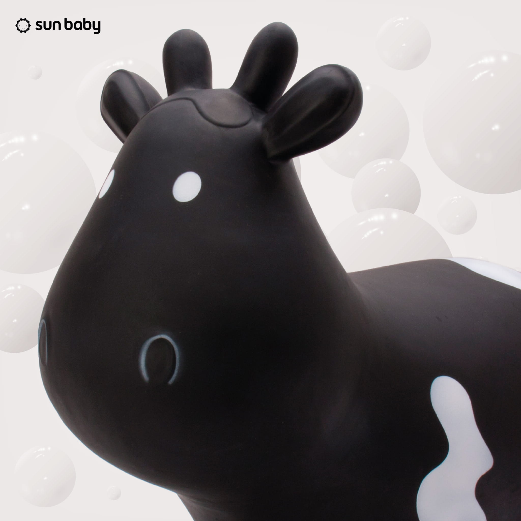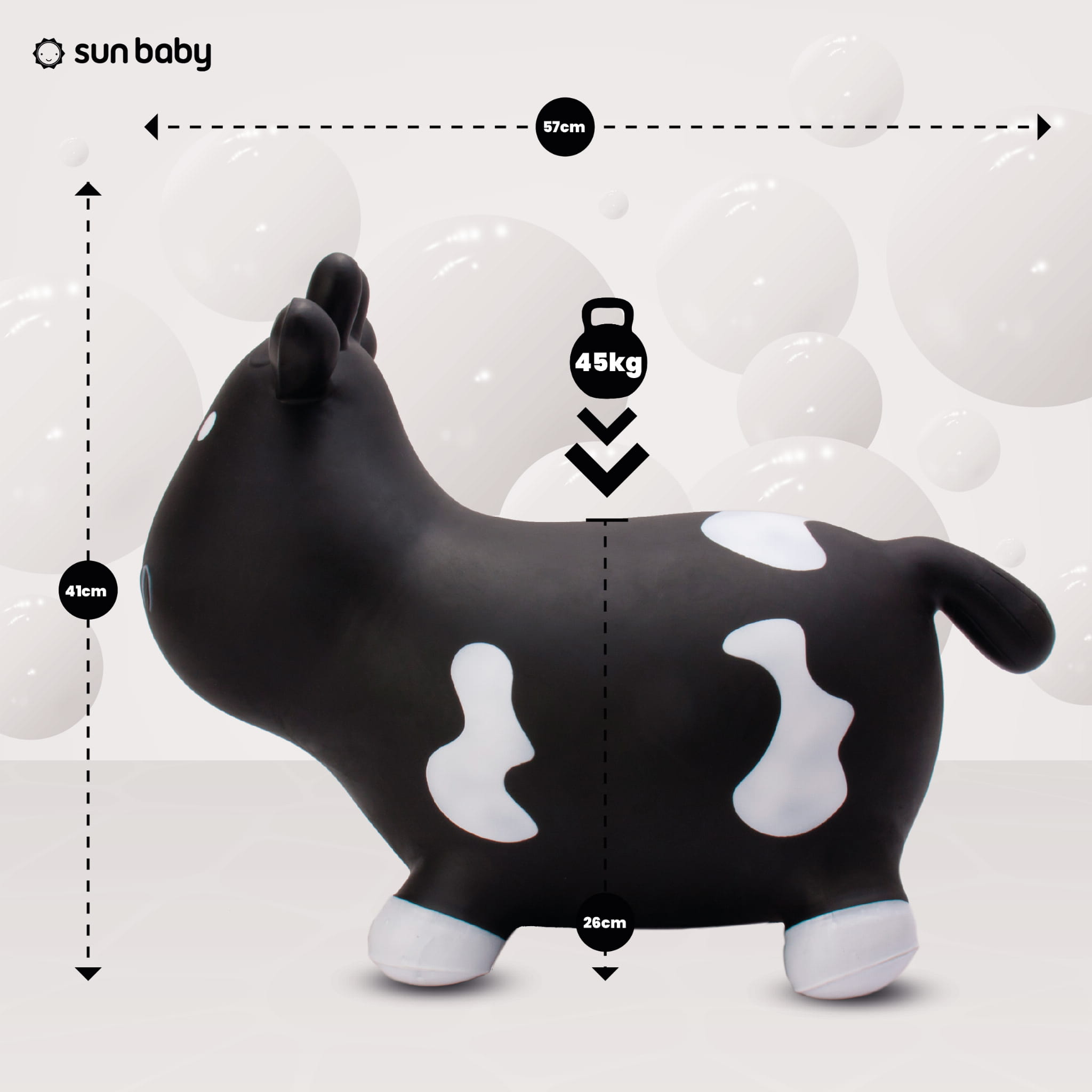 Skoczek dla dzieci Krówka czarno-biała z pompką – zabawka do skakania
