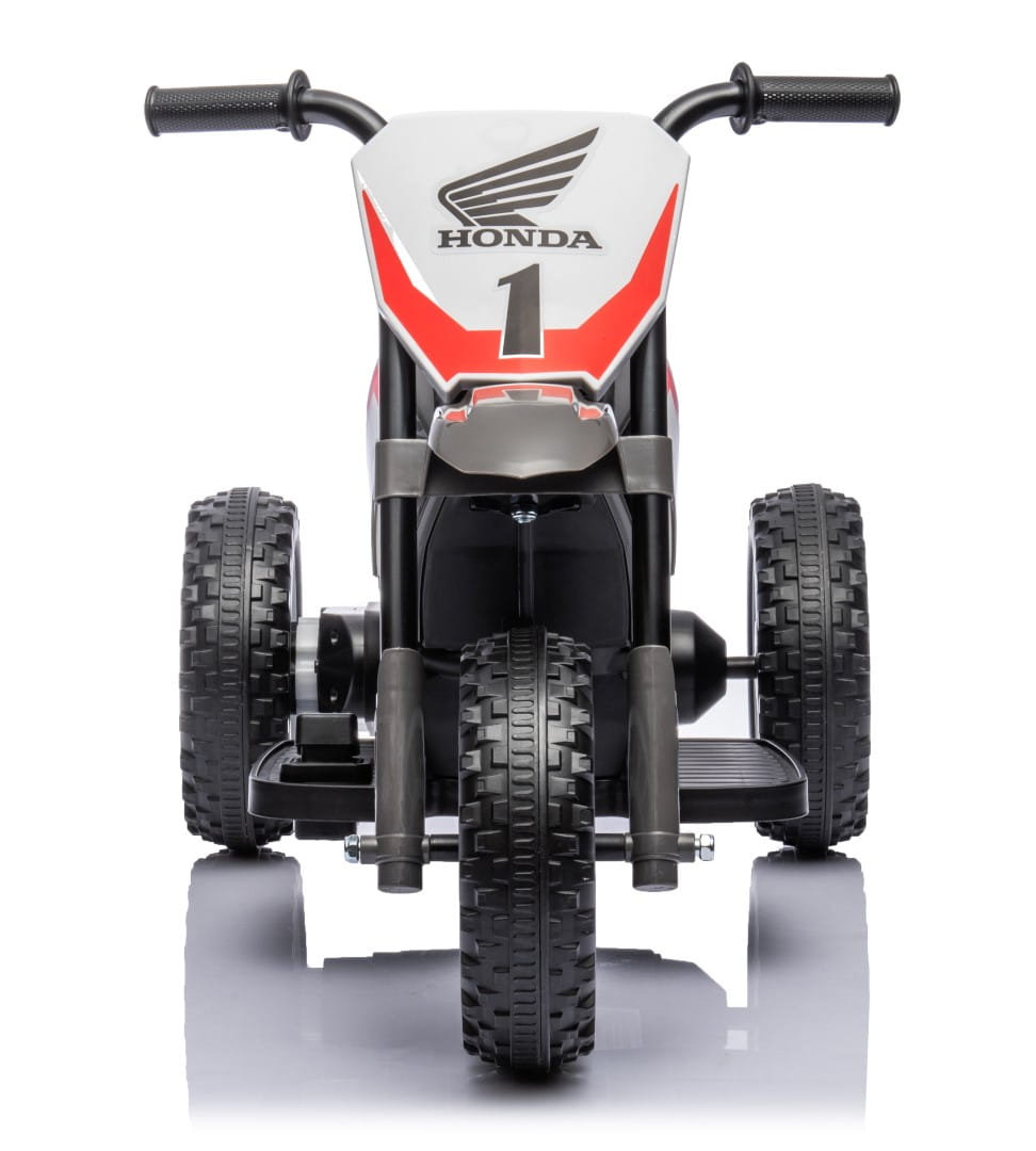 Motor Honda CRF450 został wyposażony w realistyczne dźwięki uruchamiania silnika oraz klakson, które dodają autentyczności i angażują dziecko w zabawę. Prędkość 2–3 km/h pozwala poczuć emocje z jazdy, jednocześnie zachowując bezpieczeństwo.