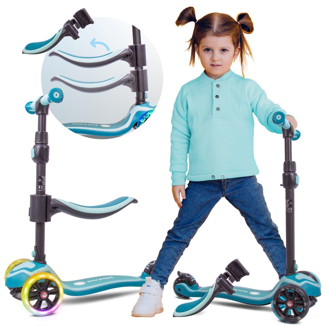 Hulajnoga dla dzieci trójkołowa balansowa Flash 3w1 LED pastelowy turkus