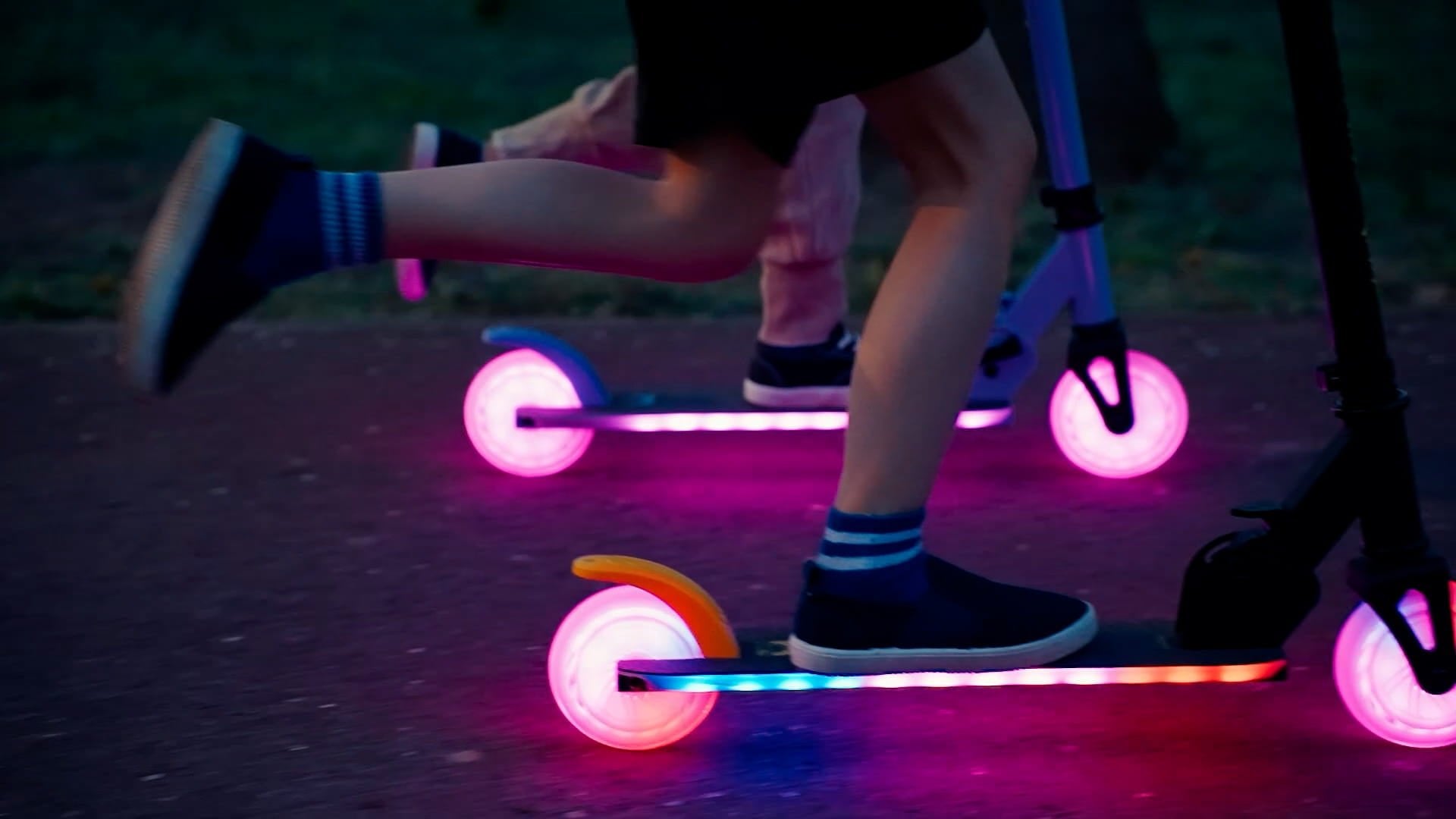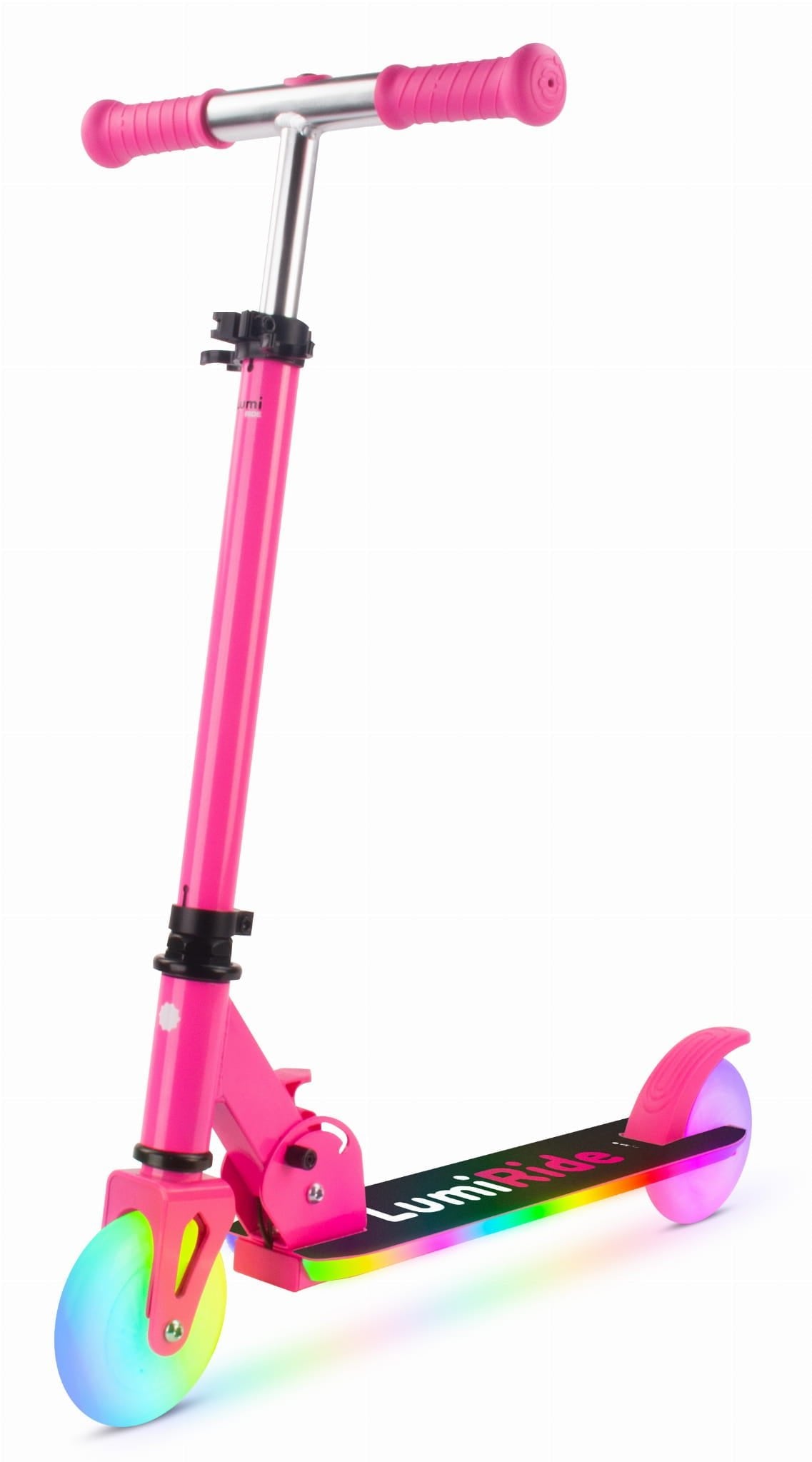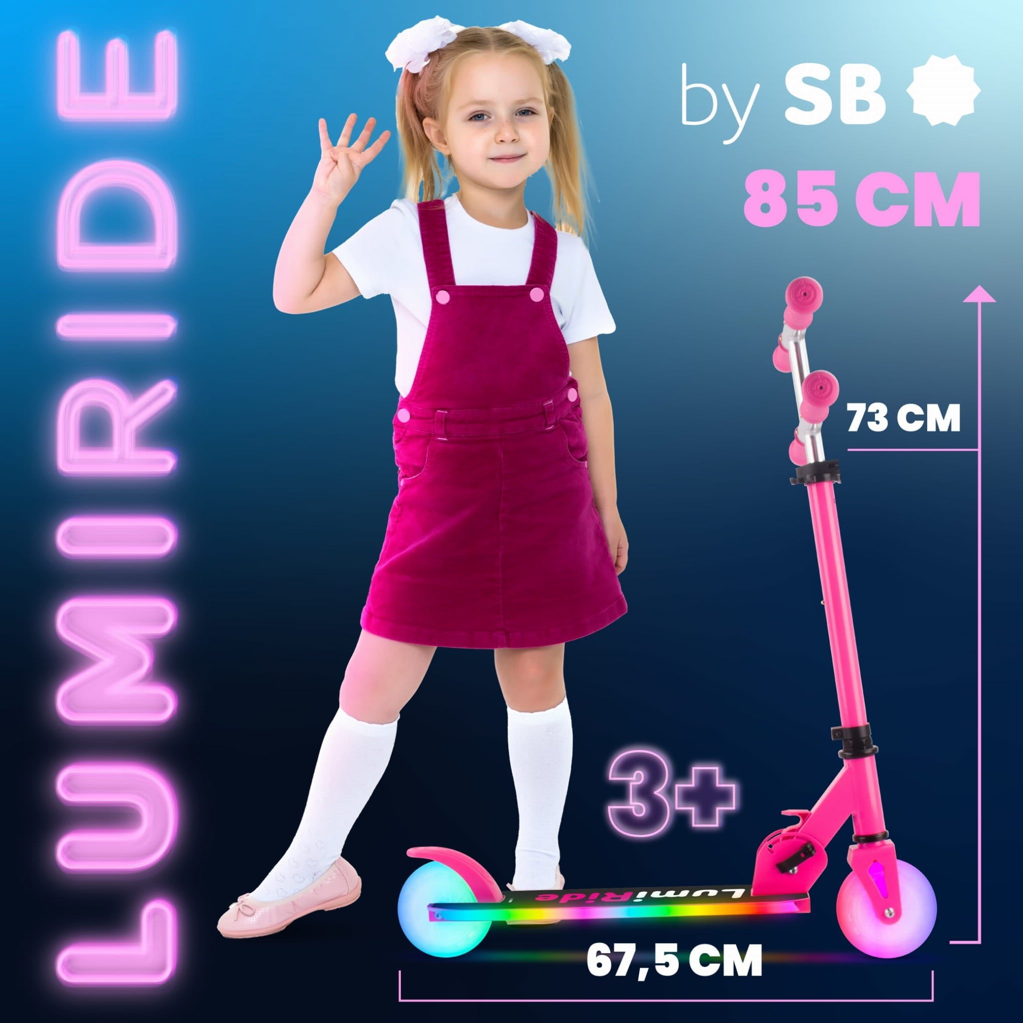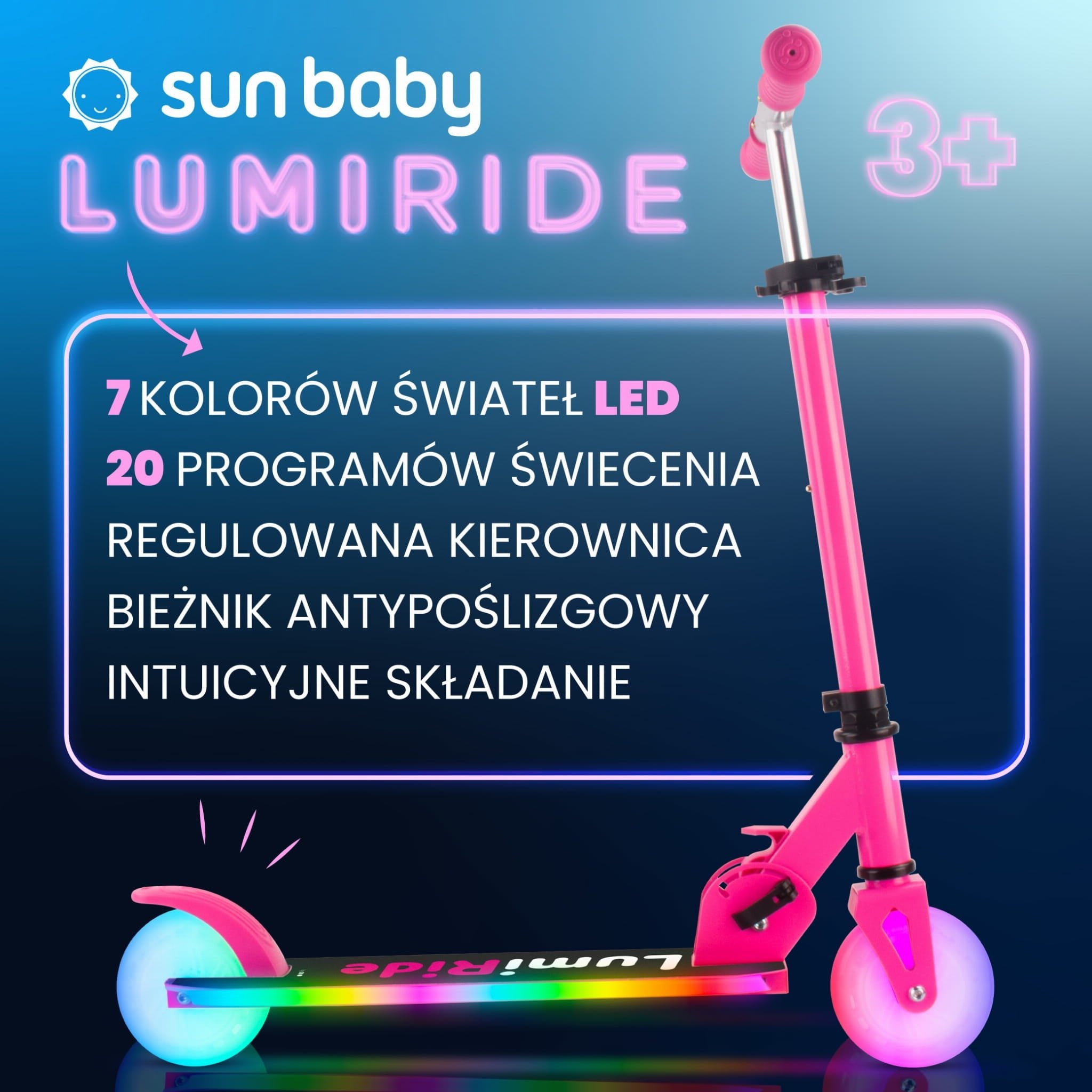 LUMI RIDE Hulajnoga dwukołowa dla dzieci składana regulowana LED 7 kolorów 20 programów fuksja Sun Baby