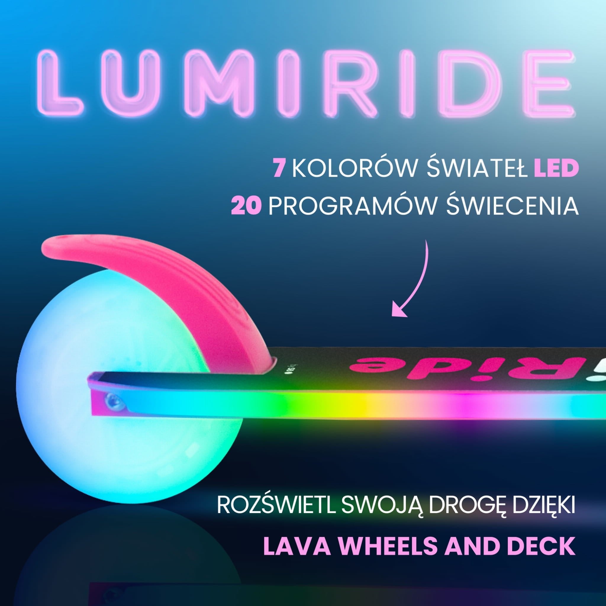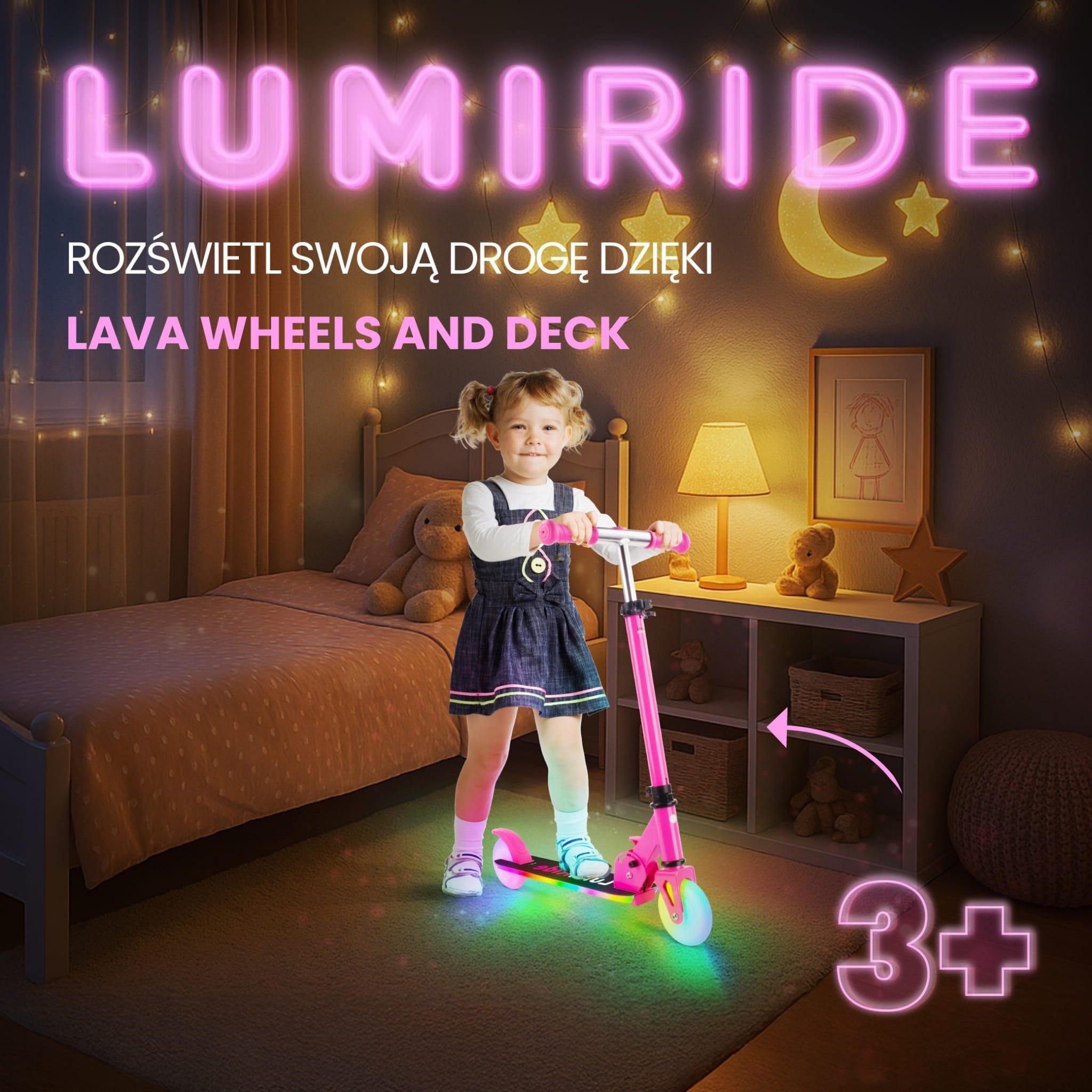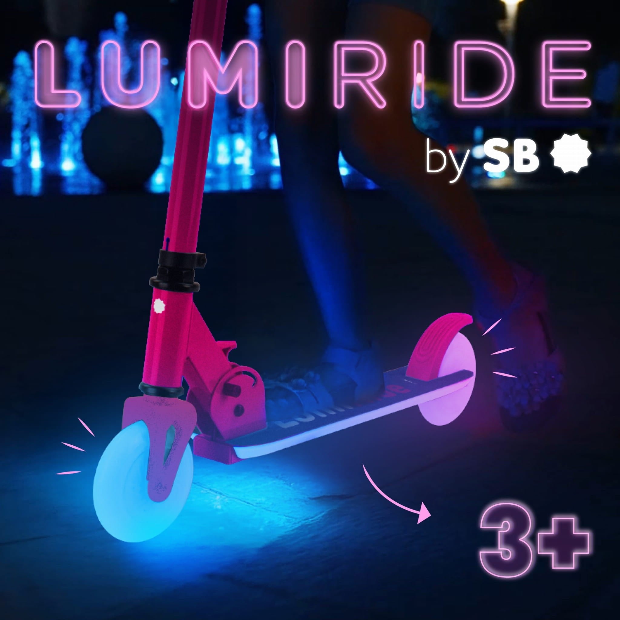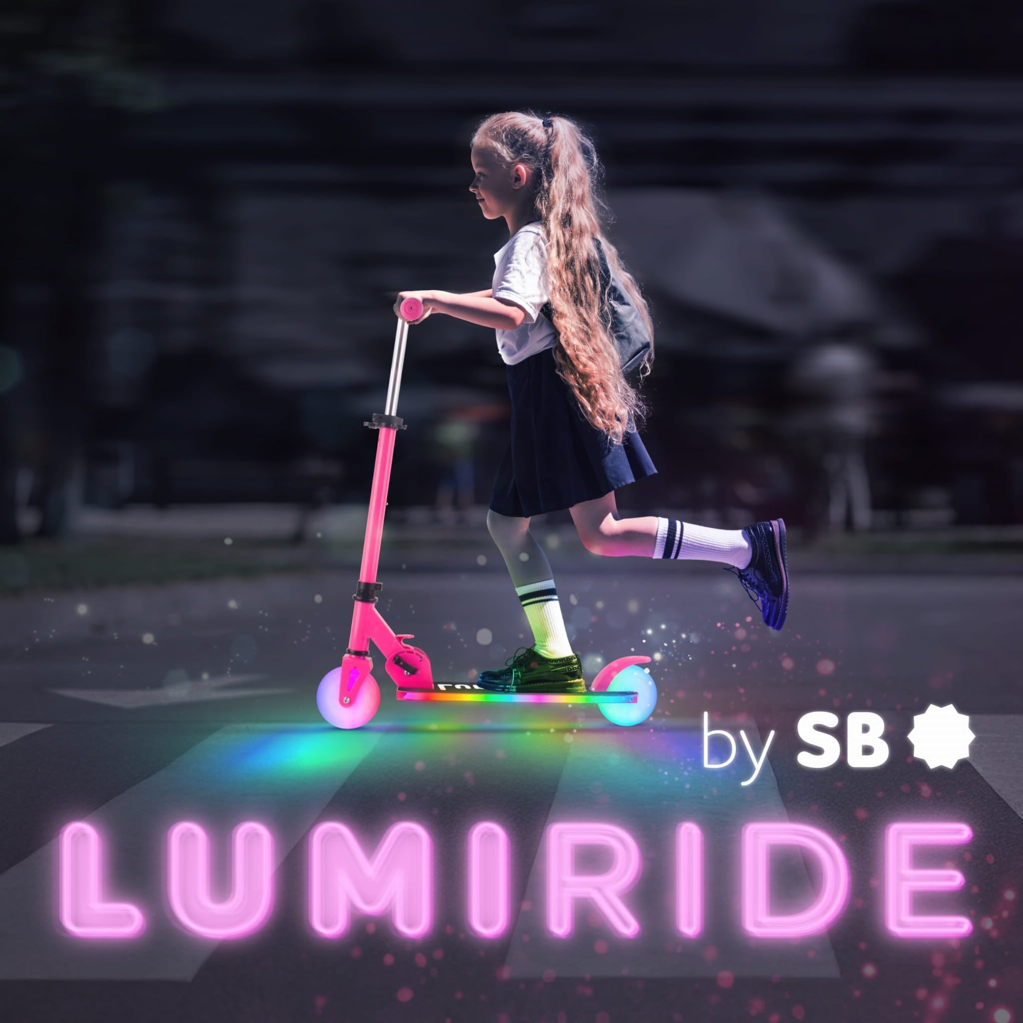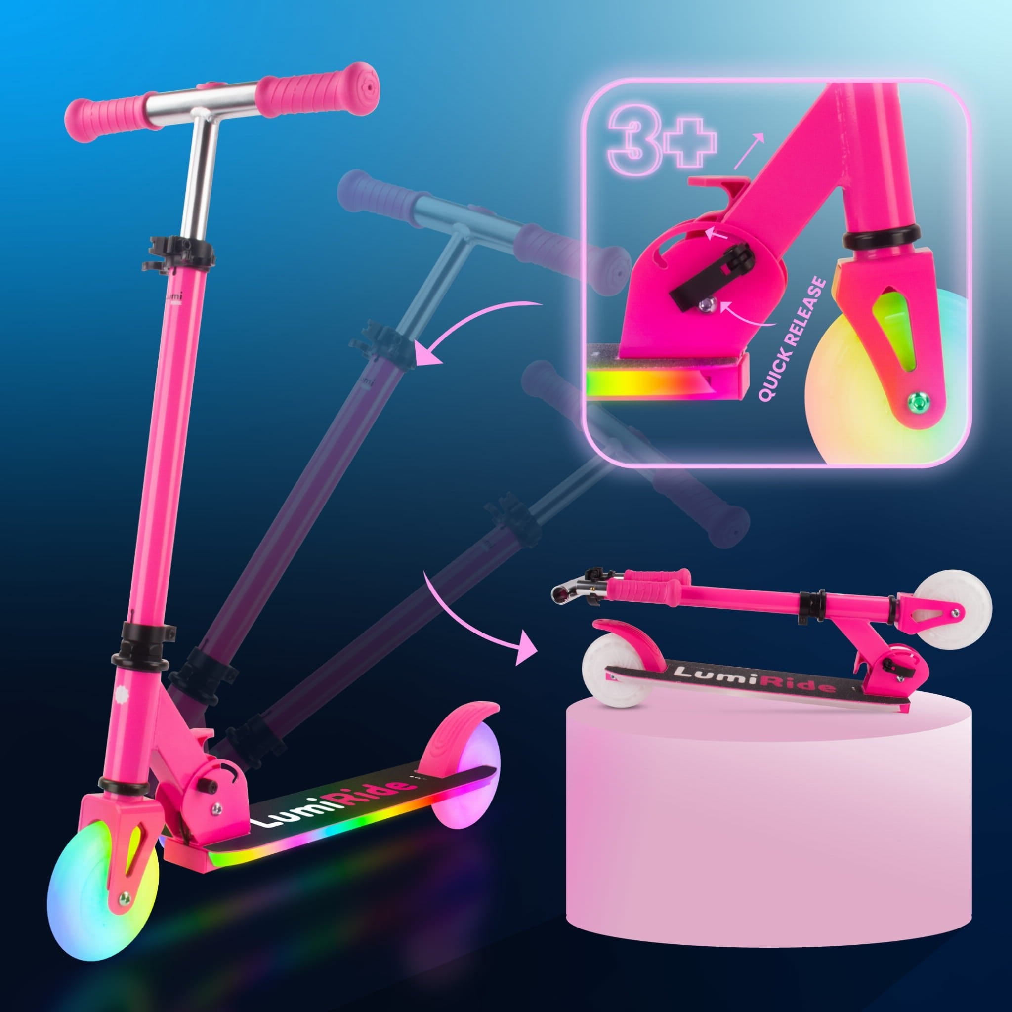 LUMI RIDE Hulajnoga dwukołowa dla dzieci składana regulowana LED 7 kolorów 20 programów fuksja Sun Baby