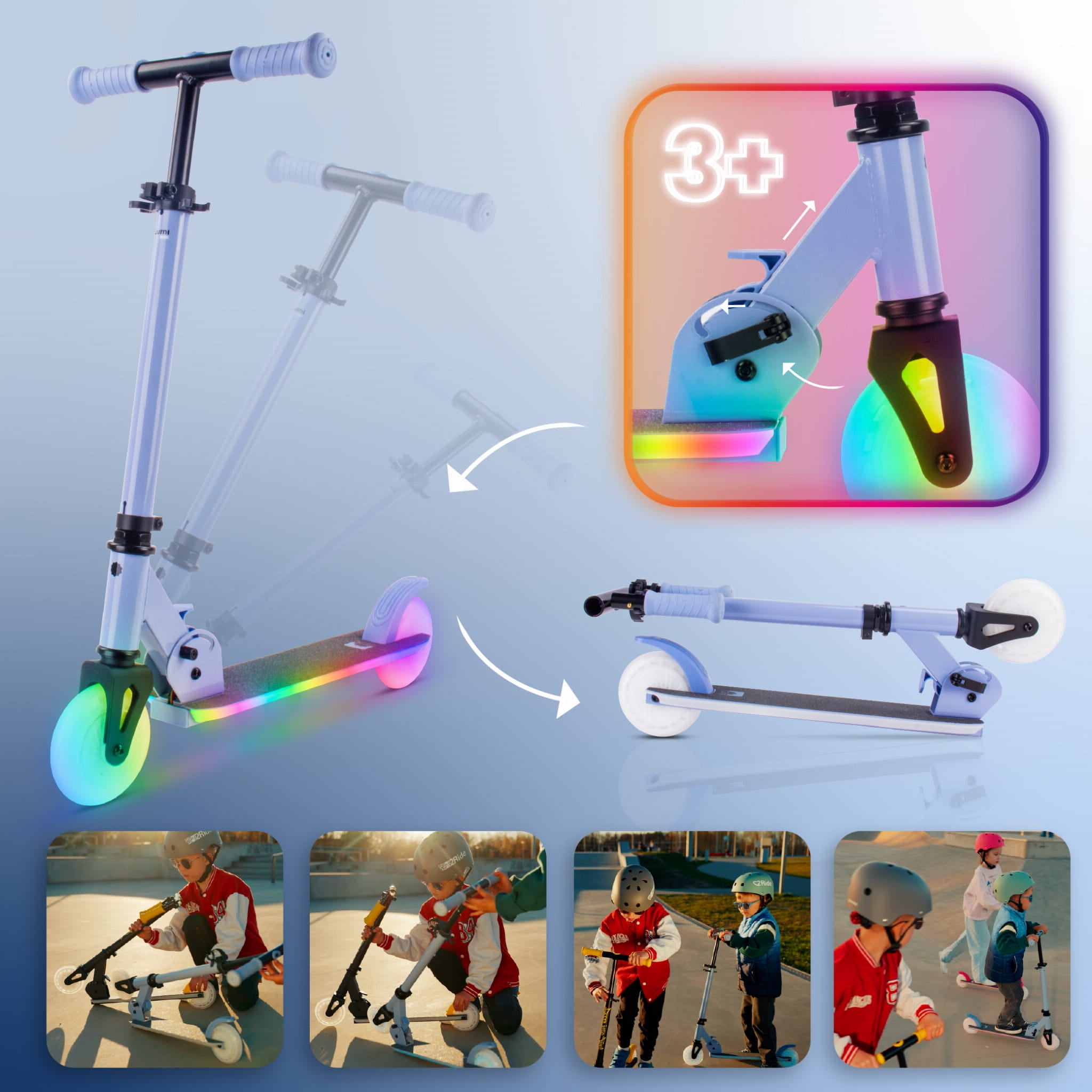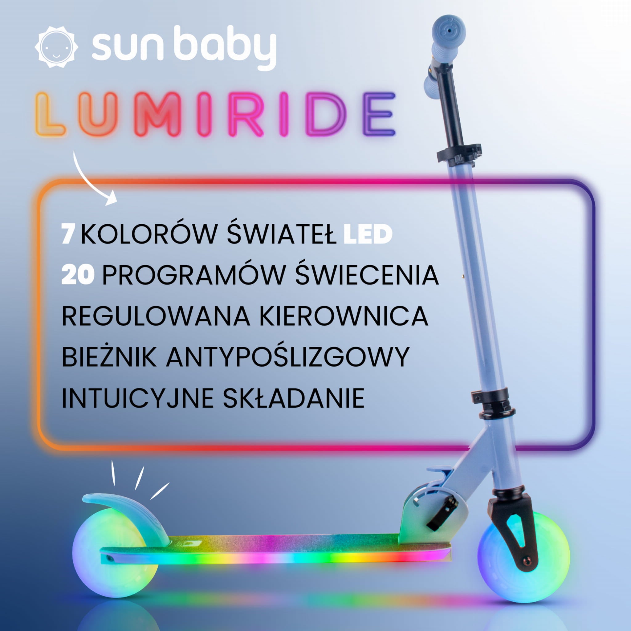 LUMI RIDE Hulajnoga dwukołowa dla dzieci składana regulowana LED 7 kolorów 20 programów niebieski Sun Baby