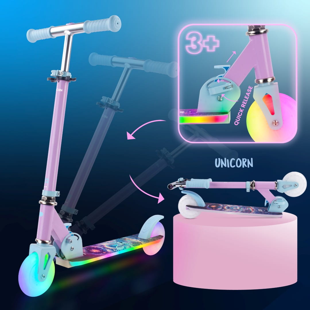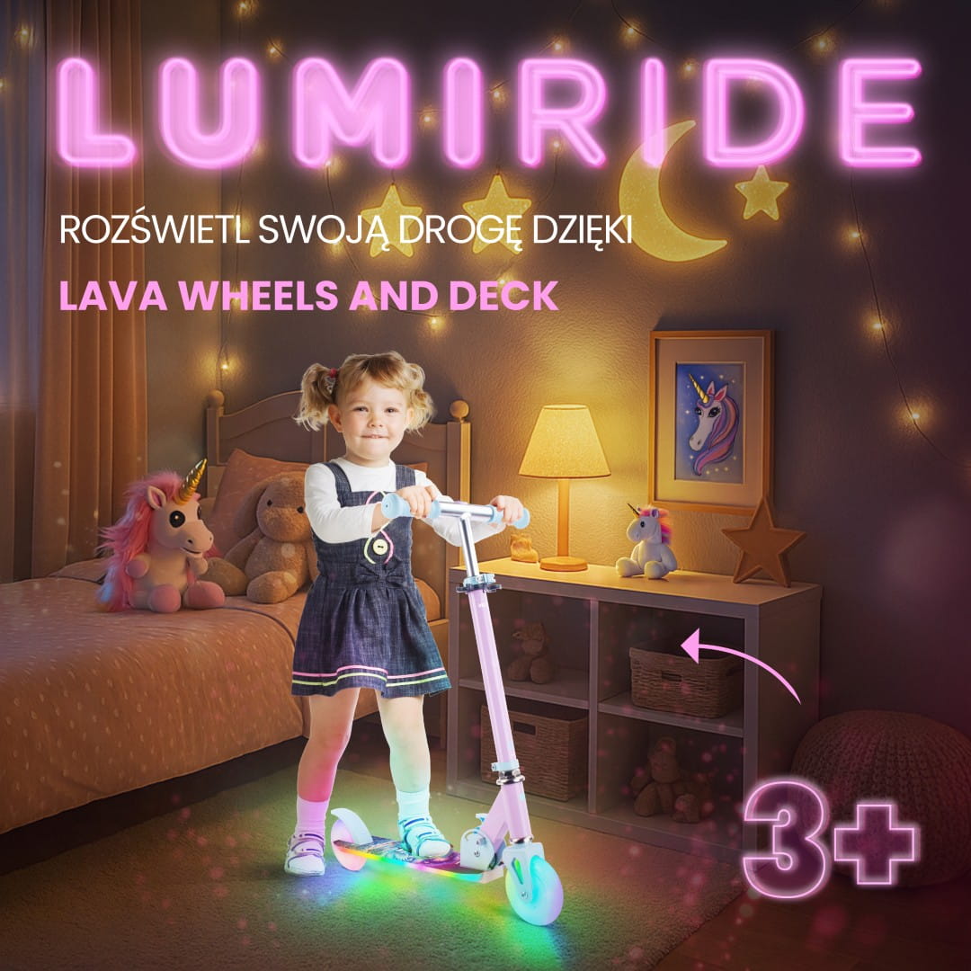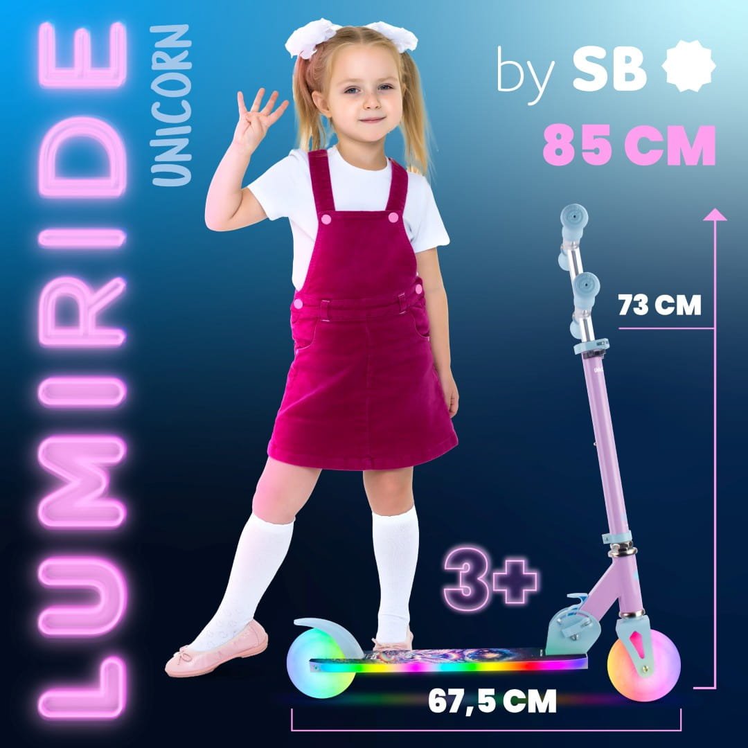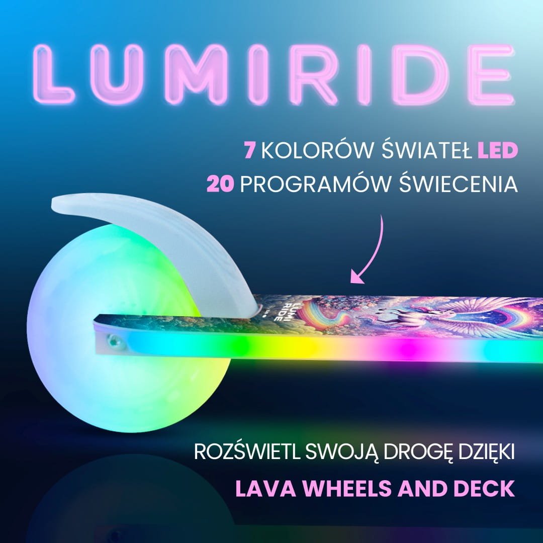 LUMI RIDE Hulajnoga dwukołowa dla dzieci składana regulowana LED 7 kolorów 20 programów Unicorn Sun Baby