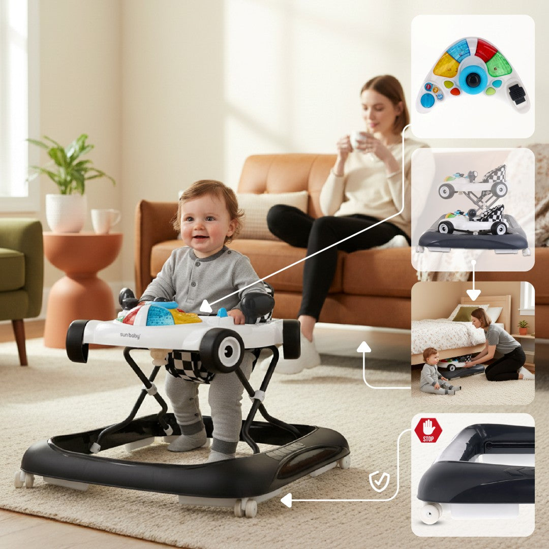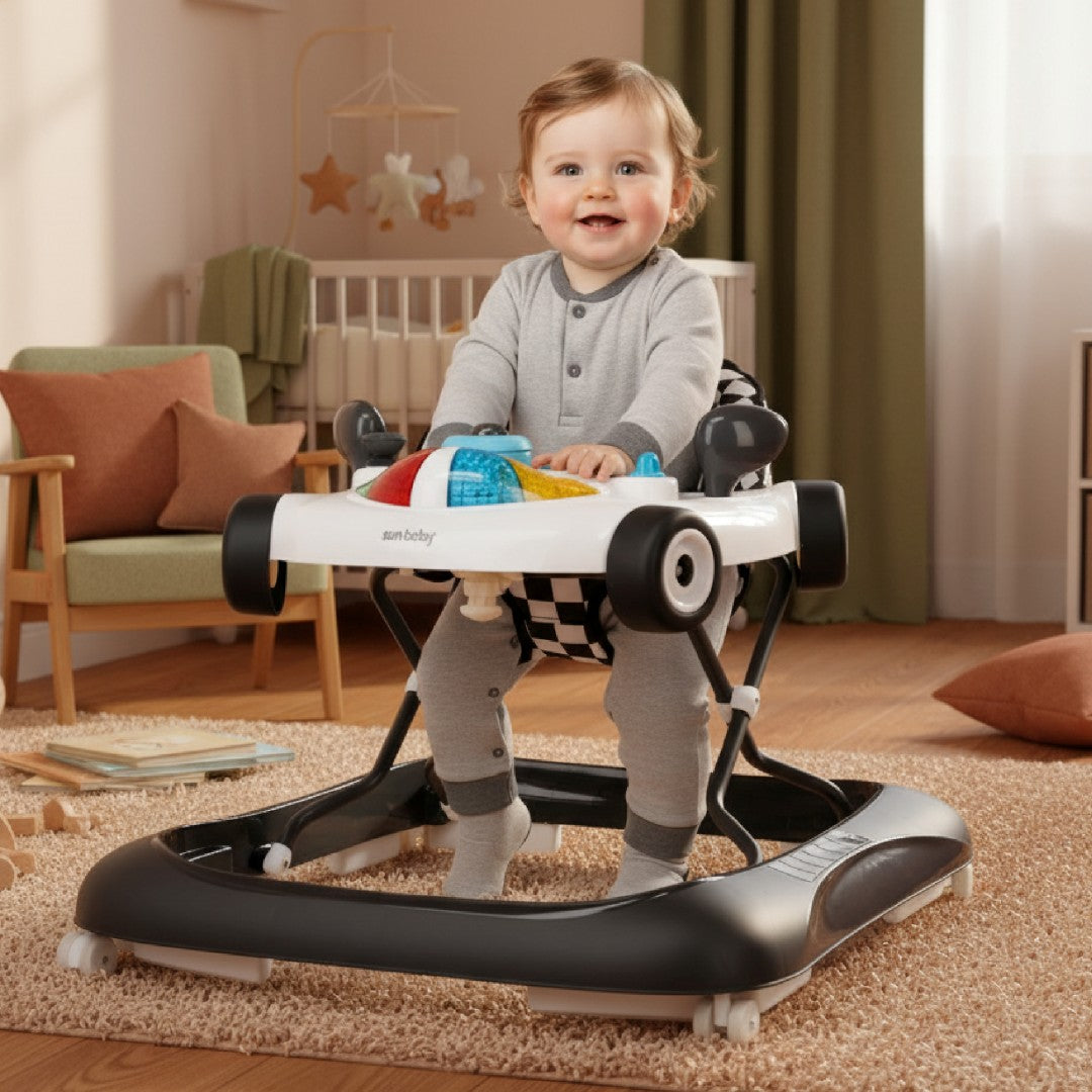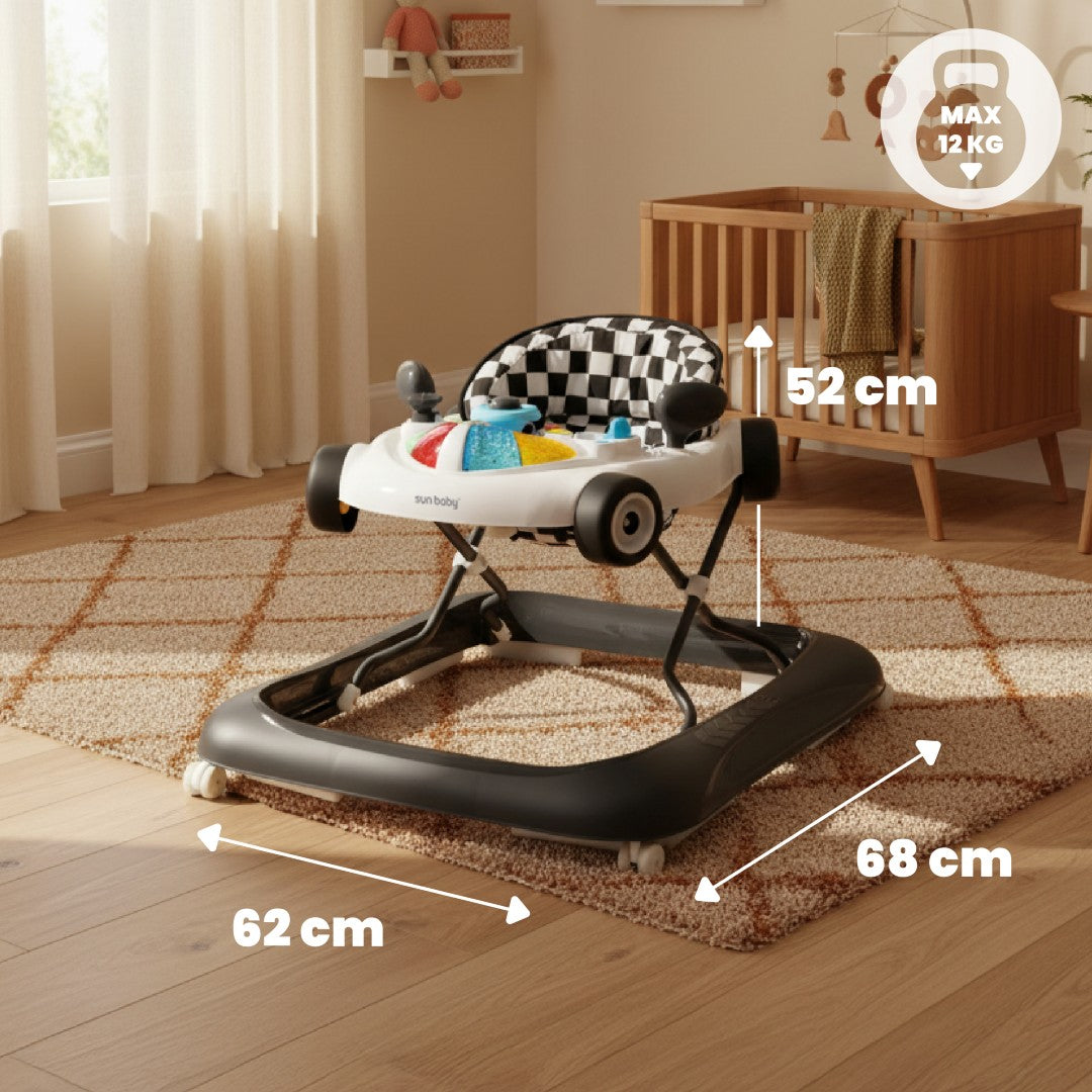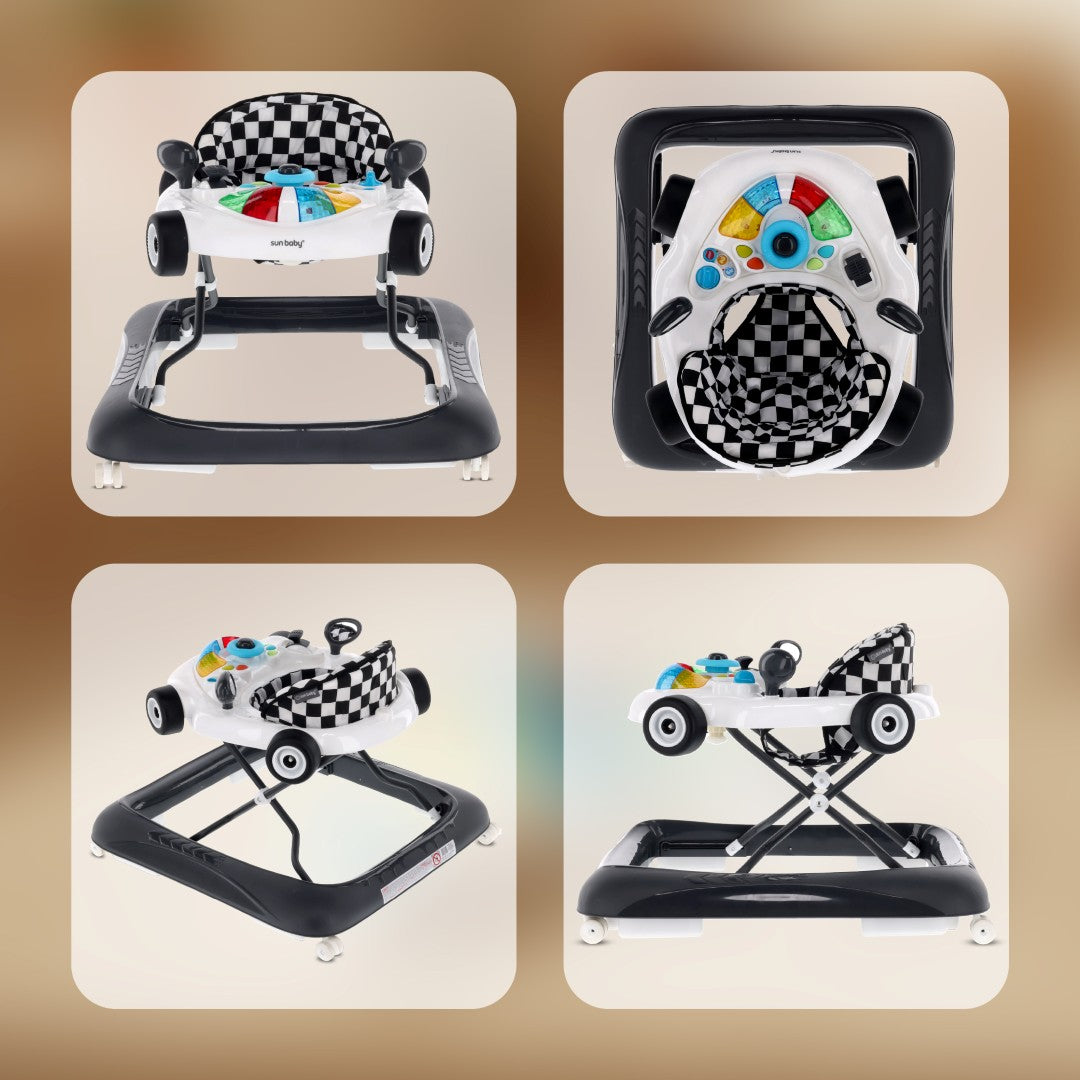 Interaktywny chodzik dla dzieci wyścigówka czarno biały Sun Baby