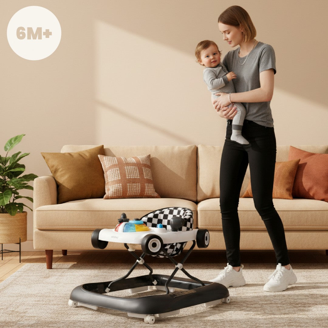 Interaktywny chodzik dla dzieci Wyścigówka biało-czarna