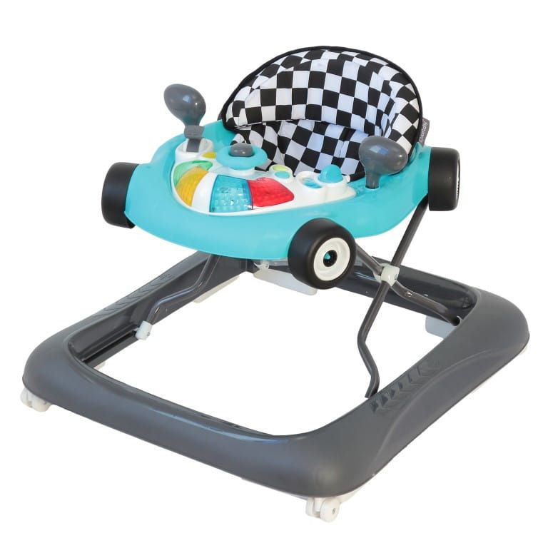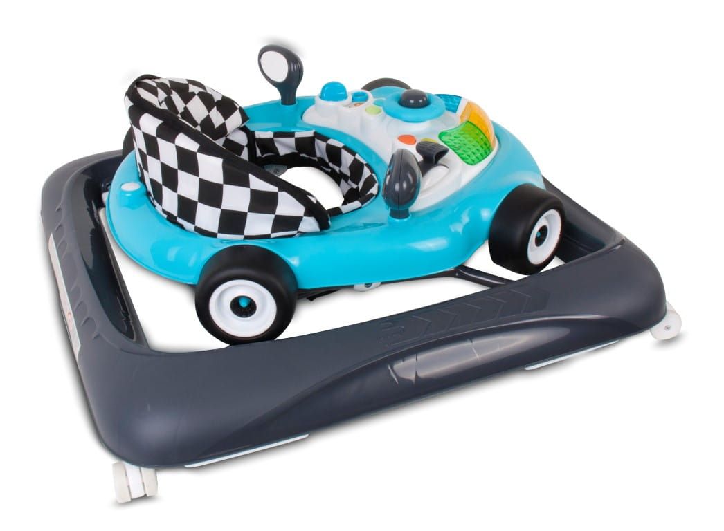 Interaktywny chodzik dla dzieci wyścigówka turkusowo czarny