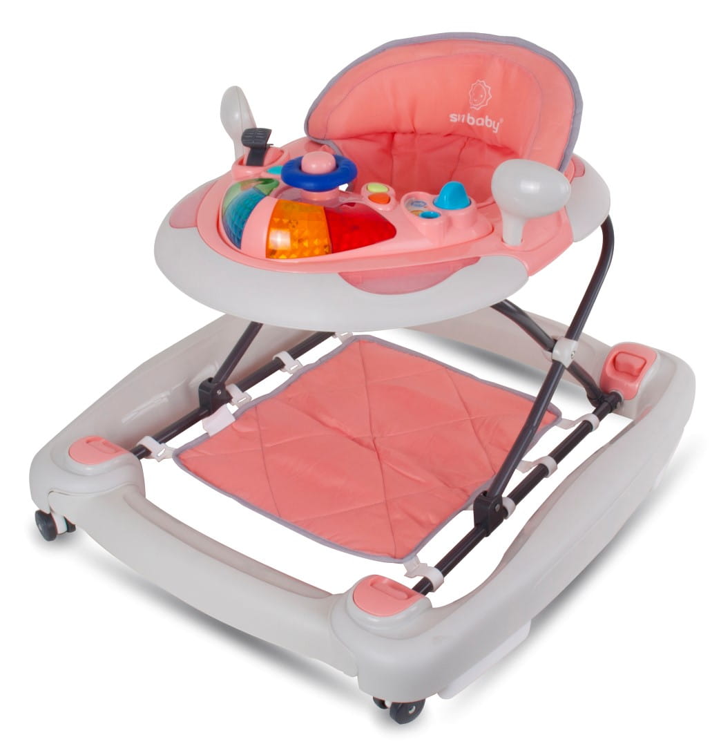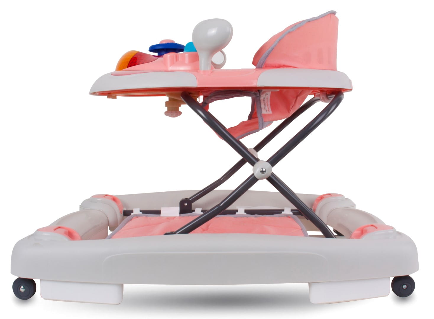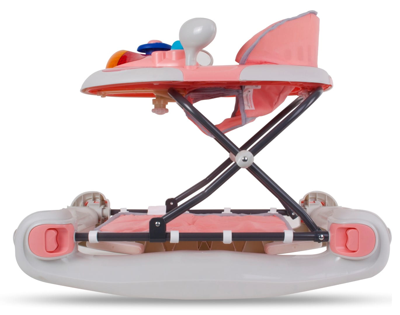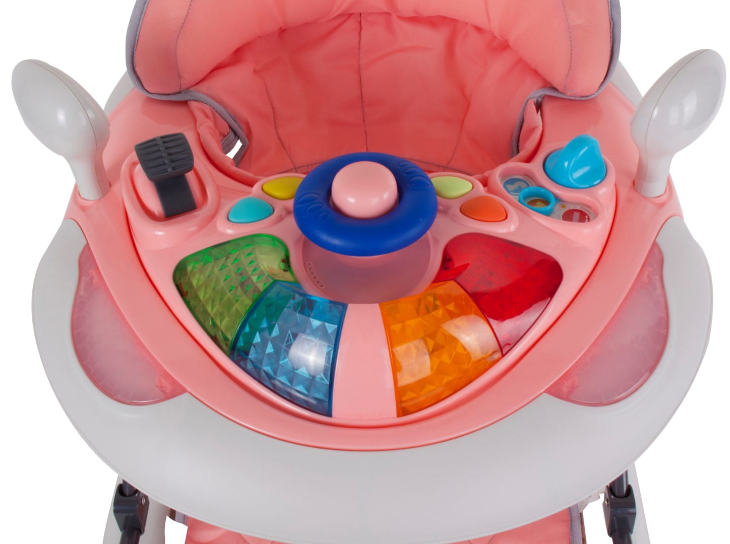 Interaktywny Chodzik dla dziecka kołyska z kierownicą różowo szary