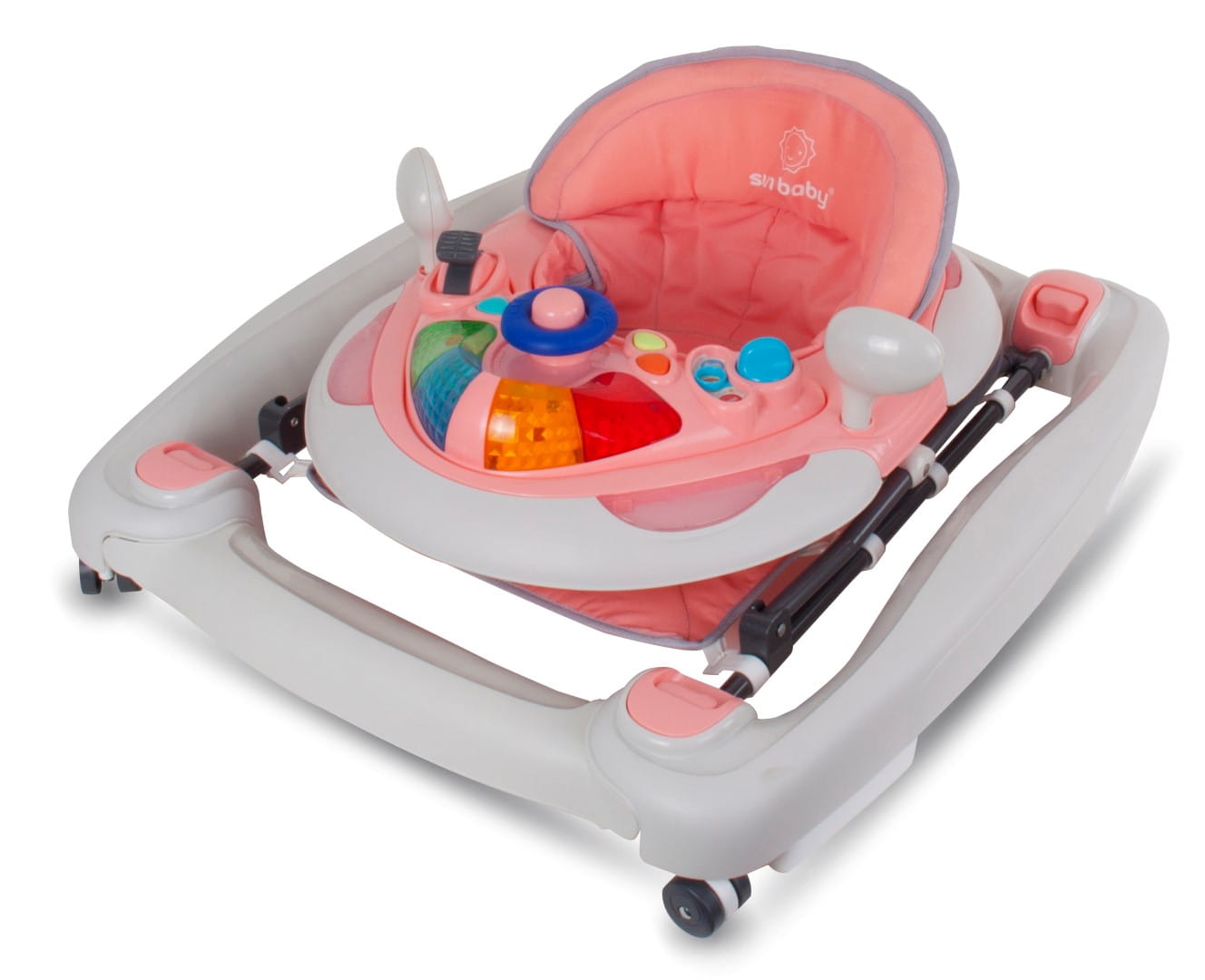 Chodzik dla dziecka, który przyśpiesza i wspiera naukę chodzenia - centrum zabawy i aktywności dla dzieci powyżej 6 miesiąca, do maksymalnej wagi 12 kg. Z chodzikiem odkrywanie otoczenia i nauka chodzenia jest znacznie łatwiejsza. Regulacja wysokości pozwala idealnie dopasować chodzik do wzrostu dziecka, wygodne siedzisko z wysokim oparciem zapewnia odpowiednią pozycję. Rozrywkowy pulpit z przyciskami, światełkami i dźwiękiem zapewni Twojemu dziecku wiele radości i pomoże rozwijać koordynację wzrokowo-ruchową. Utrzymanie chodzika nie przysporzy Ci zmartwień – wystarczy go przetrzeć wilgotna ściereczką, siedzisko można prać ręcznie.
