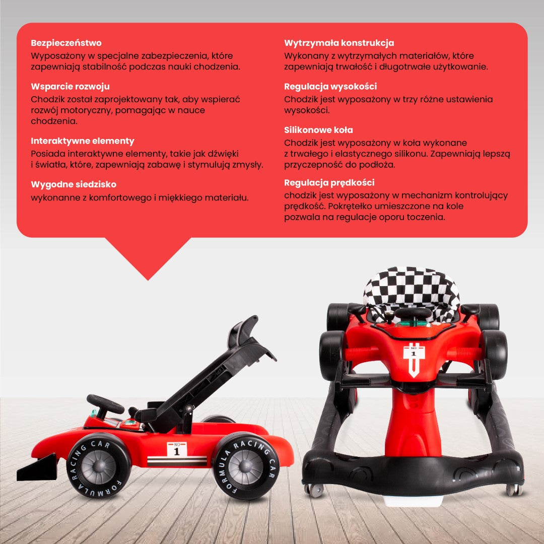 Interaktywny chodzik – jeździk – pchacz Wyścigówka Formuła 1 3w1 czerwony