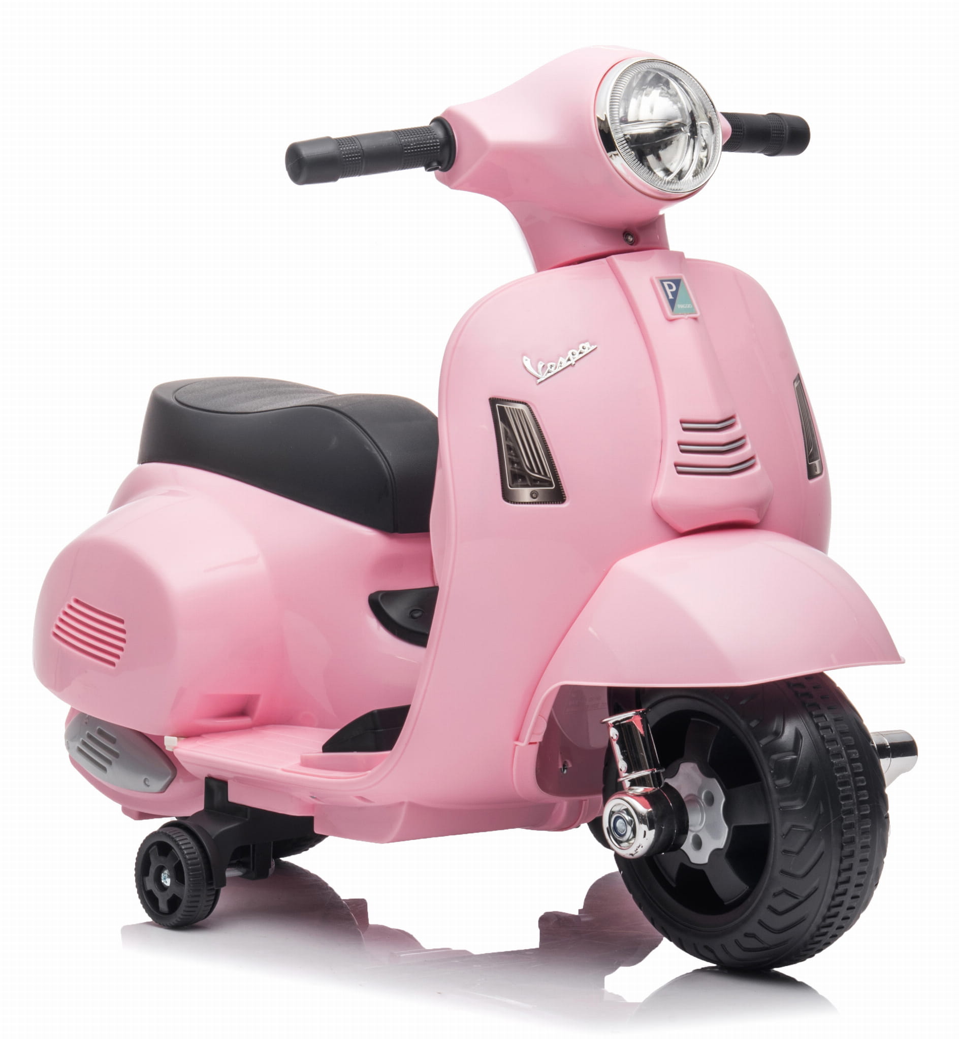 Skuter elektryczny dla dziecka Vespa wyposażono w koła boczne, które chronią przed wywróceniem na bok, nie trzeba się martwić o to, czy dziecko poradzi sobie z zachowaniem równowagi.